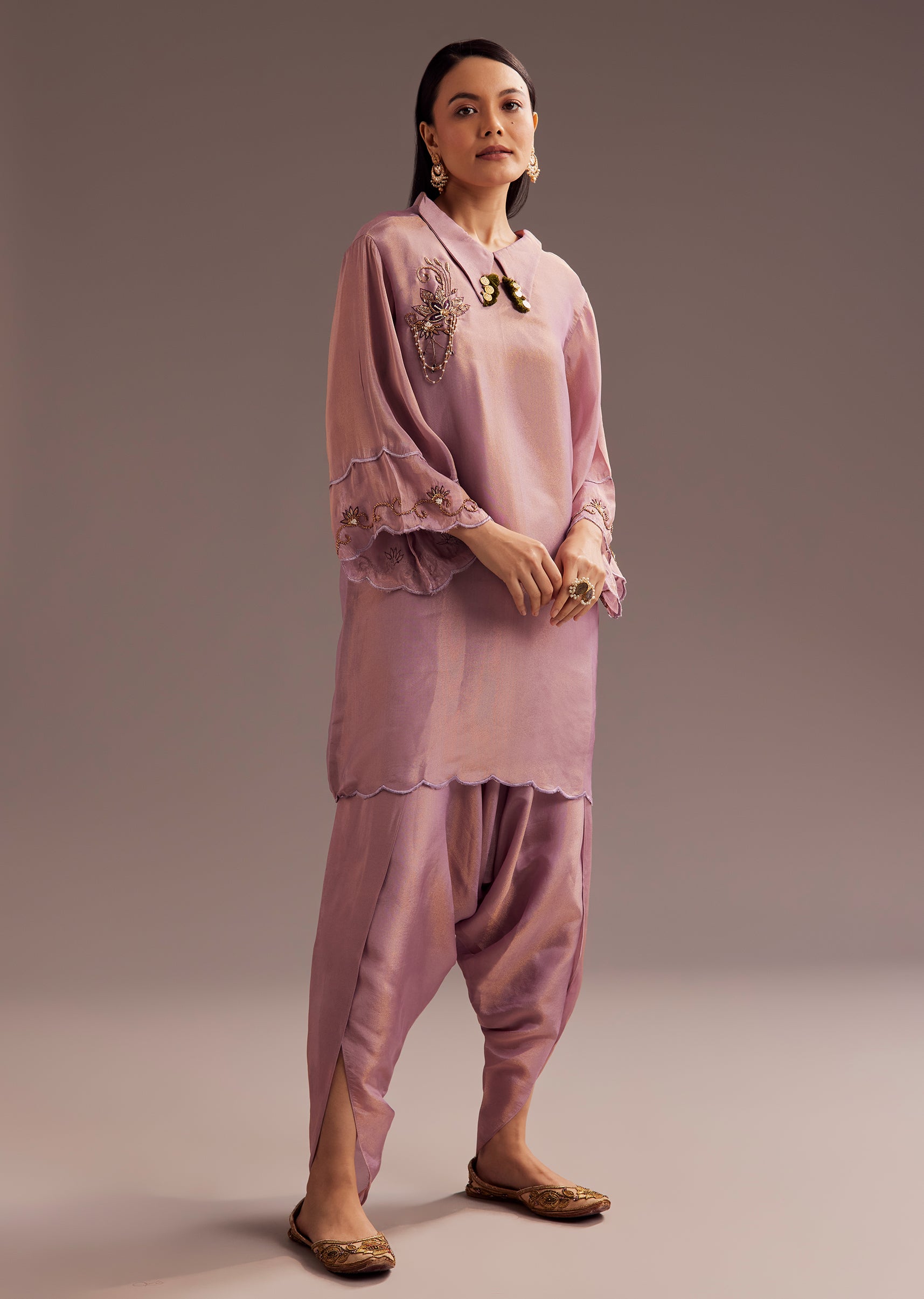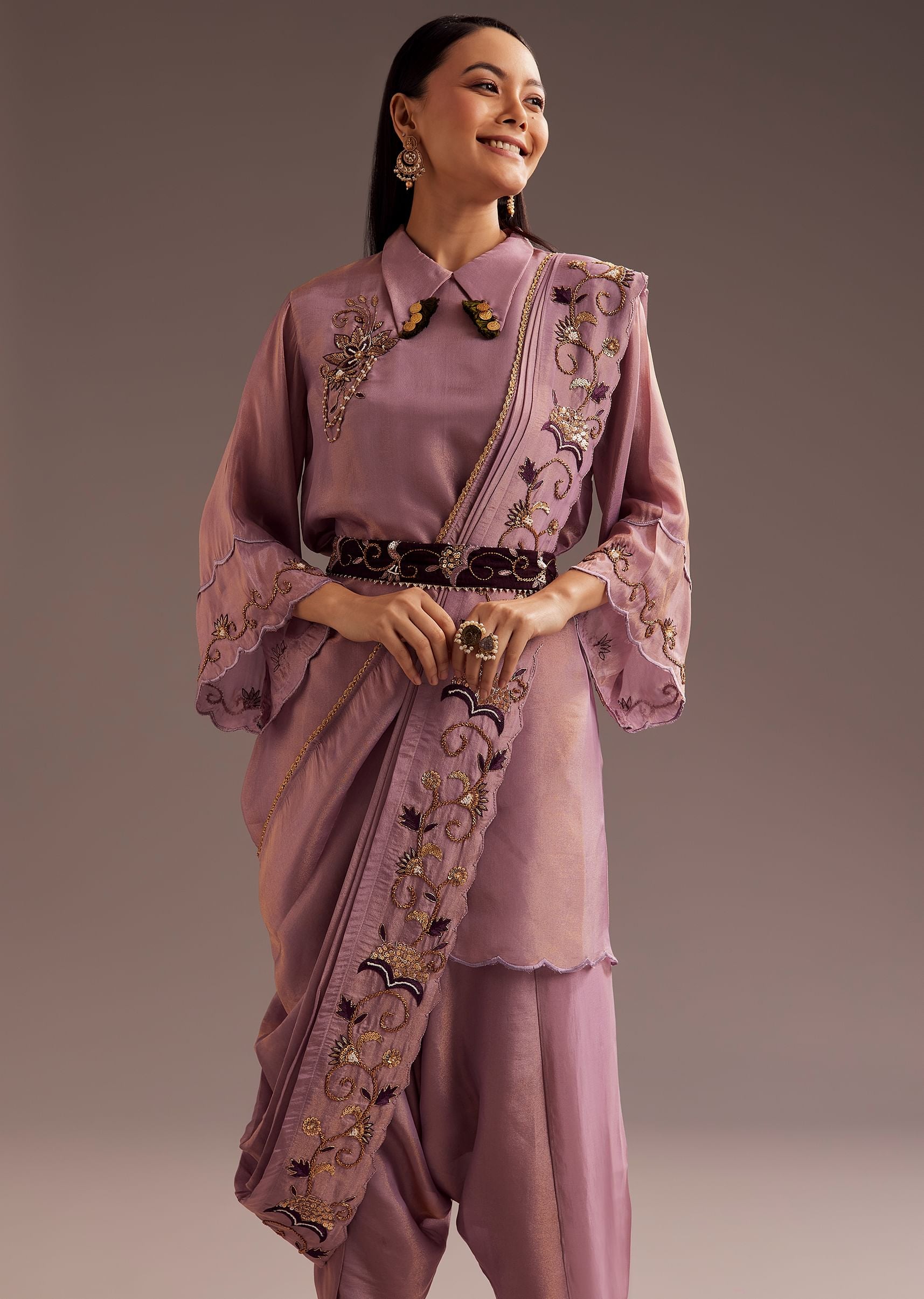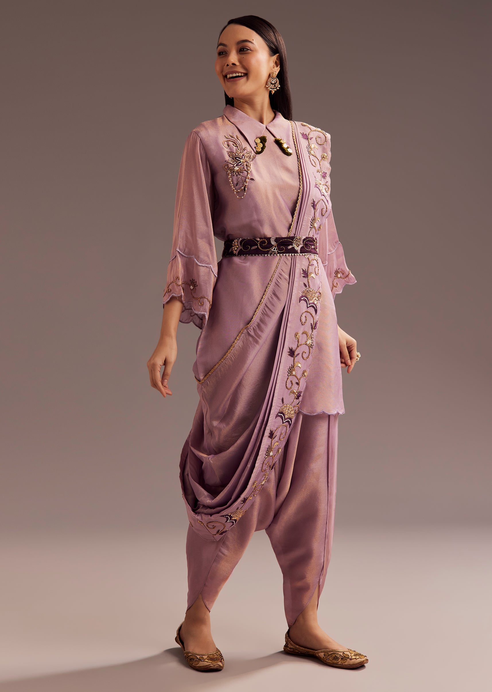 Lavender Zardosi Kurta With Embroidered Dupatta Belt