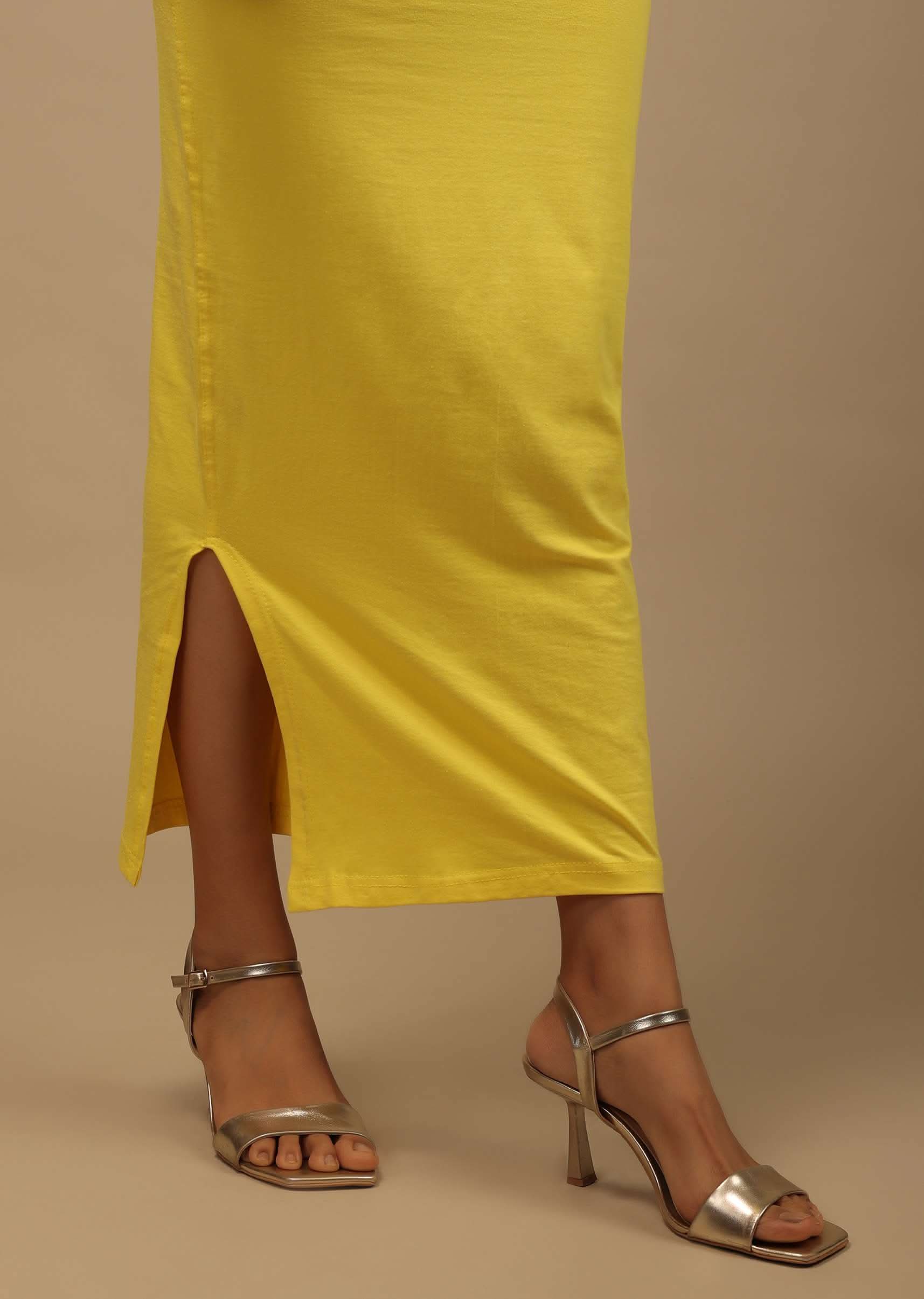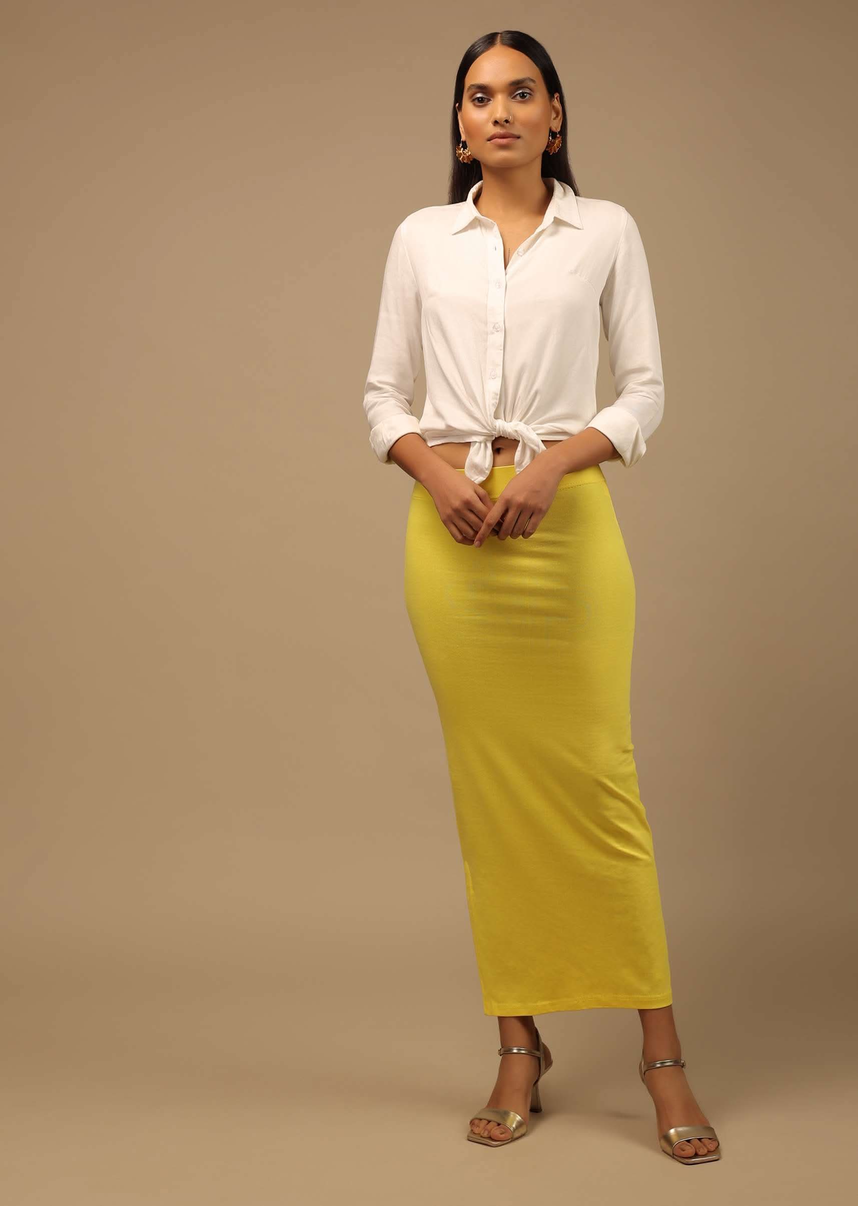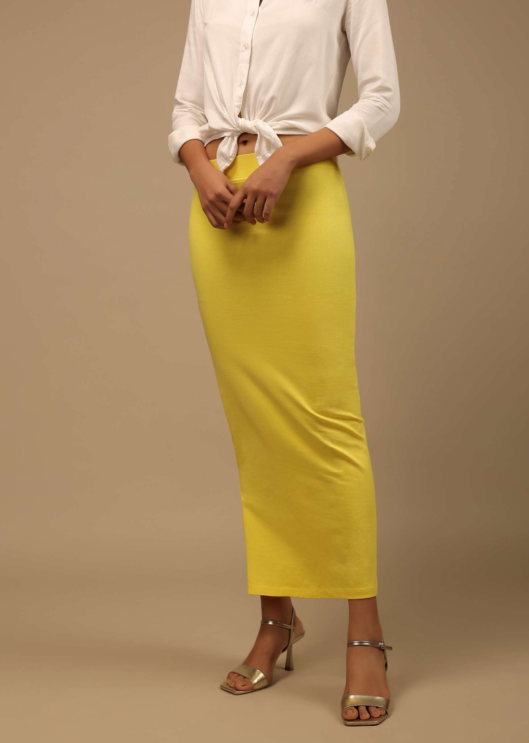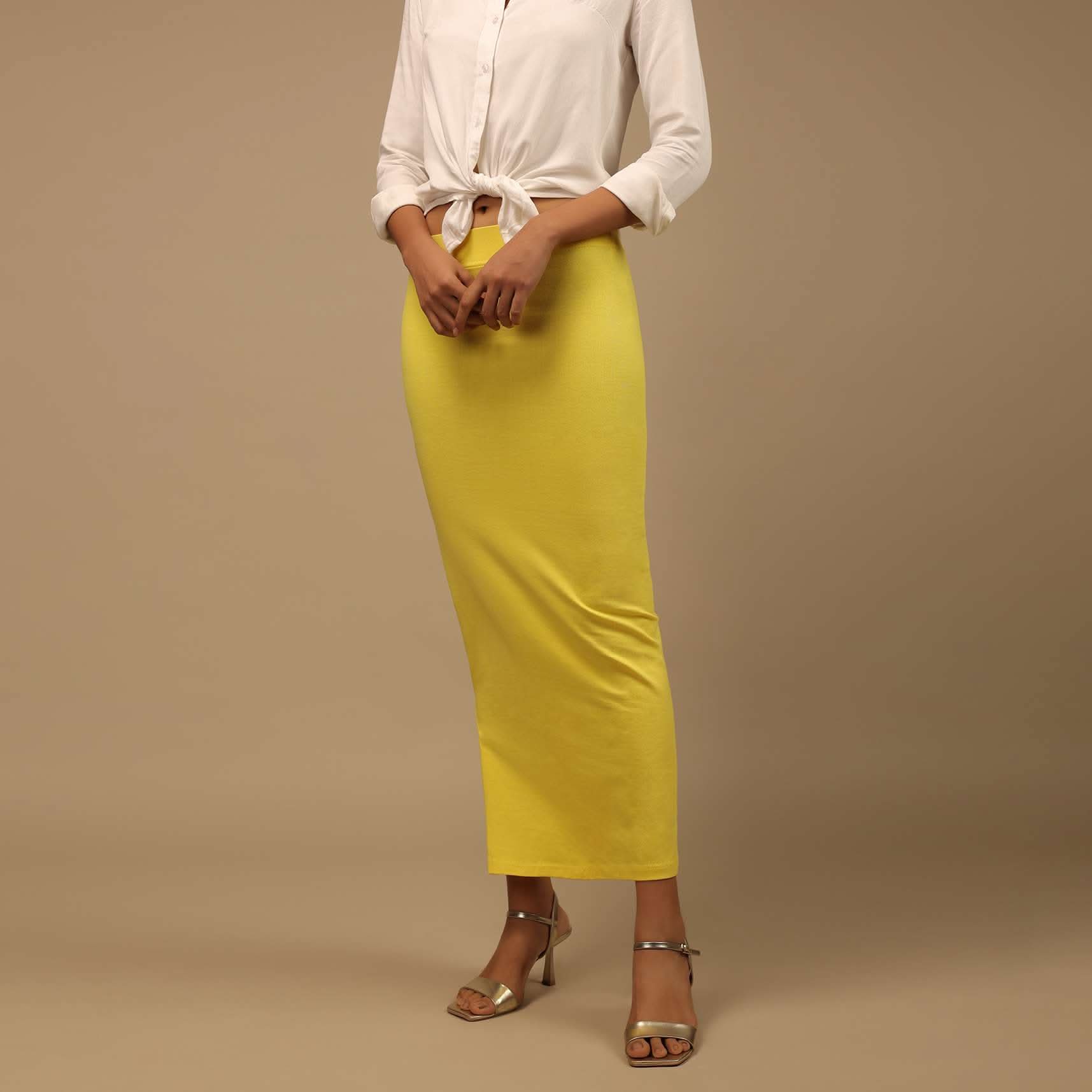 Lemon Yellow Shapewear Saree Petticoat In Cotton Lycra With Elastic Waistband And Slit