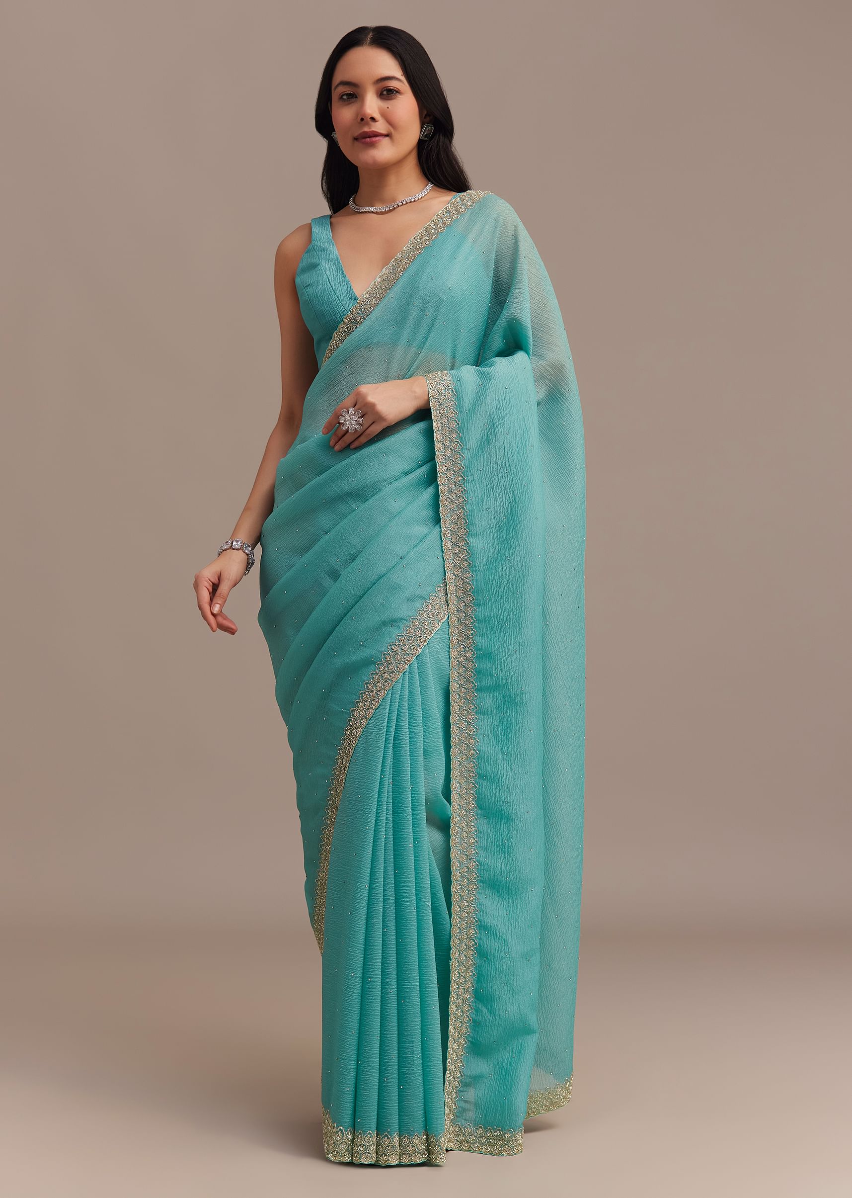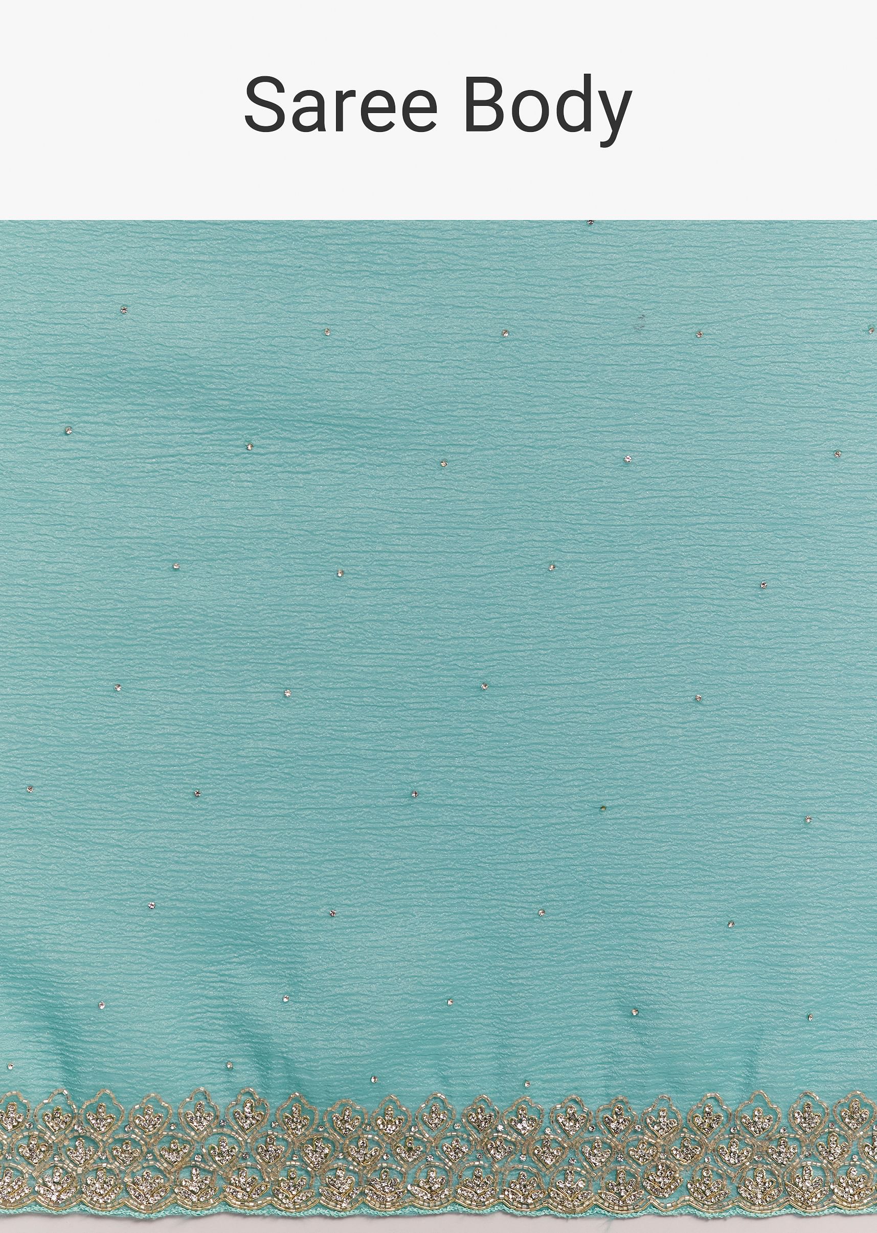 Light Blue Crushed Tissue Saree Embroidered With Cutdana And Stones
