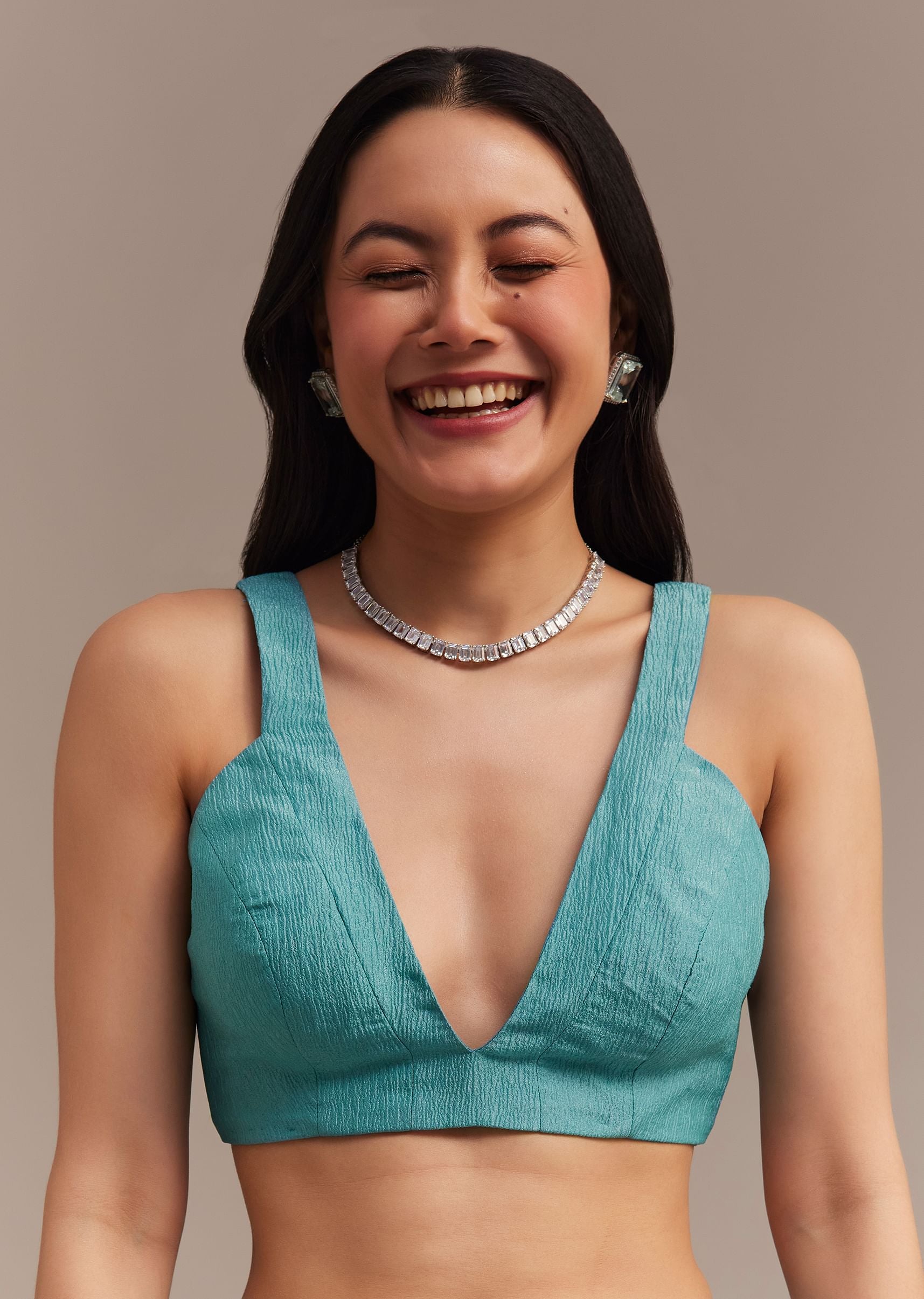 Bask in timeless elegance with this light blue crushed tissue saree featuring exquisite cutdana and stone embroidery. The delicate embellishments shimmer subtly against the sheer fabric creating a mesmerizing play... More Product Details