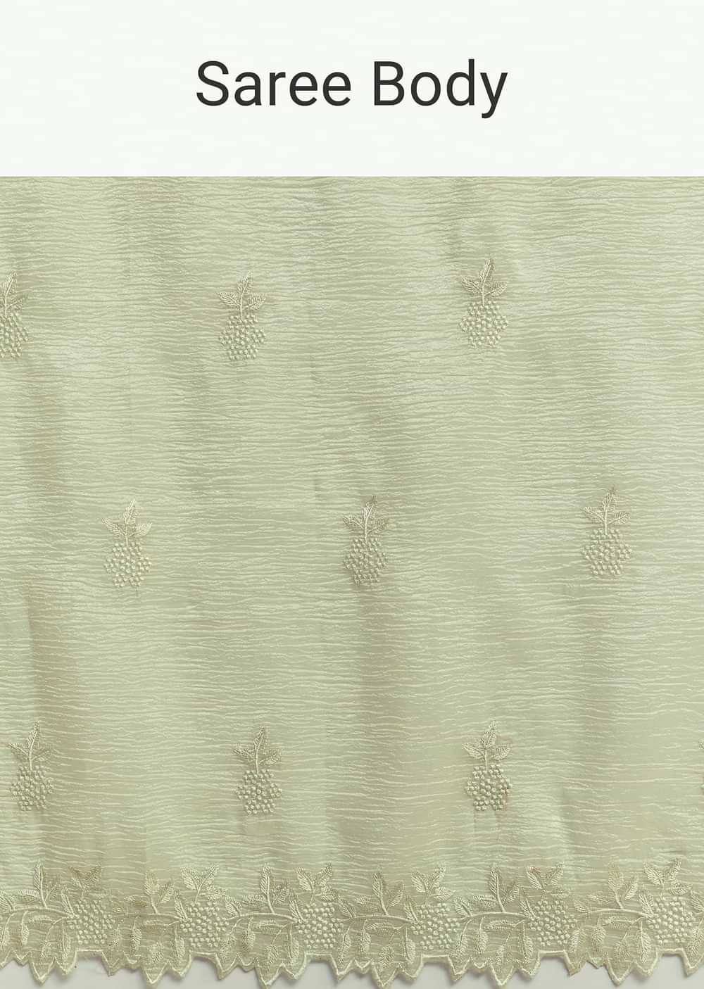 Light Green Crushed Tissue Saree With Resham Embroidered Border