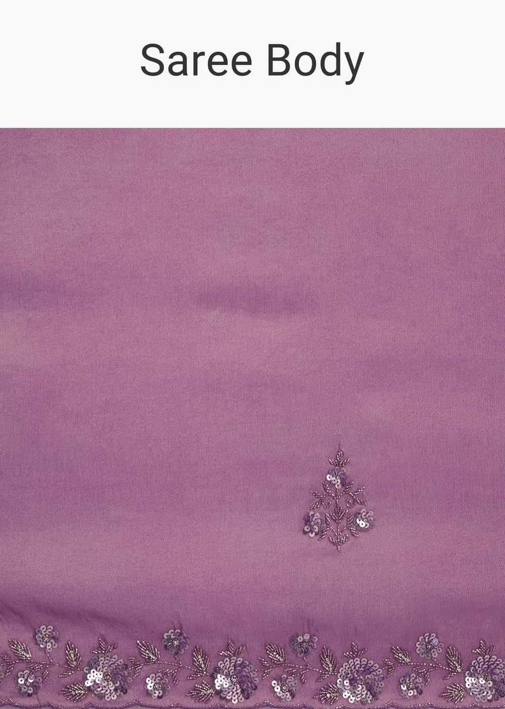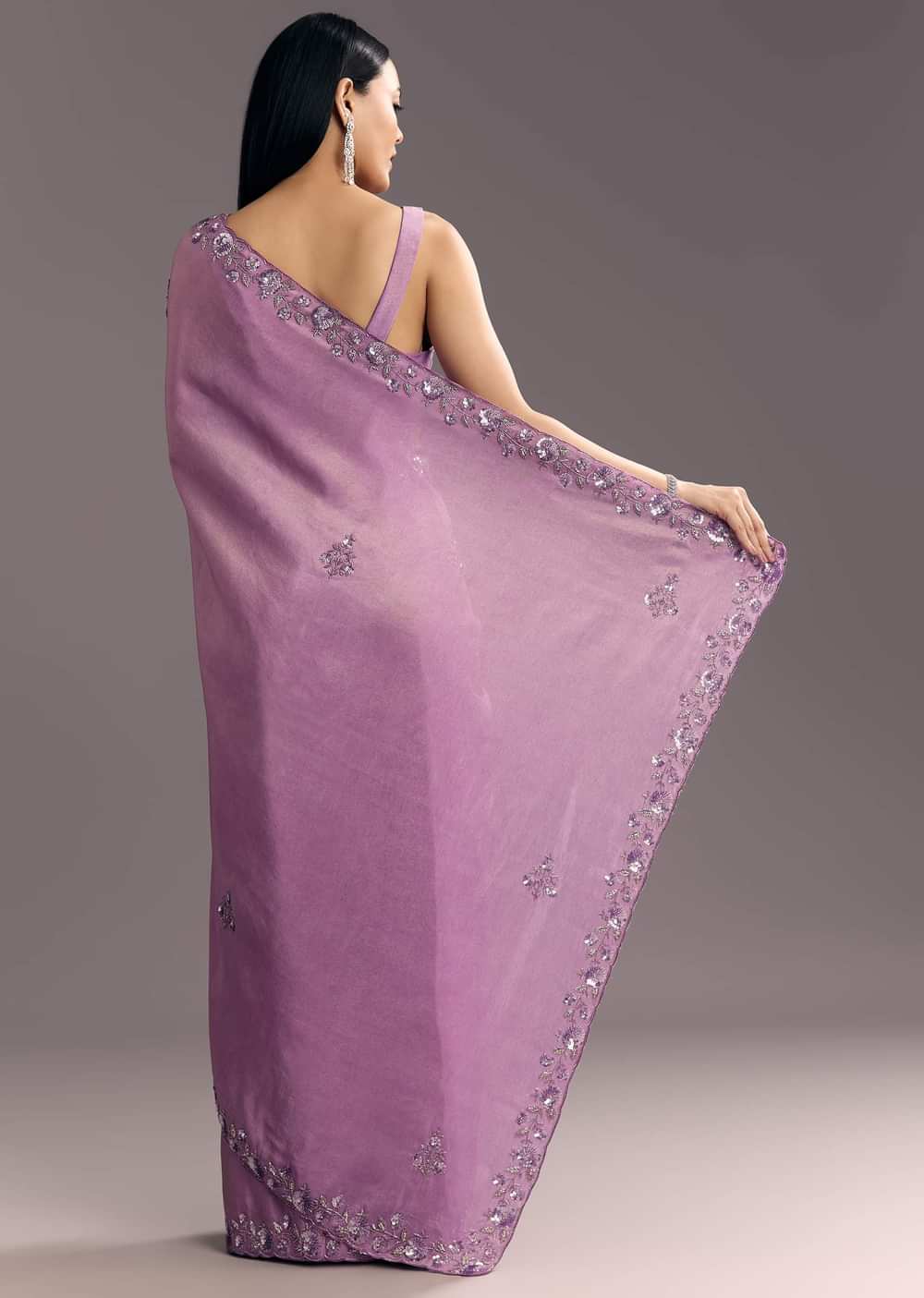 Light Lavender Tissue Saree With Floral Embroidered Scallop Border
