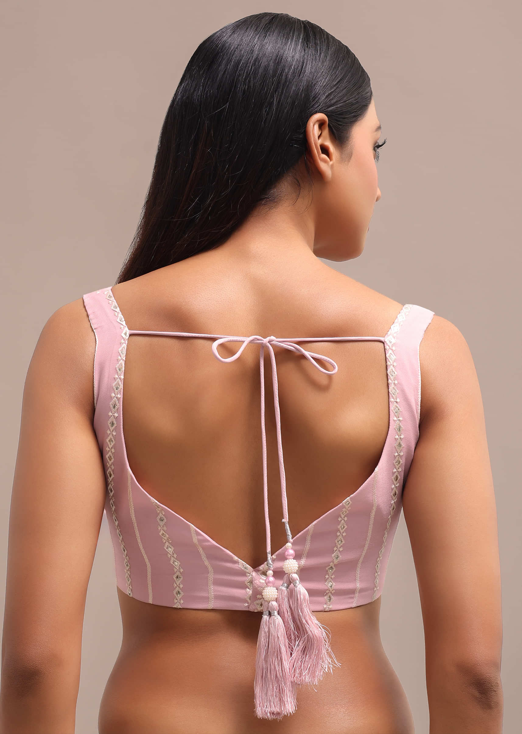 Light Pink Georgette Parsi Gara Saree With Unstitched Blouse