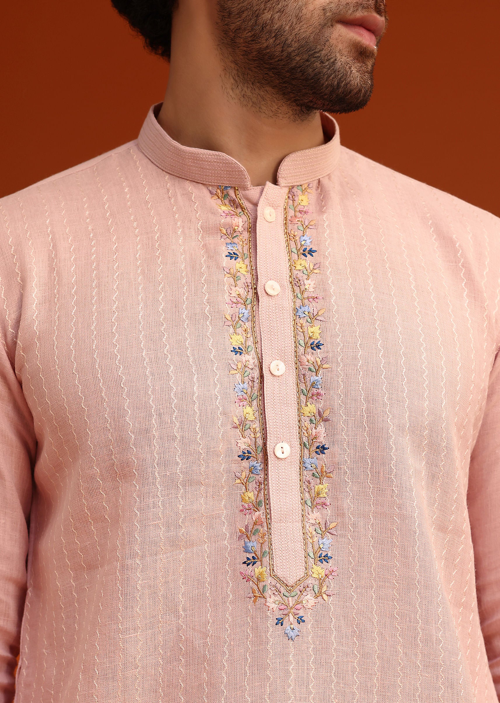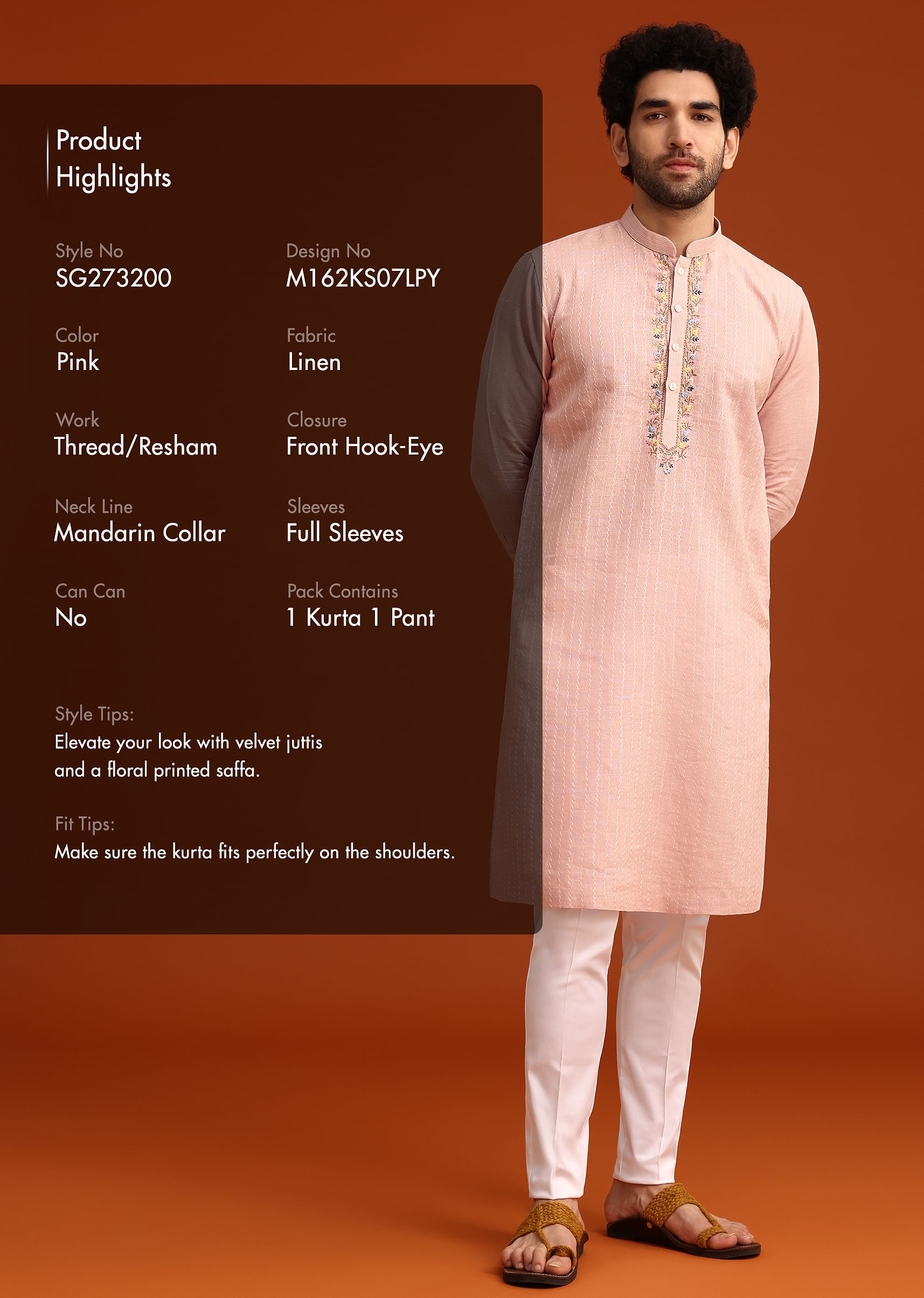 - A minimialistic style that will help you slay all through festive season is this light pink kurta set.