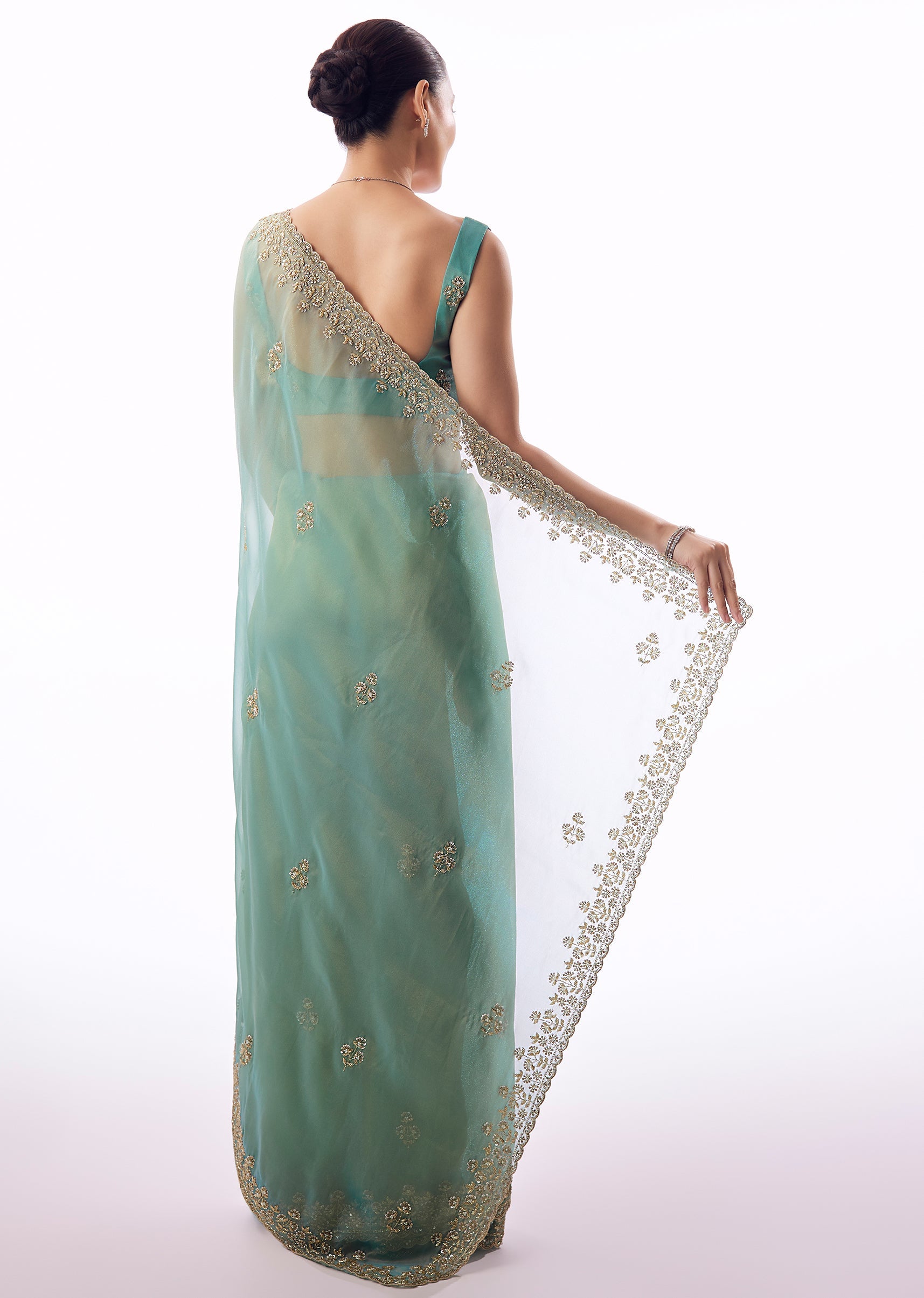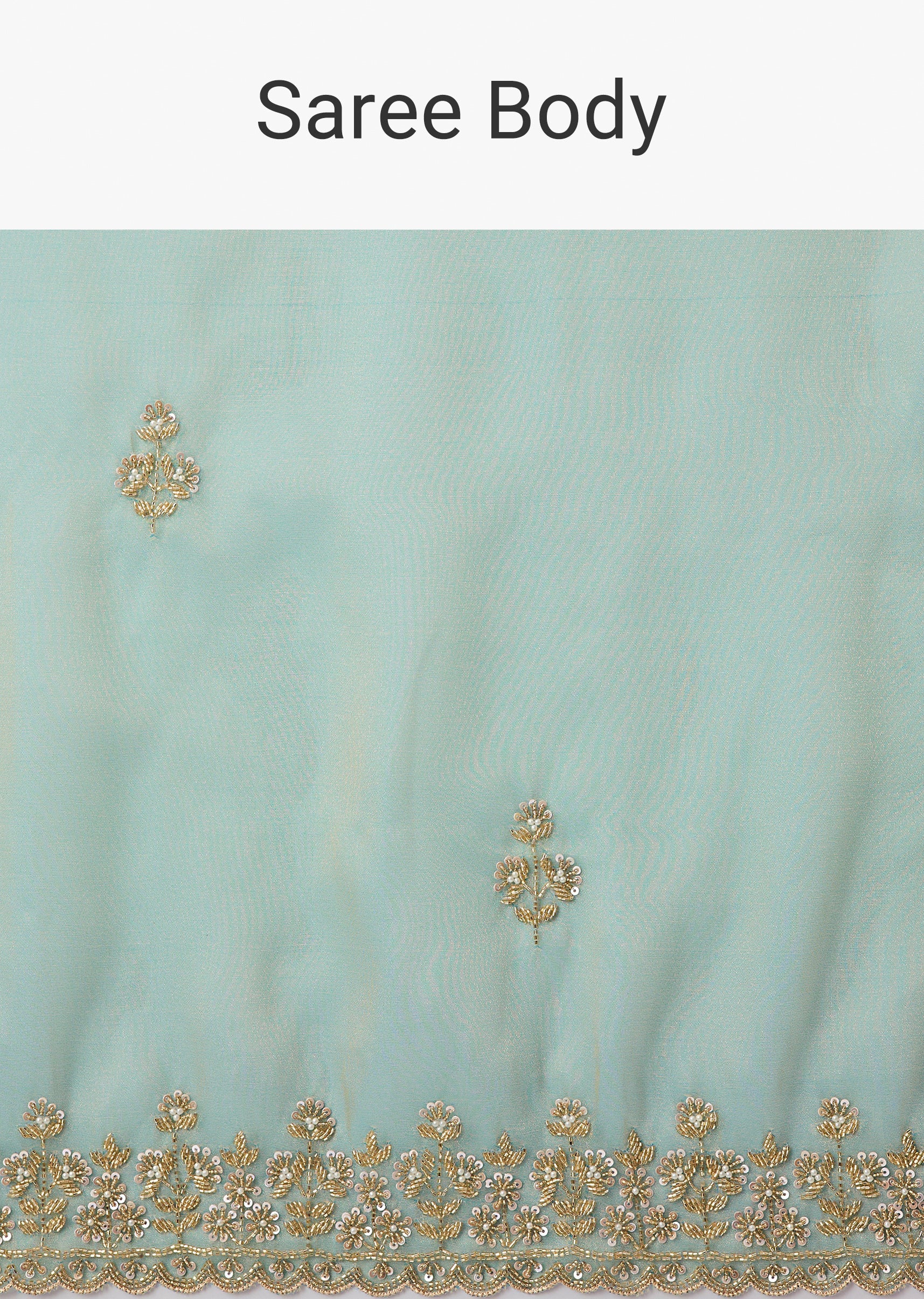 Light Turquoise Blue Tissue Saree And Cutdana Sequin Bead Embroidered Borders