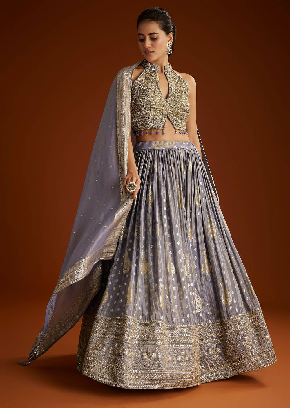 Lilac Banarasi Tissue Lehenga Dupatta With Embroidered Choli