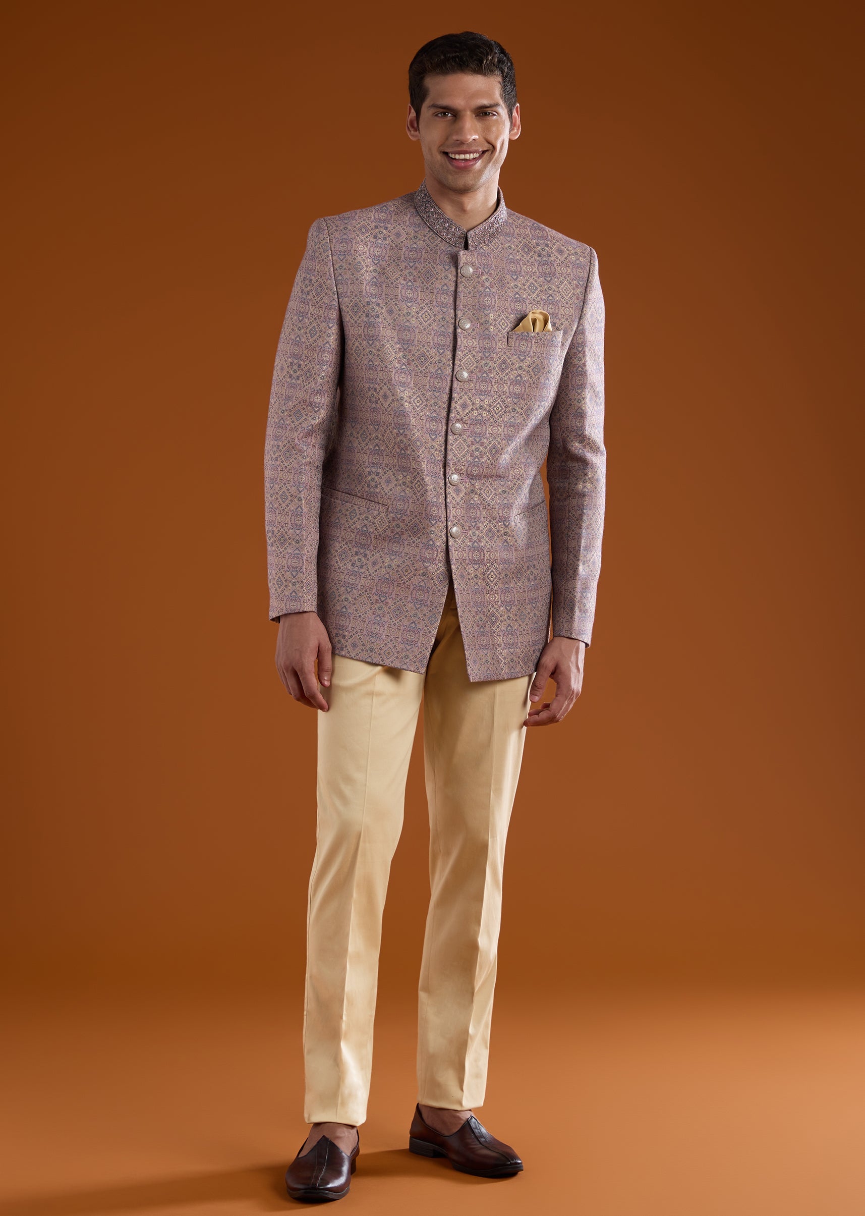 Lilac Jacquard Jodhpuri Set with Bead Work