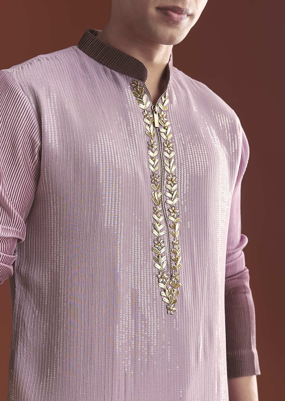 Lilac Ombre Kurta Set For Men With Sequins Embroidery