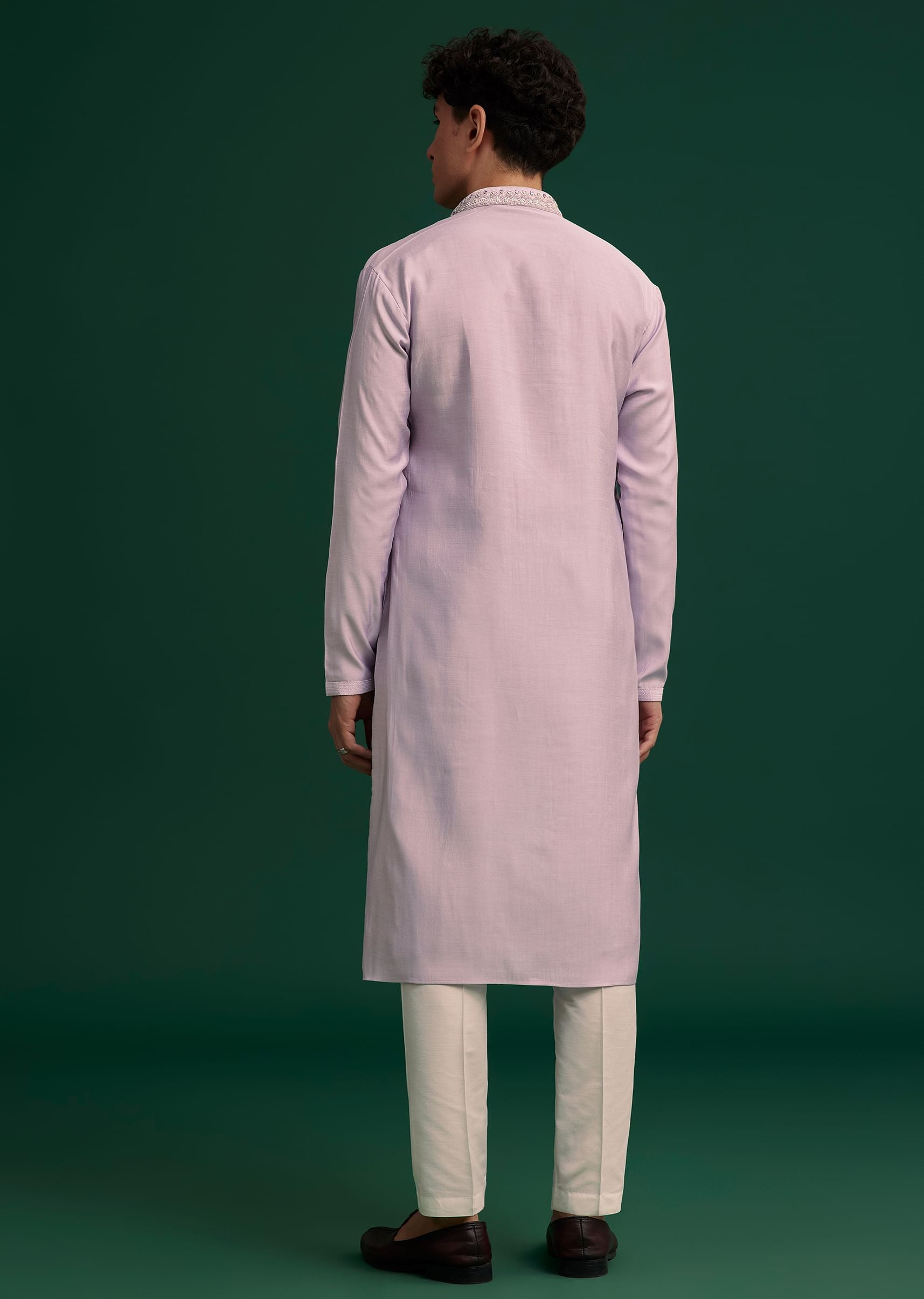 Lilac Silk Hand Embroidered Yoke Kurta Set