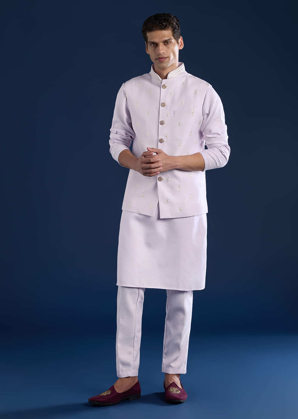 Lilac Silk Jacket Kurta Set with Sequin Embroidery