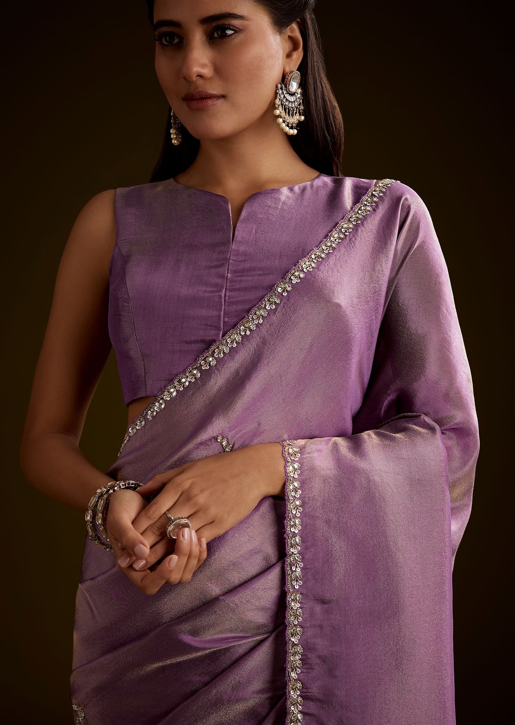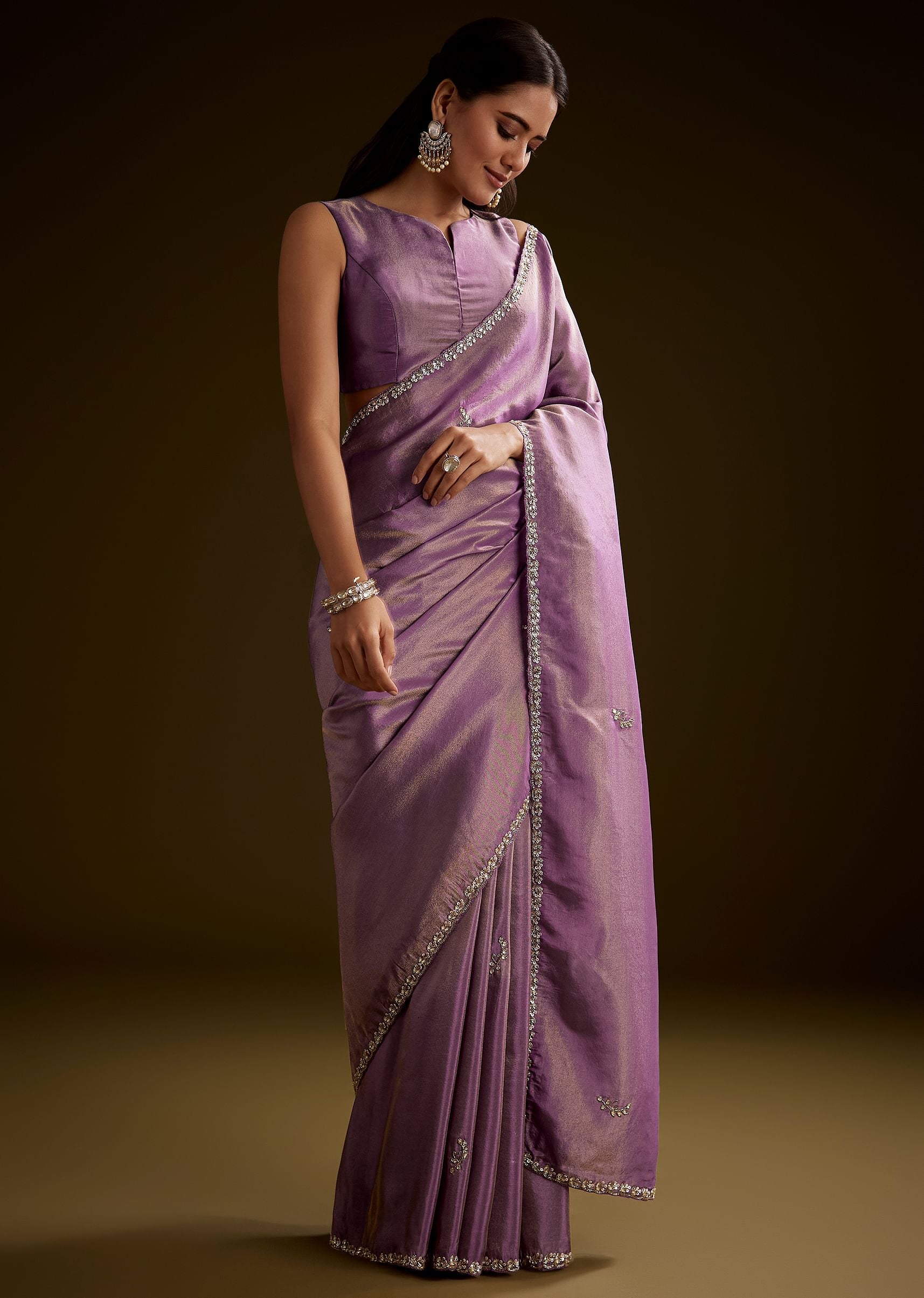 Lilac Tissue Saree With Cutdana Embroidery And Scallop Border