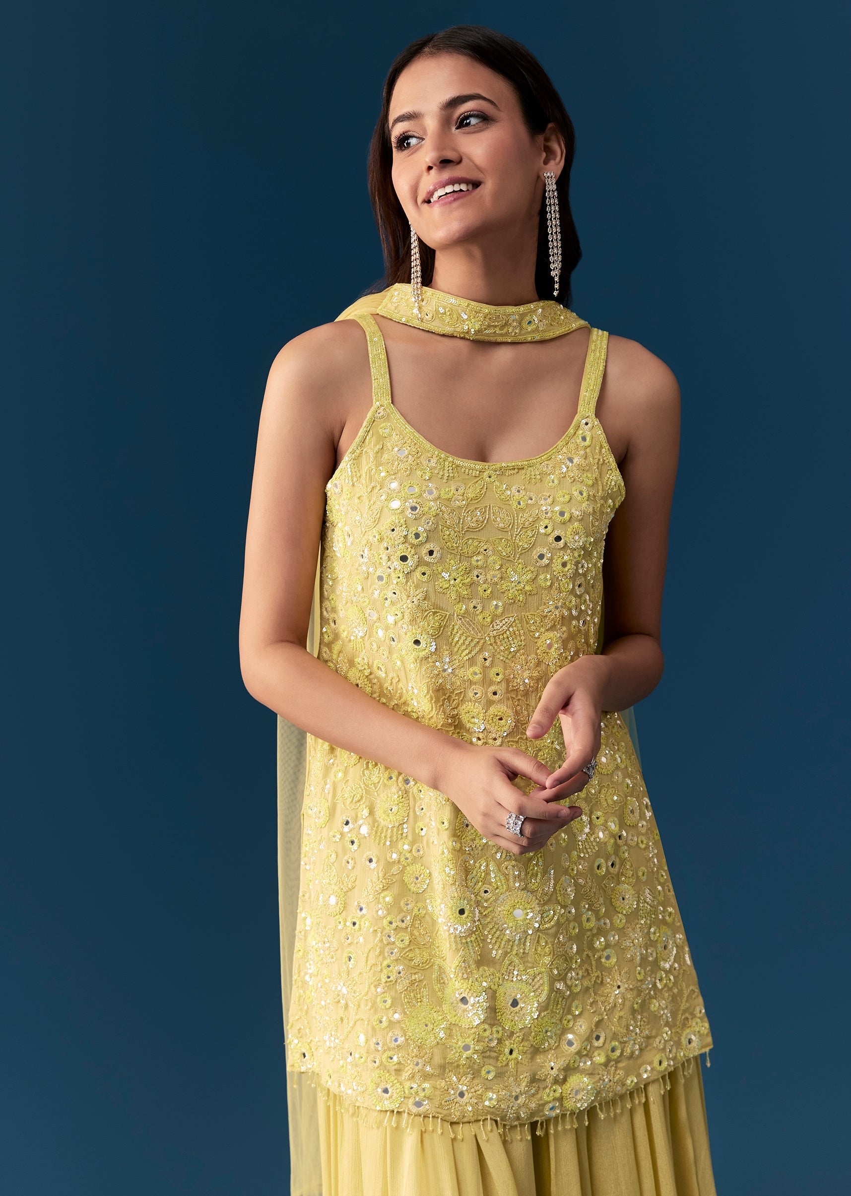 Lime Green Palazzo Suit With Mirror Sequins And Cut Dana Work