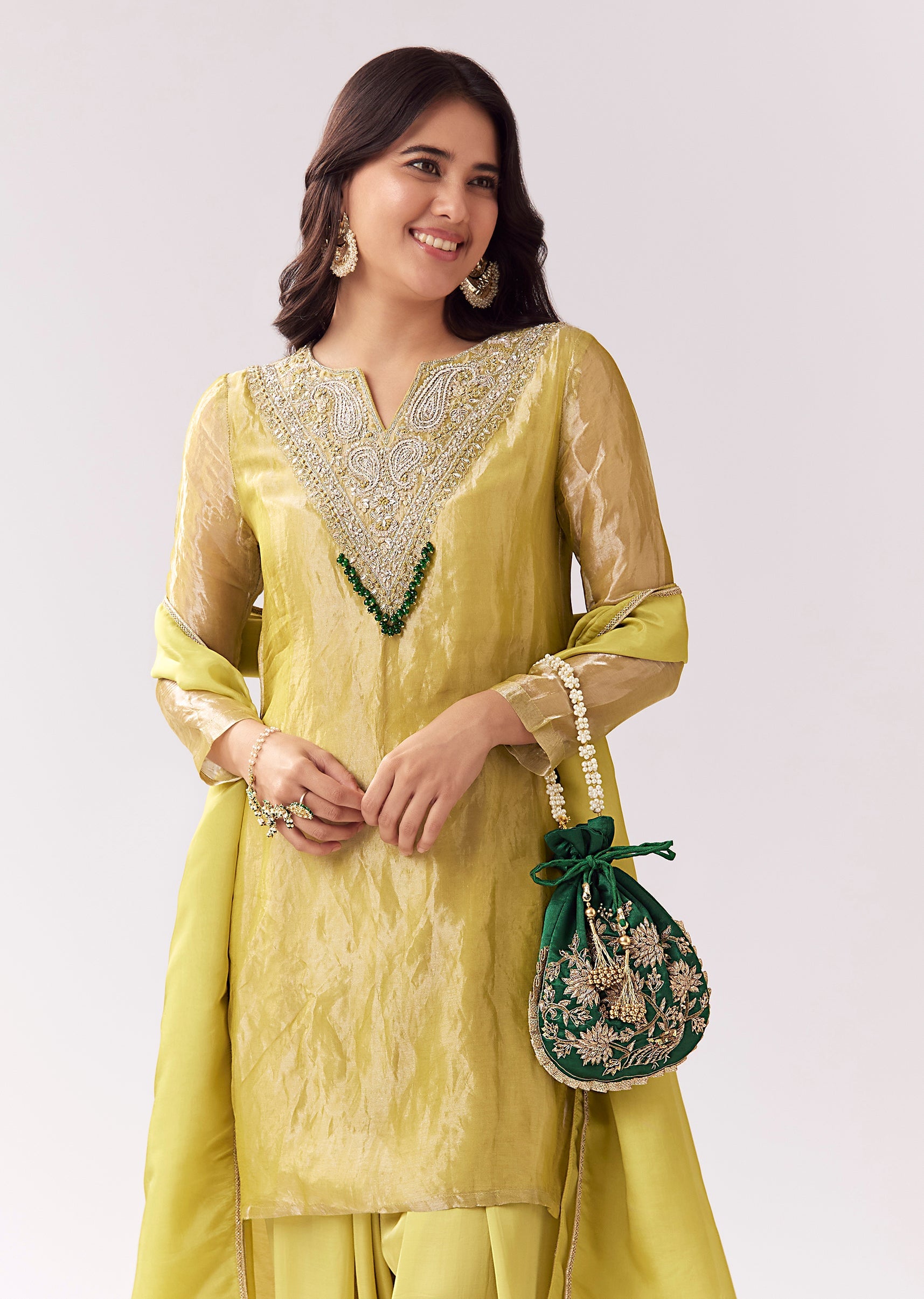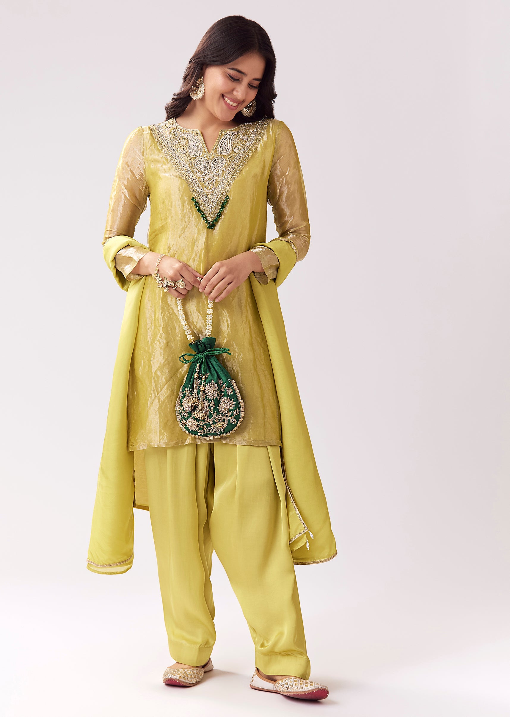 Lime Green Patiala Suit With Zardozi Sparkle