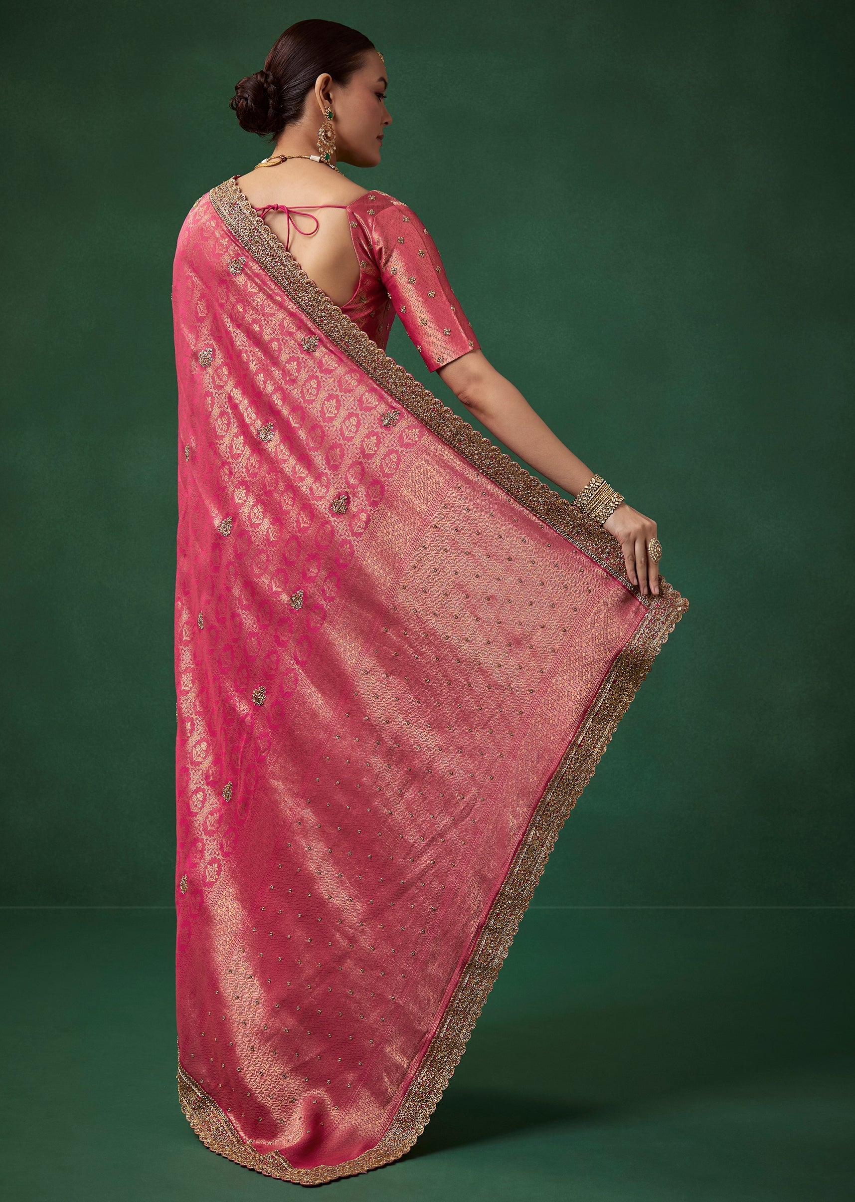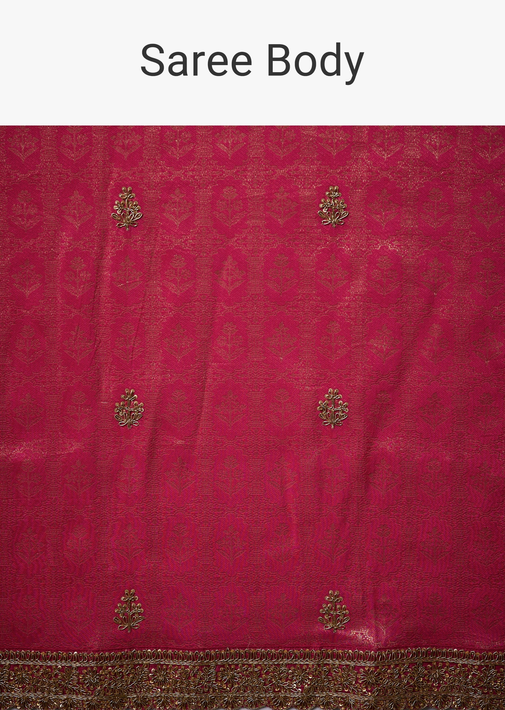 Magenta Embroidered Jacquard Border Saree with Unstitched Blouse