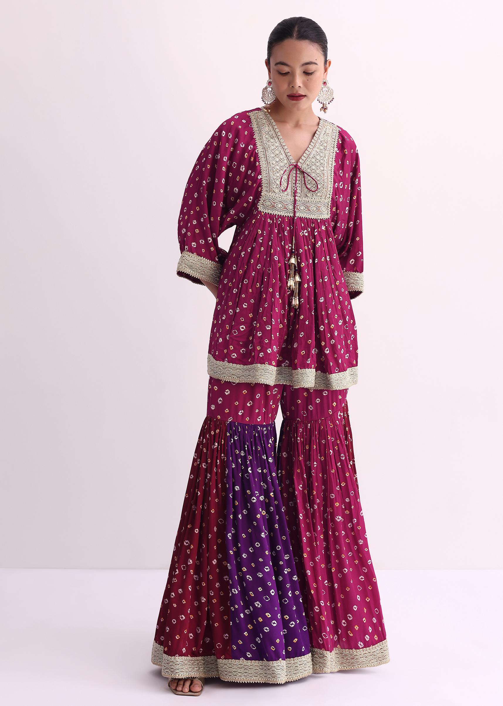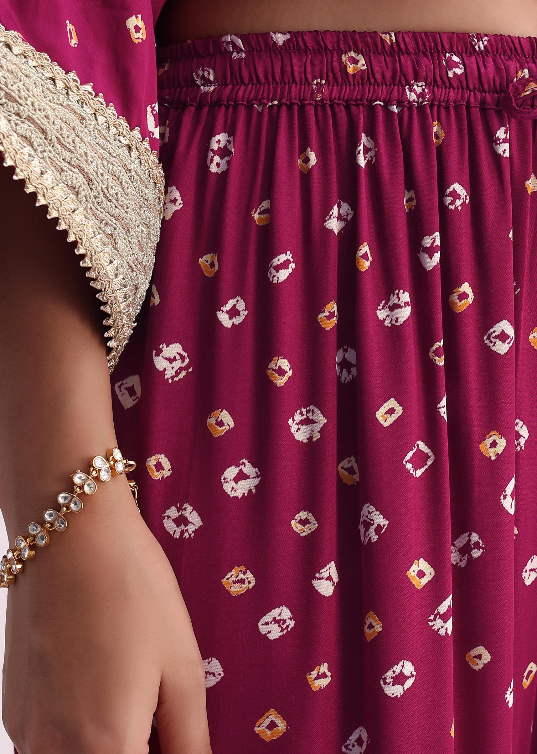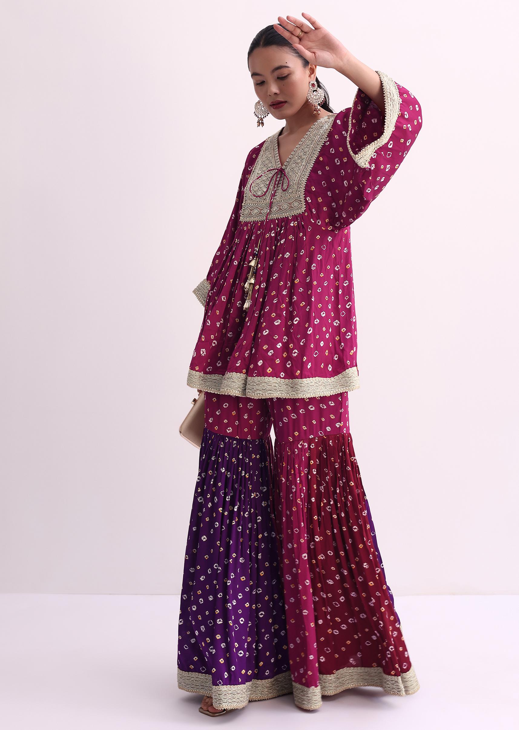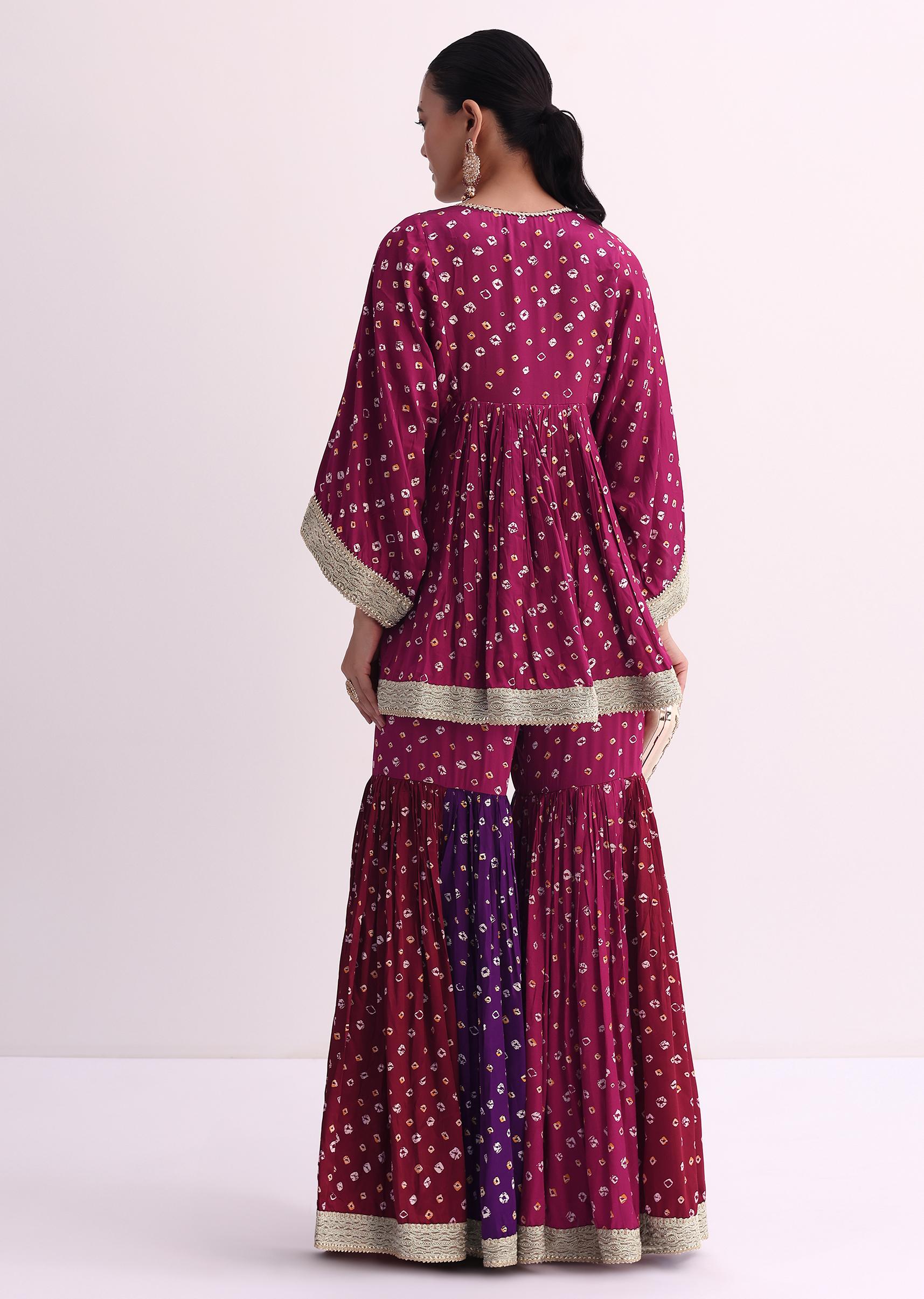 Magenta Pink Crepe Bandhani Print Sharara Set