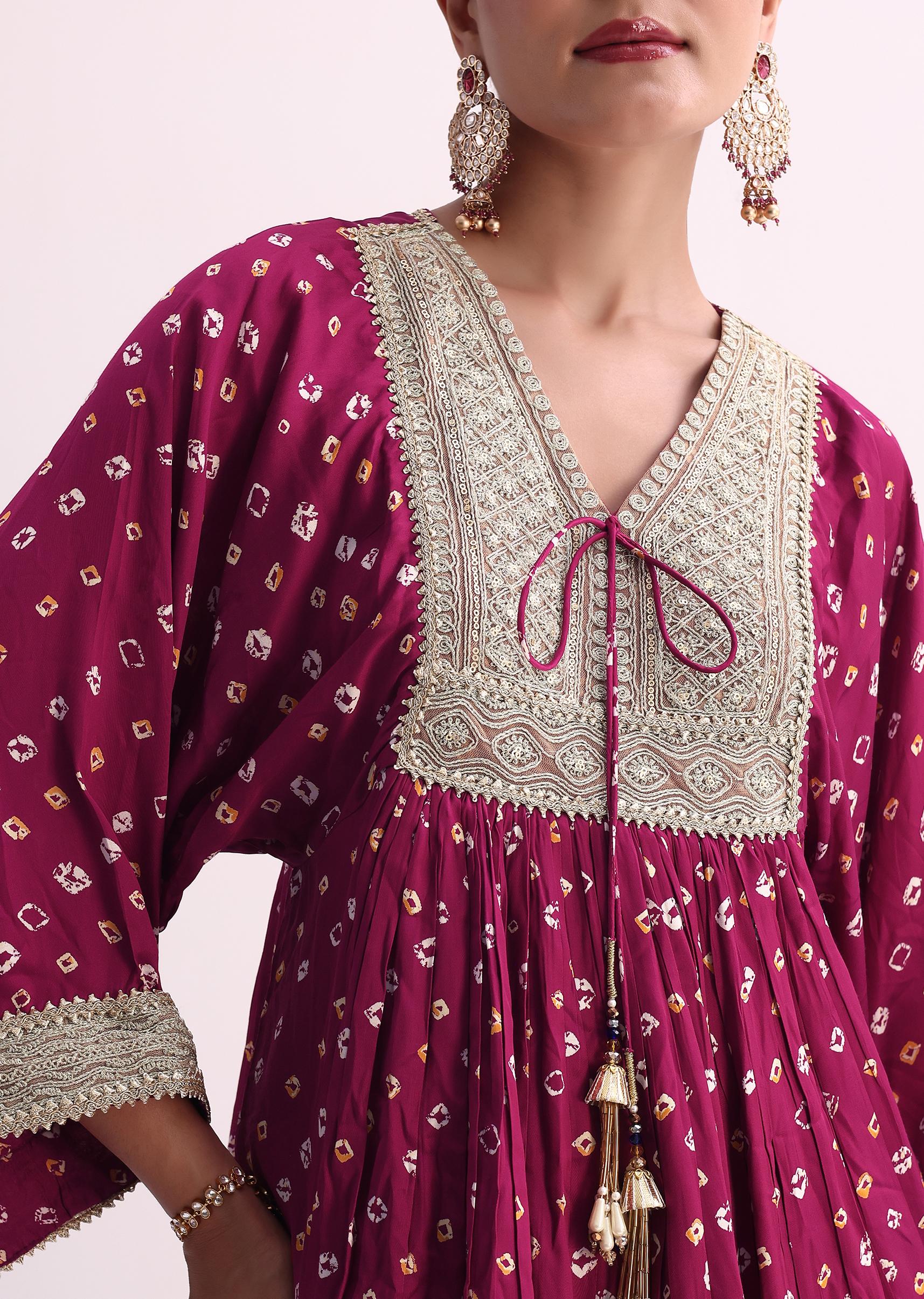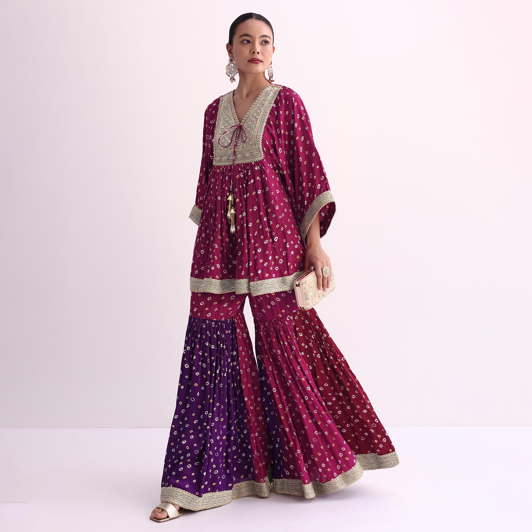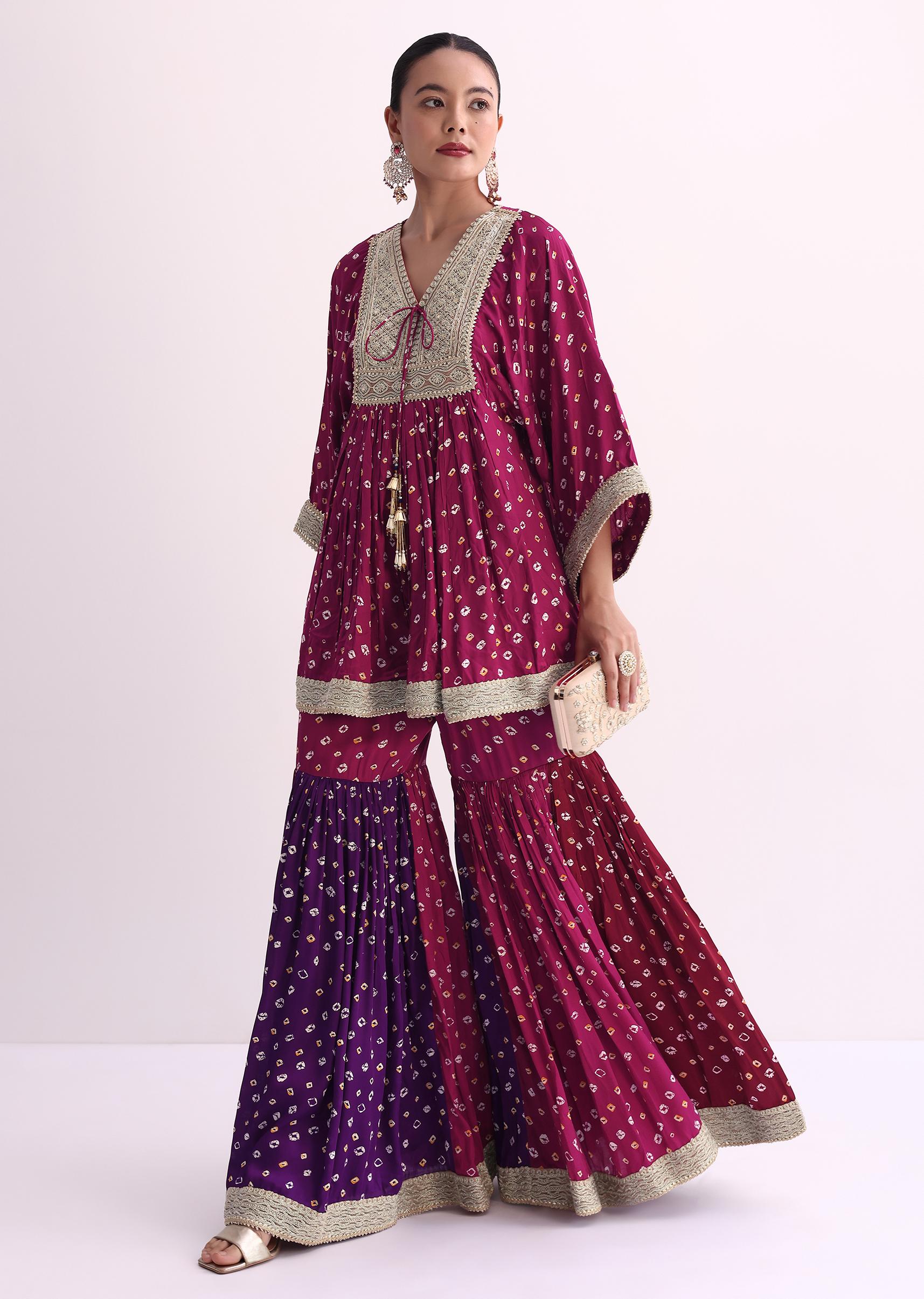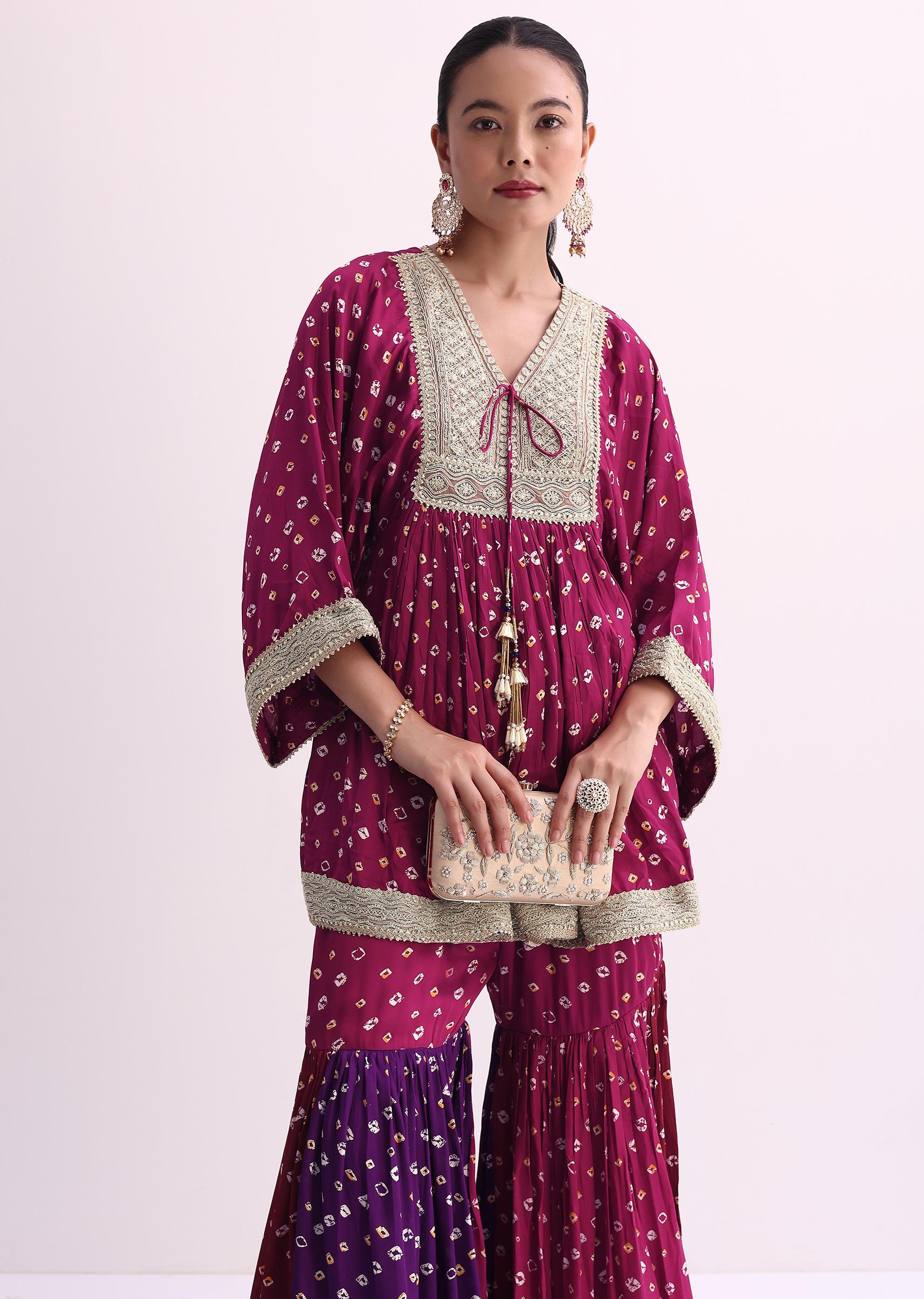 Magenta Pink Crepe Bandhani Print Sharara Set