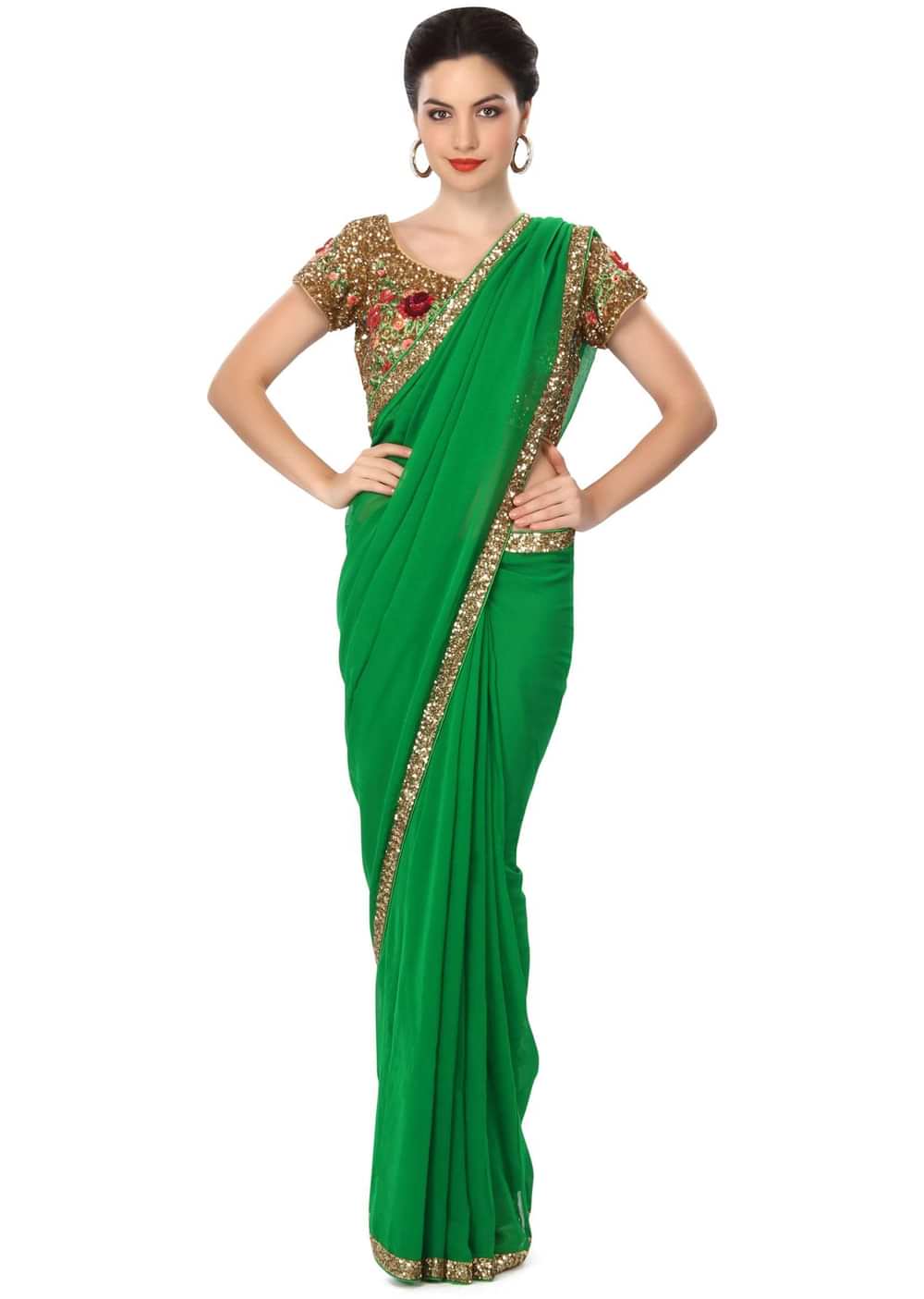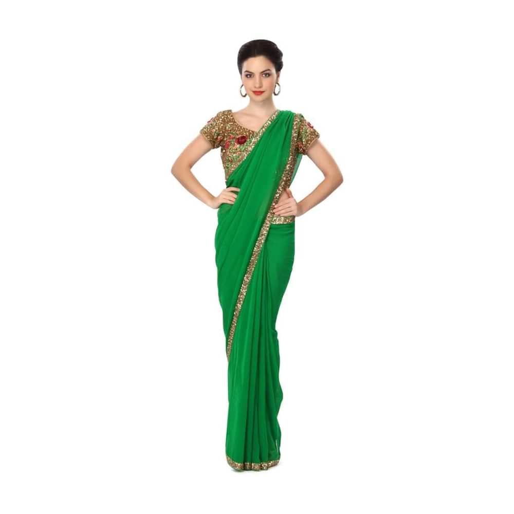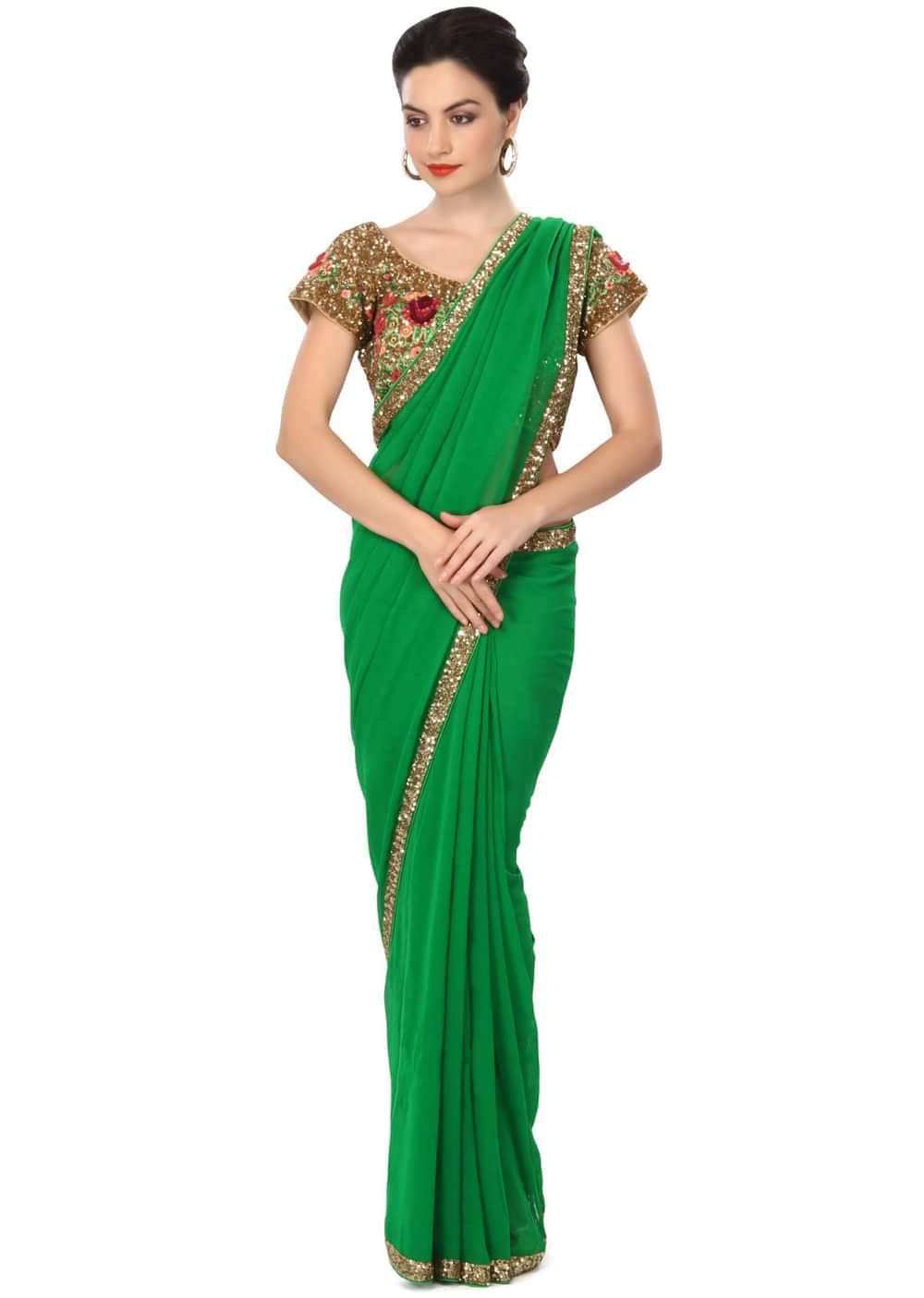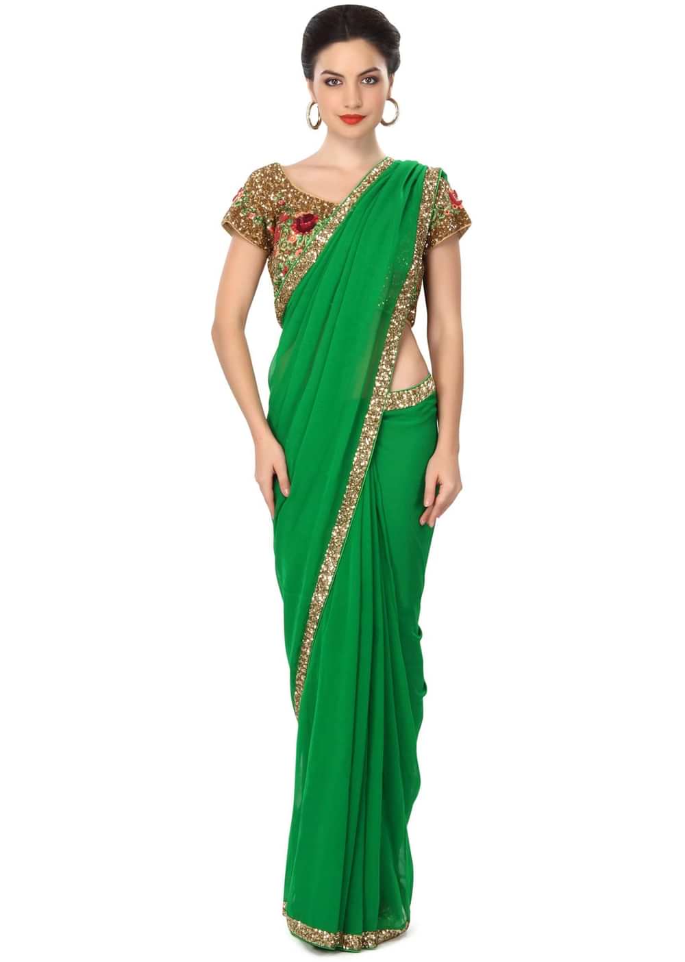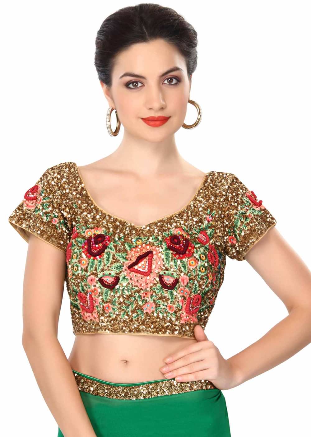 - Matched with ready blouse embroidered in resham and sequin embroidery.