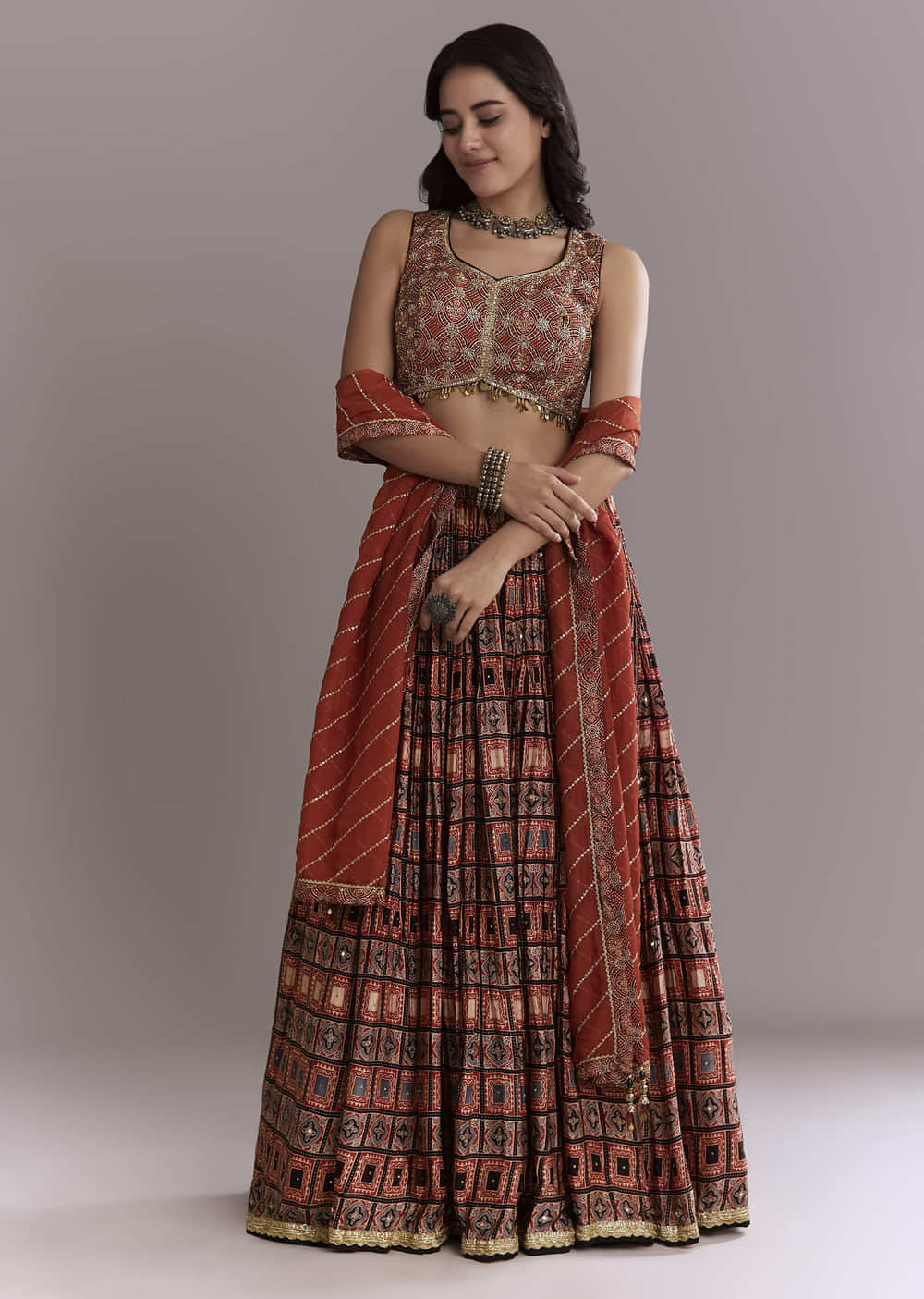 Maroon Modal Bridesmaid Lehenga With Hand Dyed Ajrakh Print