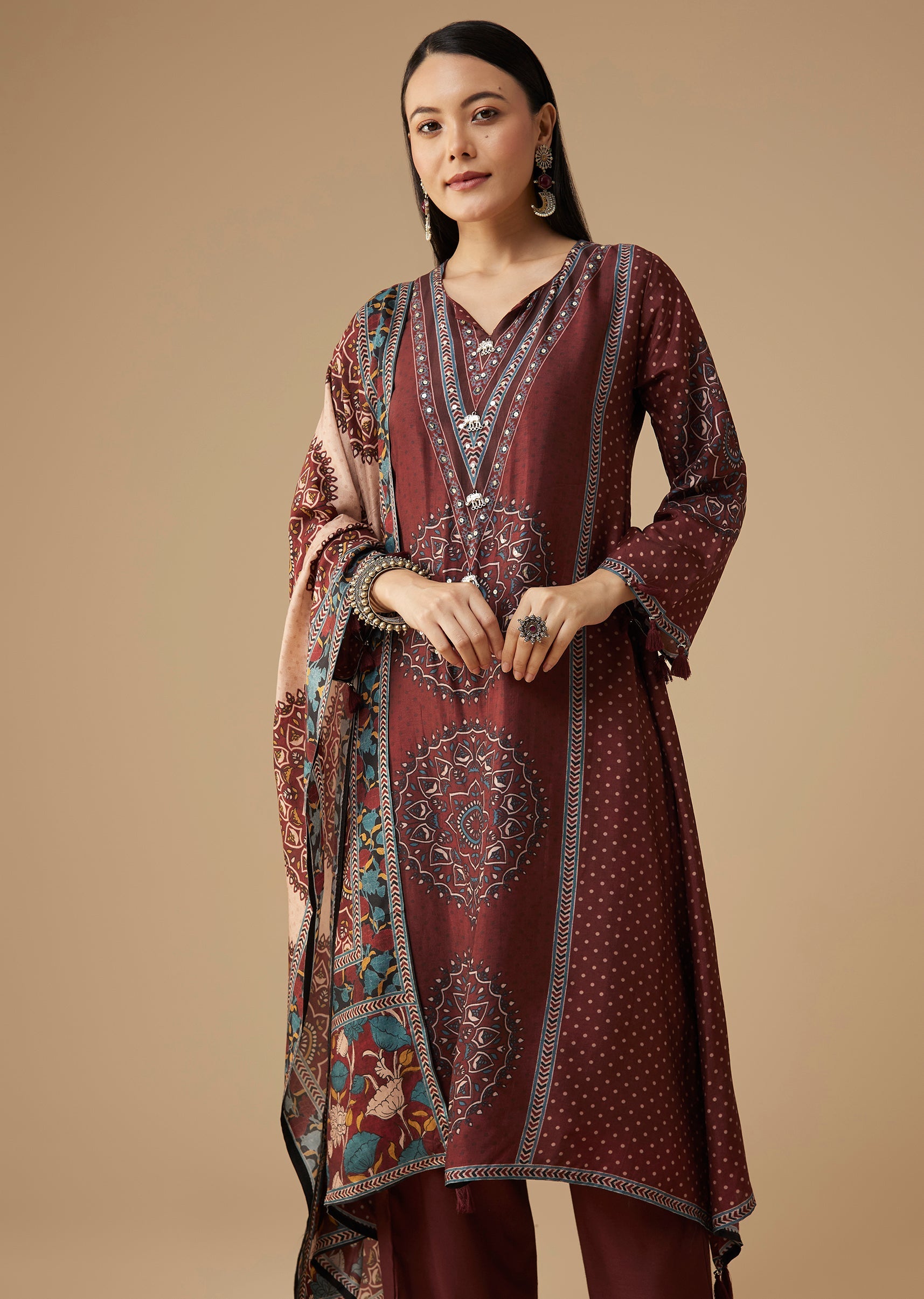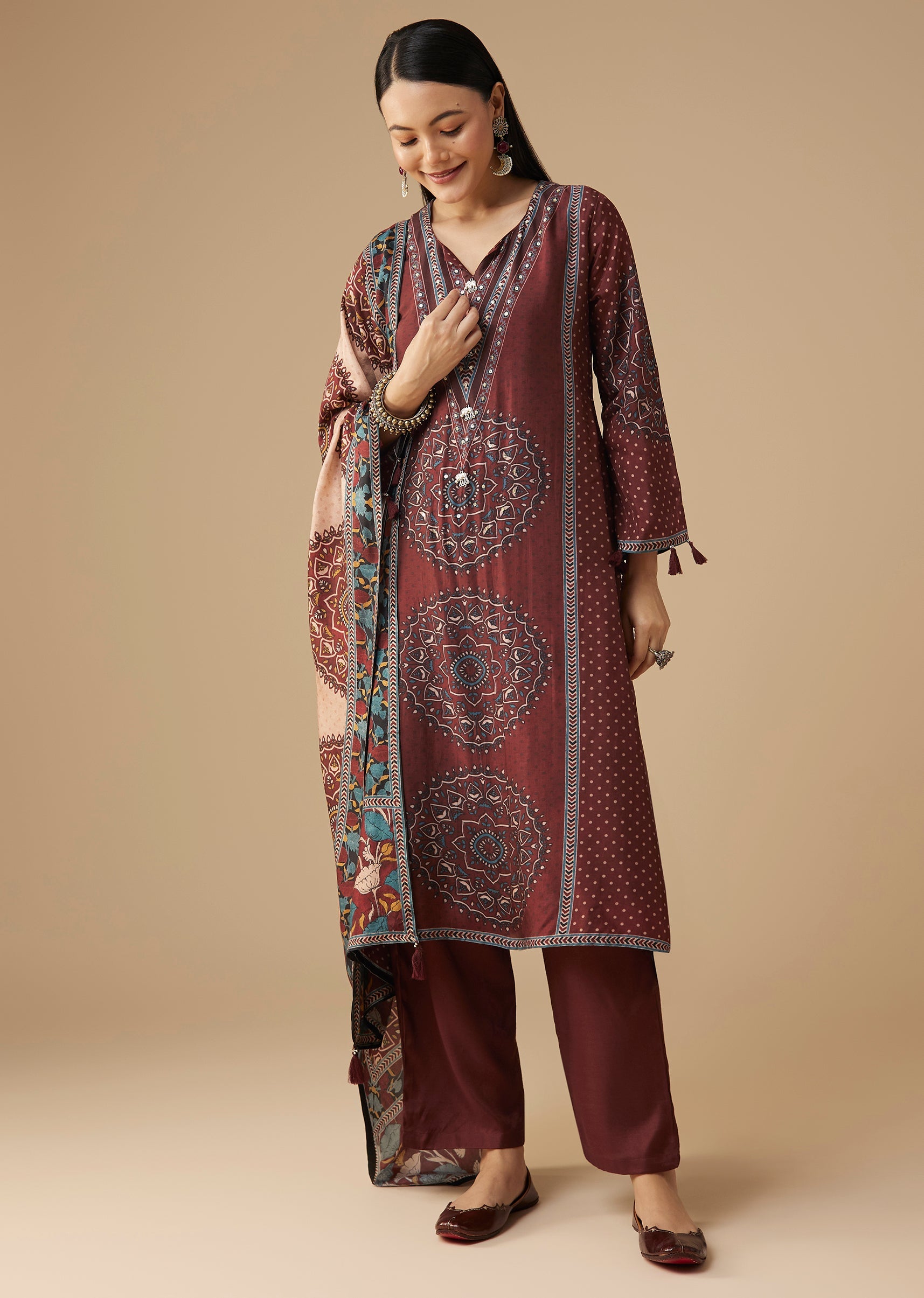 Step into elegant ease with this silk kurta set, featuring printed detailing highlighted with delicate sequin work for a subtle festive shimmer. The flared sleeves add a graceful, modern touch,... More Product Details