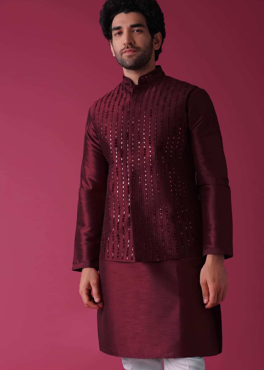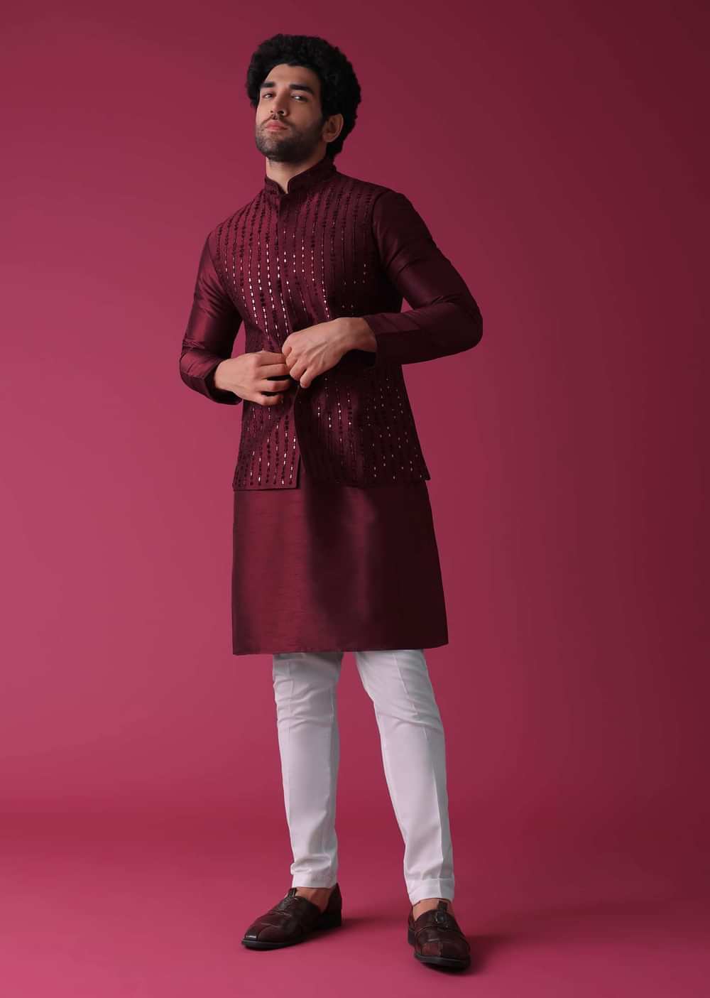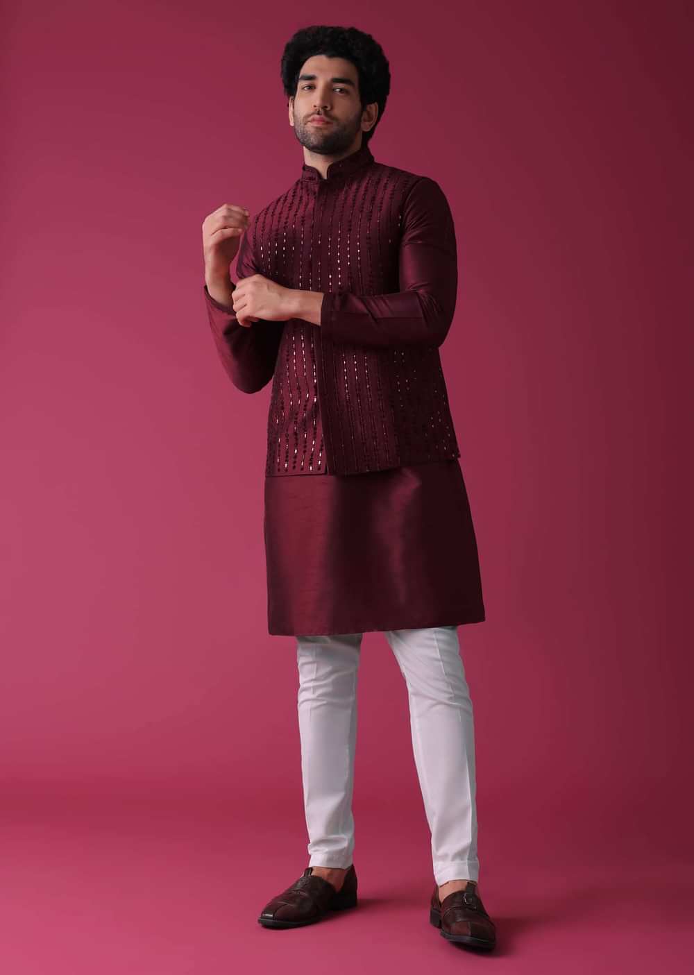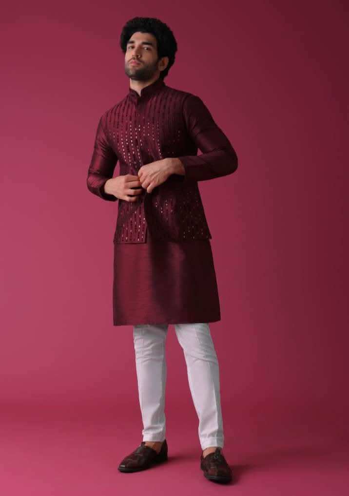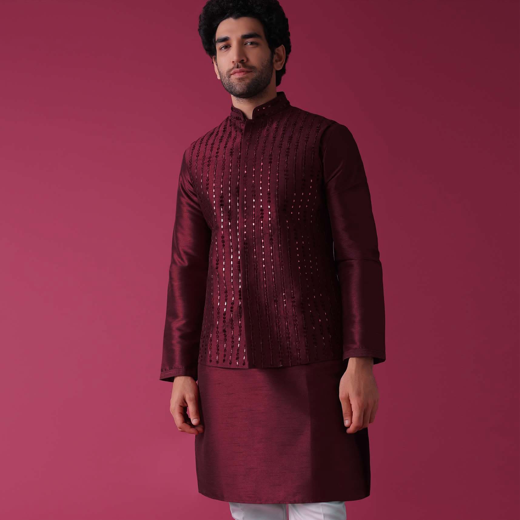 - Introducing our sophisticated red jacket kurta set in silk, designed to elevate your ethnic fashion game.