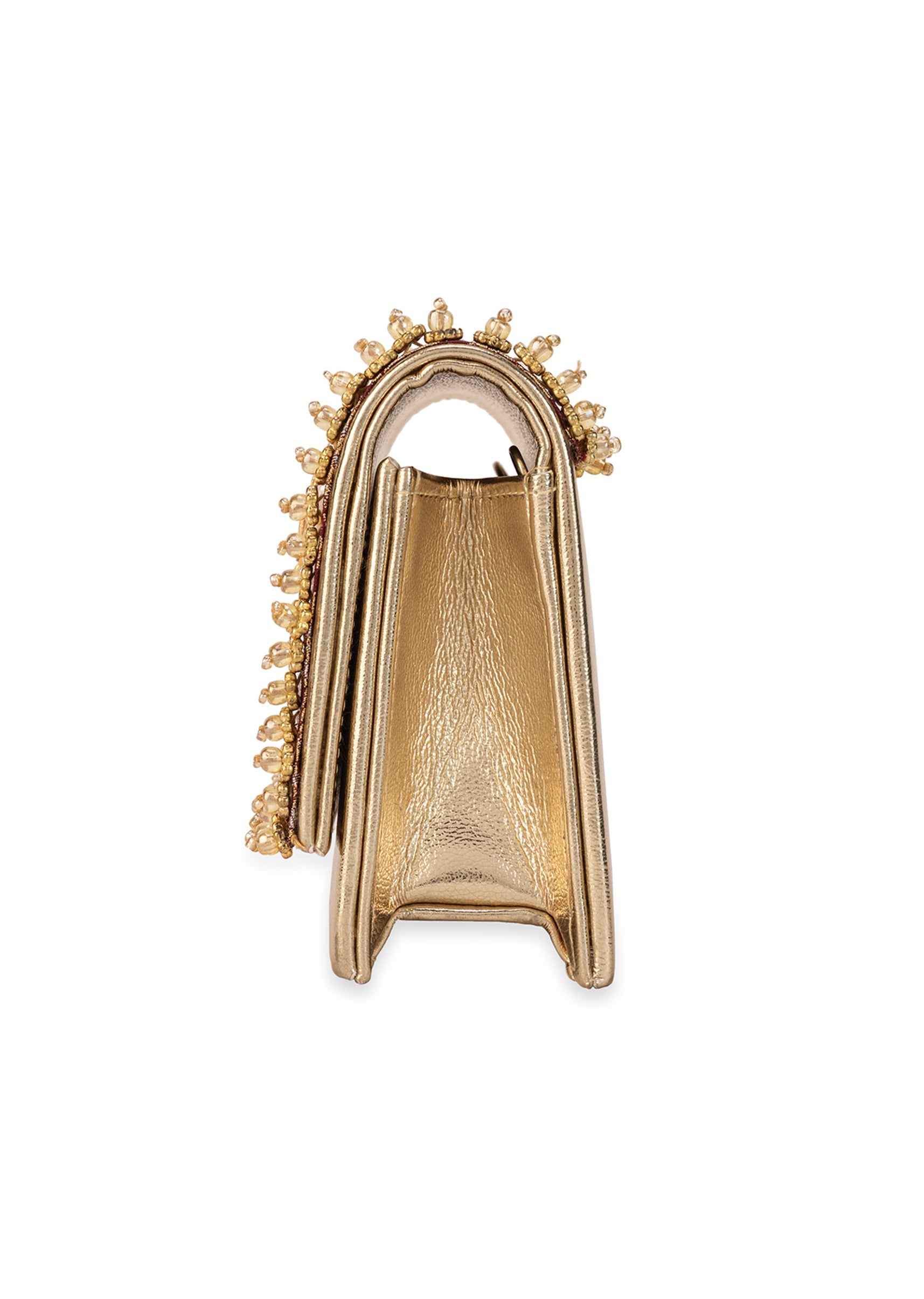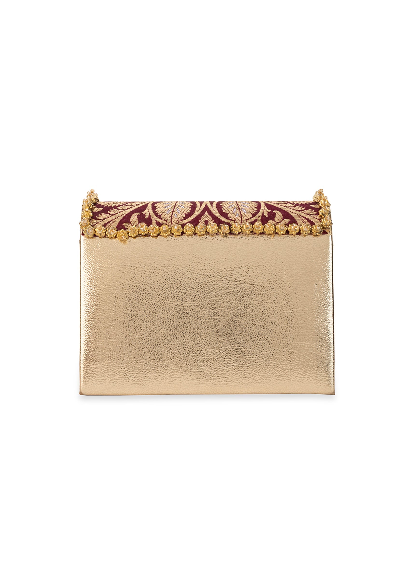 Maroon Zari and Kundan Embellished Rectangular Flap Bag