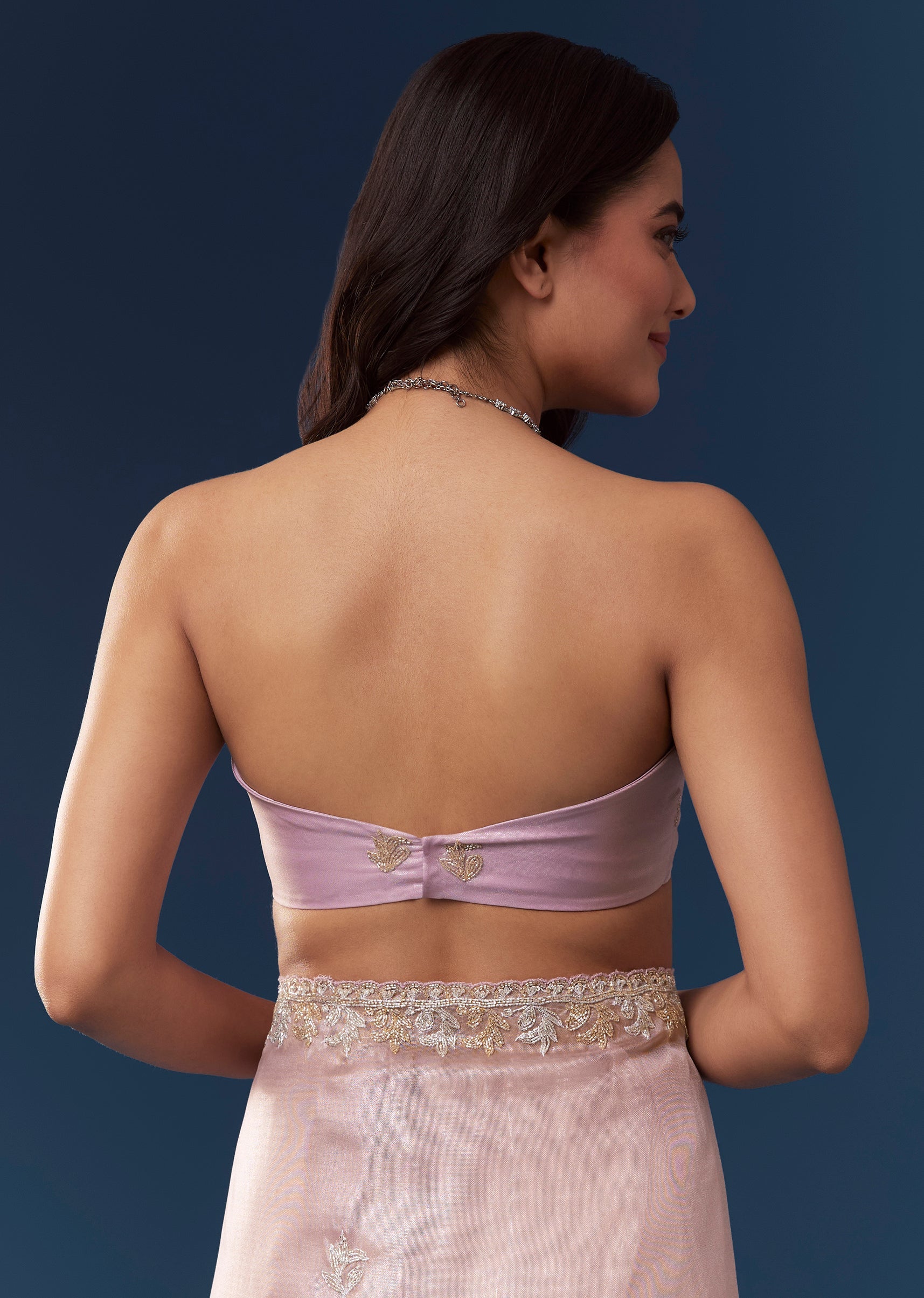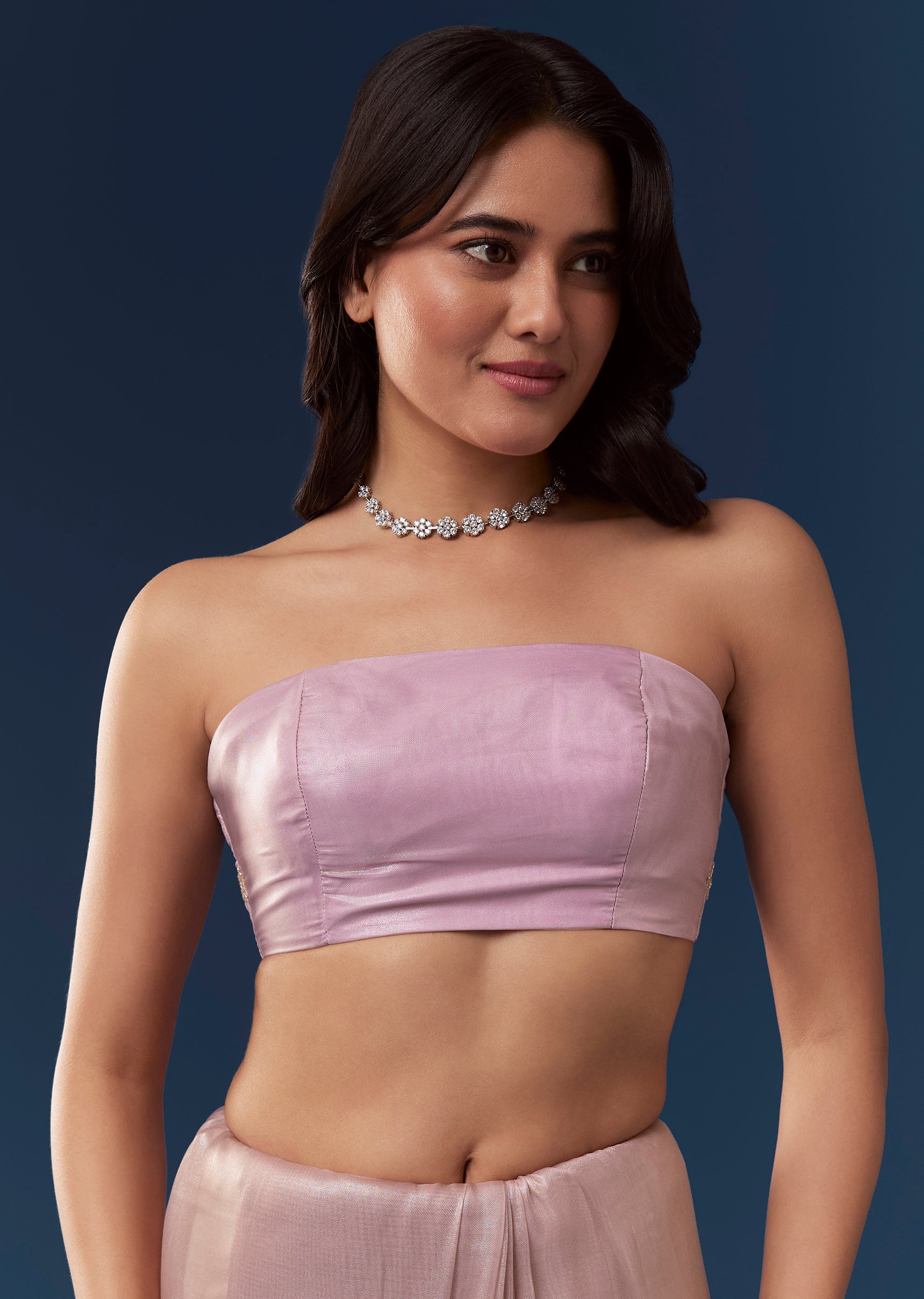 Mauve Tissue Saree With Scallop Embroidered Border And Butti Work