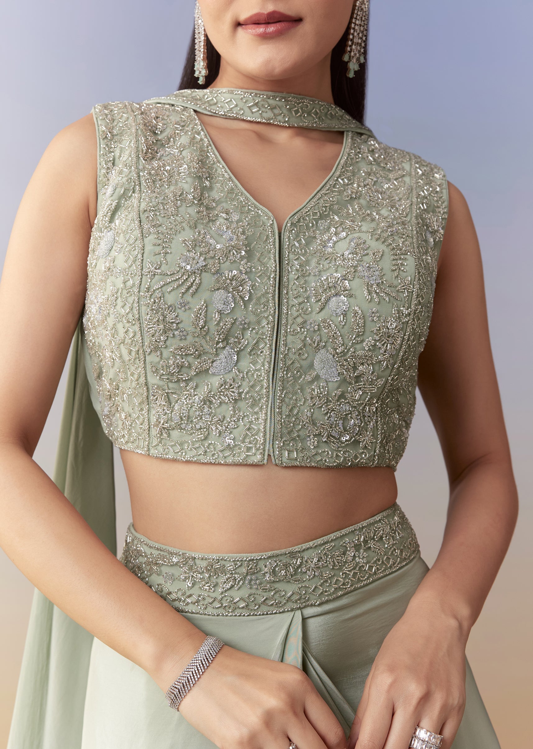 Mehendi Green Crop Top Skirt Set with Dupatta