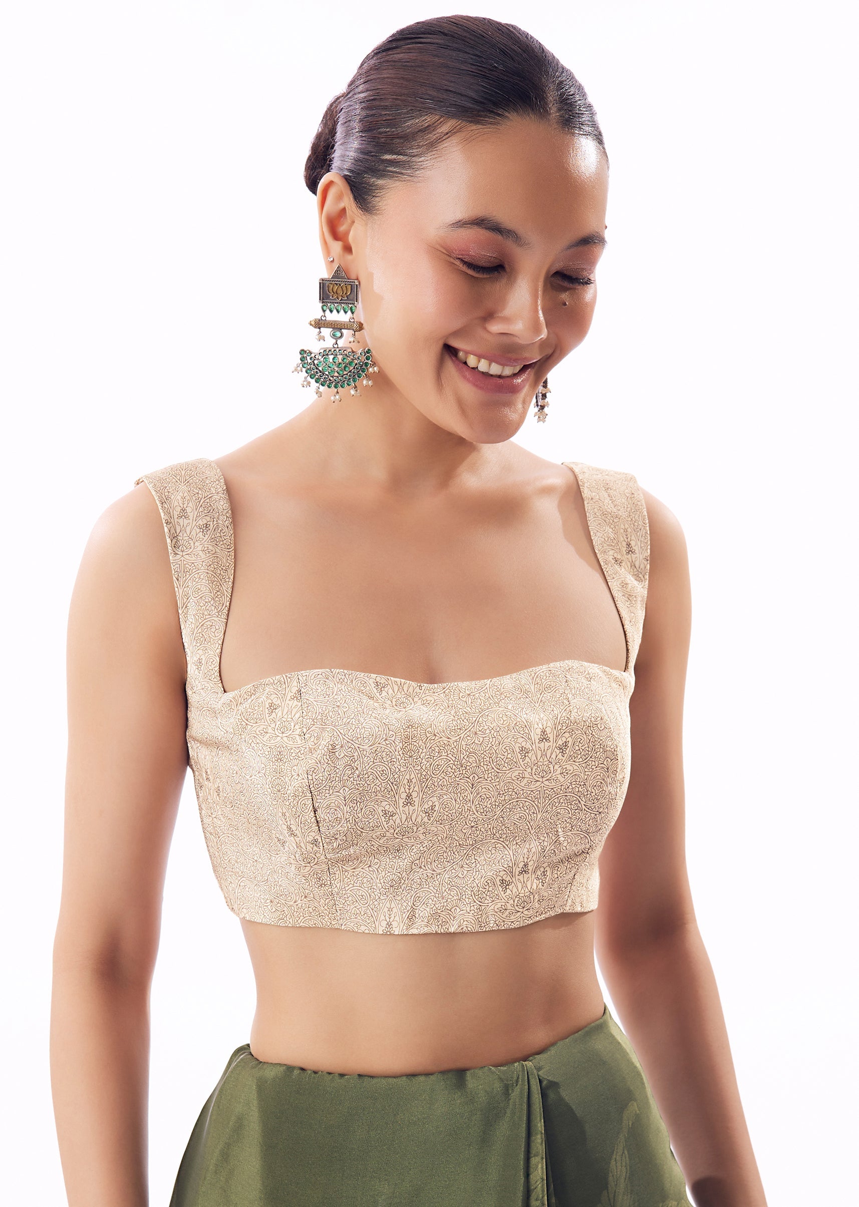 Vibrant and festive, this mehendi green floral printed saree is perfect for traditional celebrations. Crafted in a crepe-silk blend, it features all-over floral prints that add colour and liveliness. The... More Product Details