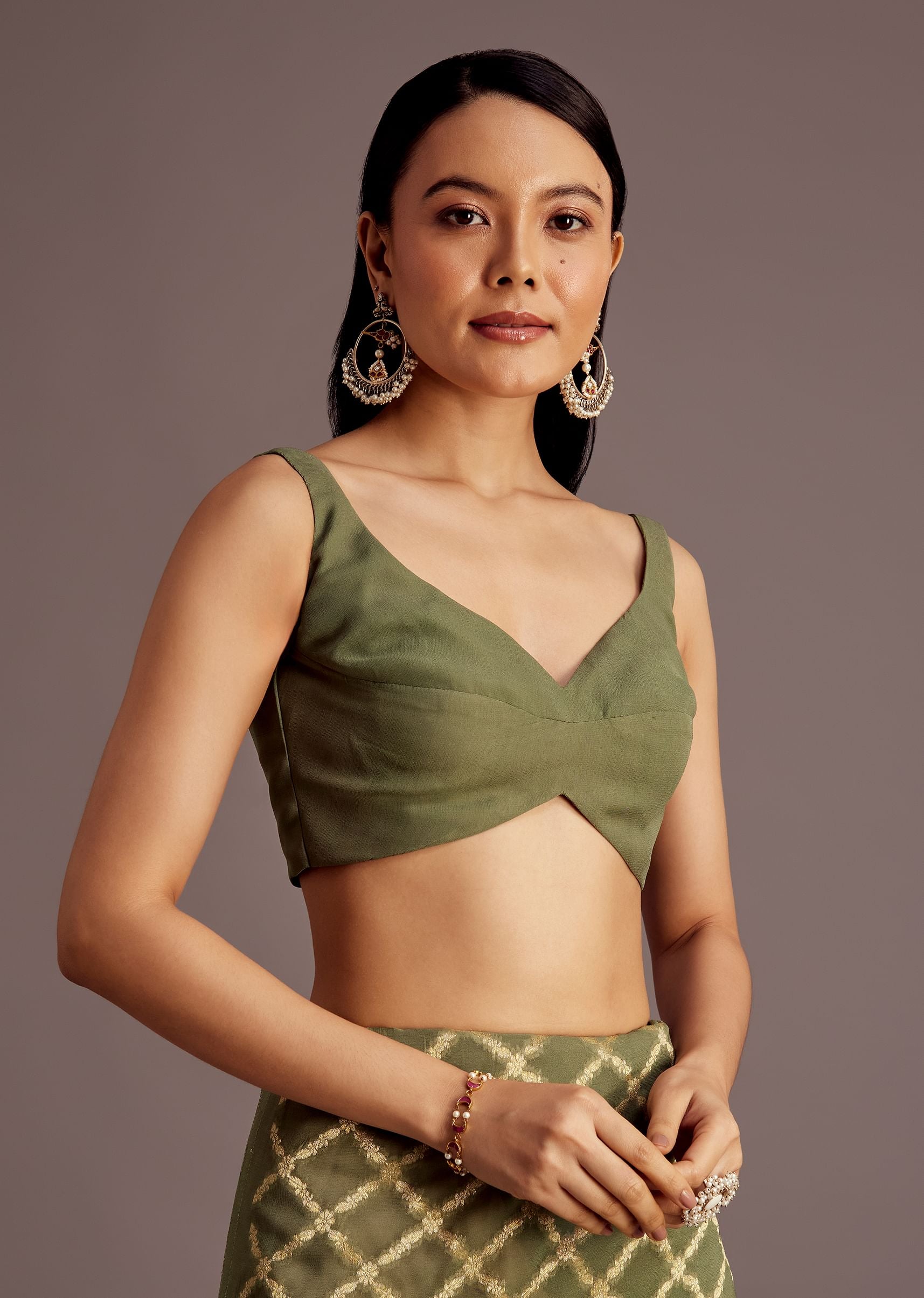 Mehendi Green Georgette Saree With Jaal And Animal-Bird Motifs