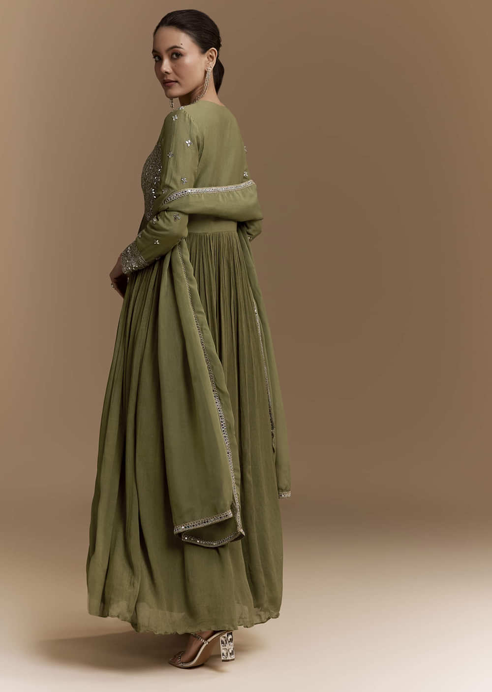 Mehendi Green Mirror Work Anarkali with Dupatta