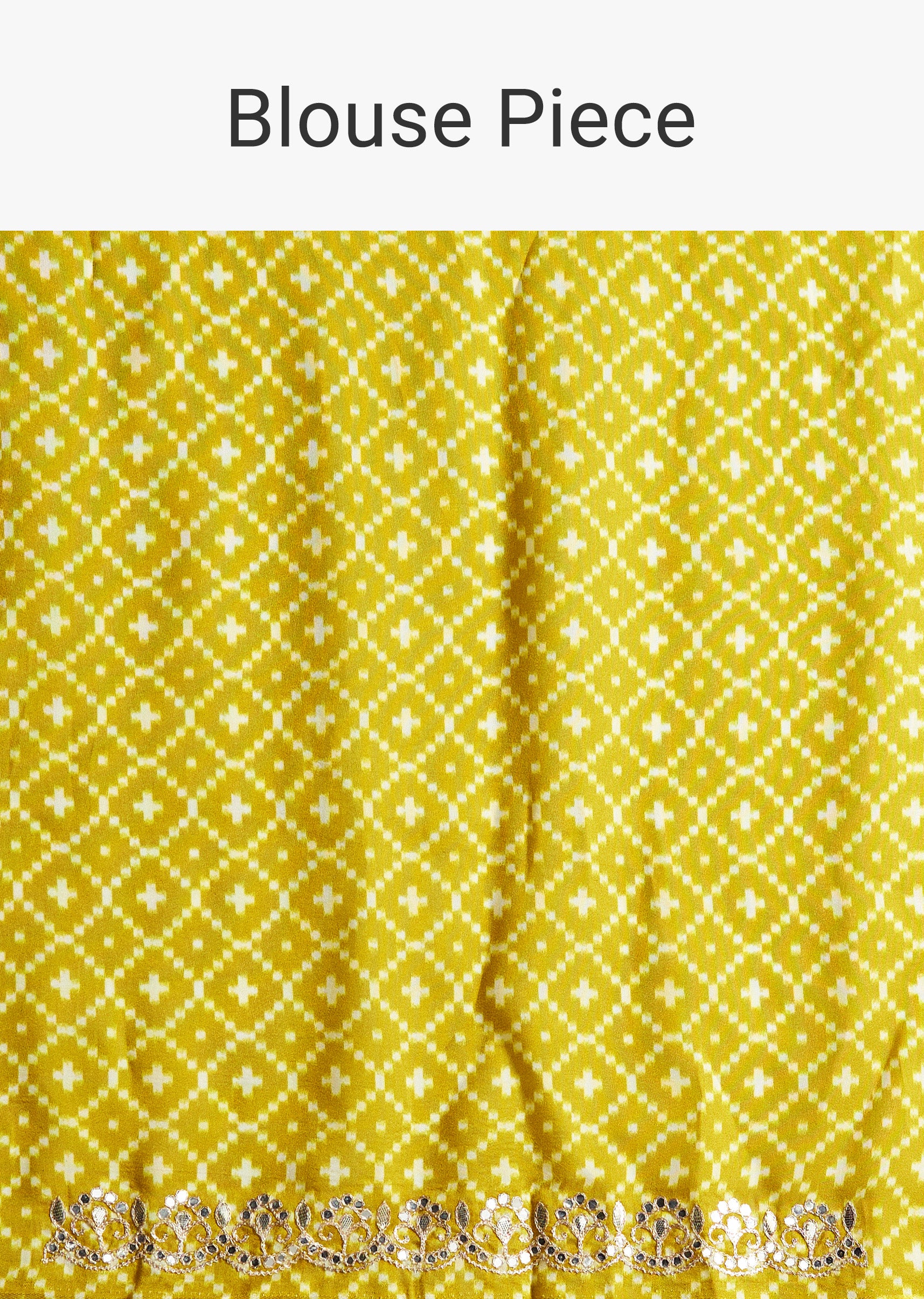 Mehendi Green Muslin Ajrakh Printed Saree With Gota And Mirror Work