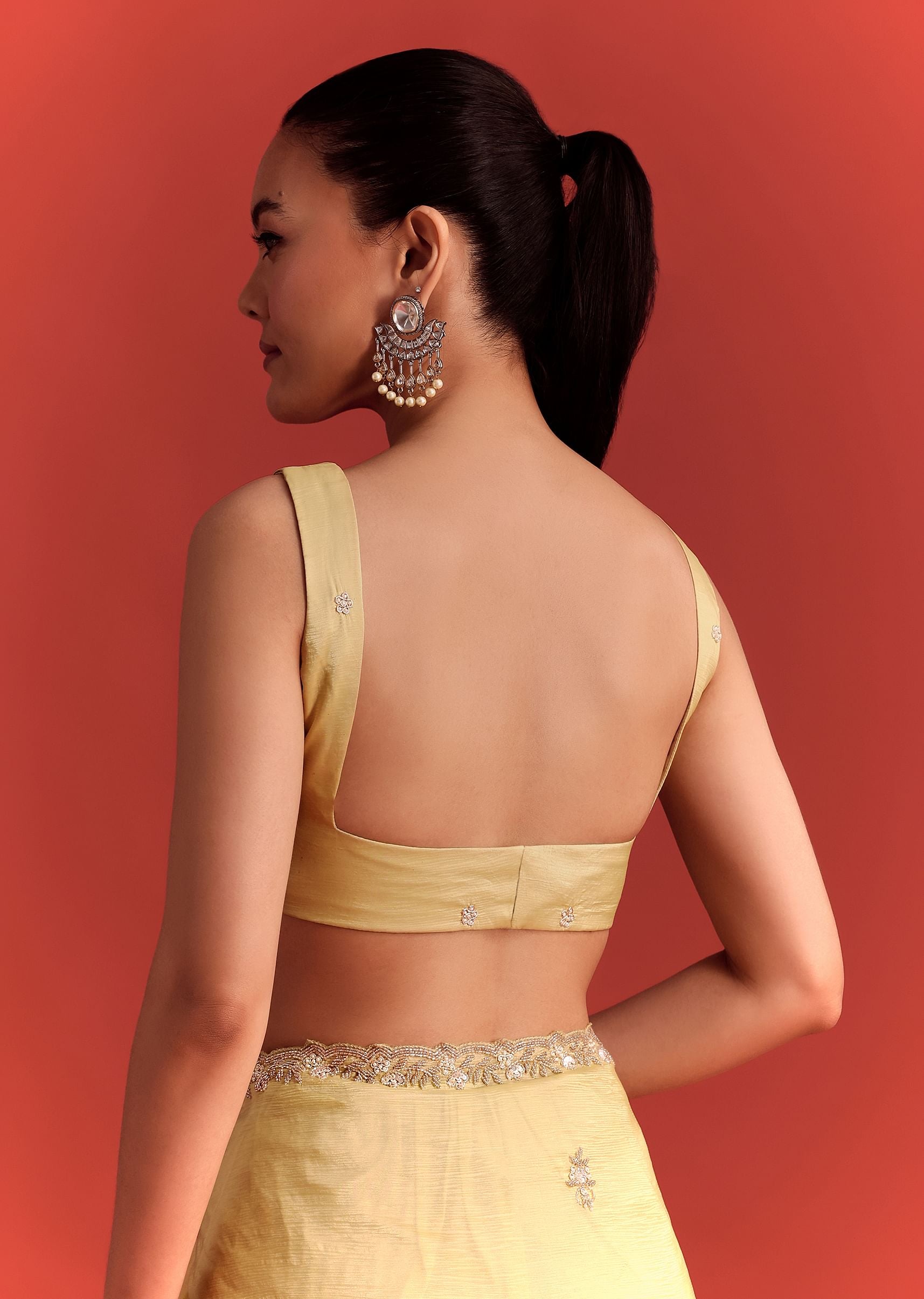 Add a vibrant pop of festive color to your ethnic wardrobe with this sunshine yellow crushed tissue saree. The delicately adorned cutdana and sequins add an illuminating touch, making it... More Product Details