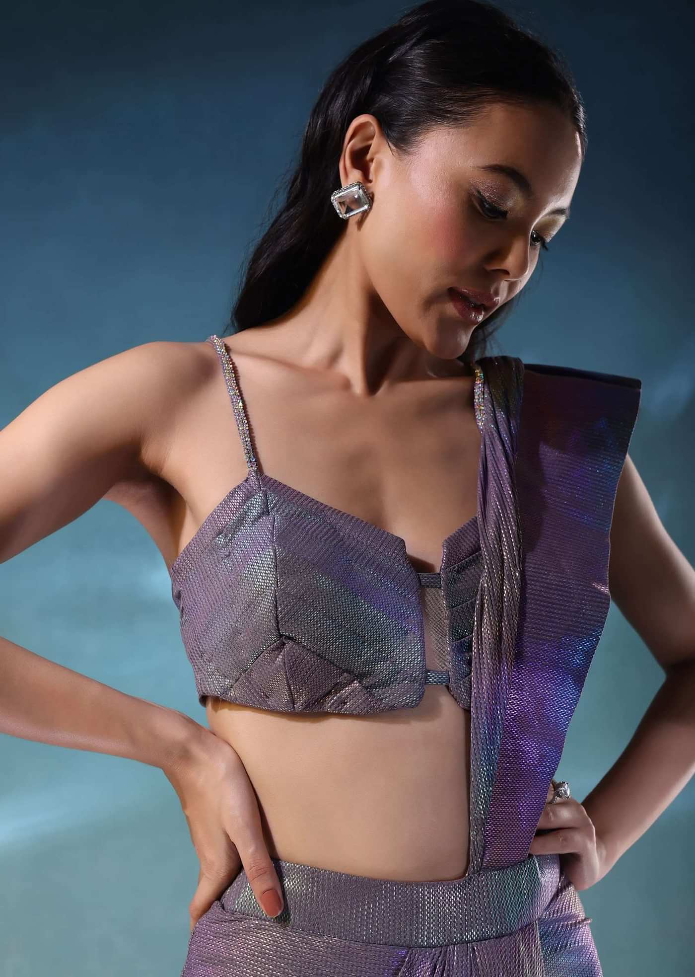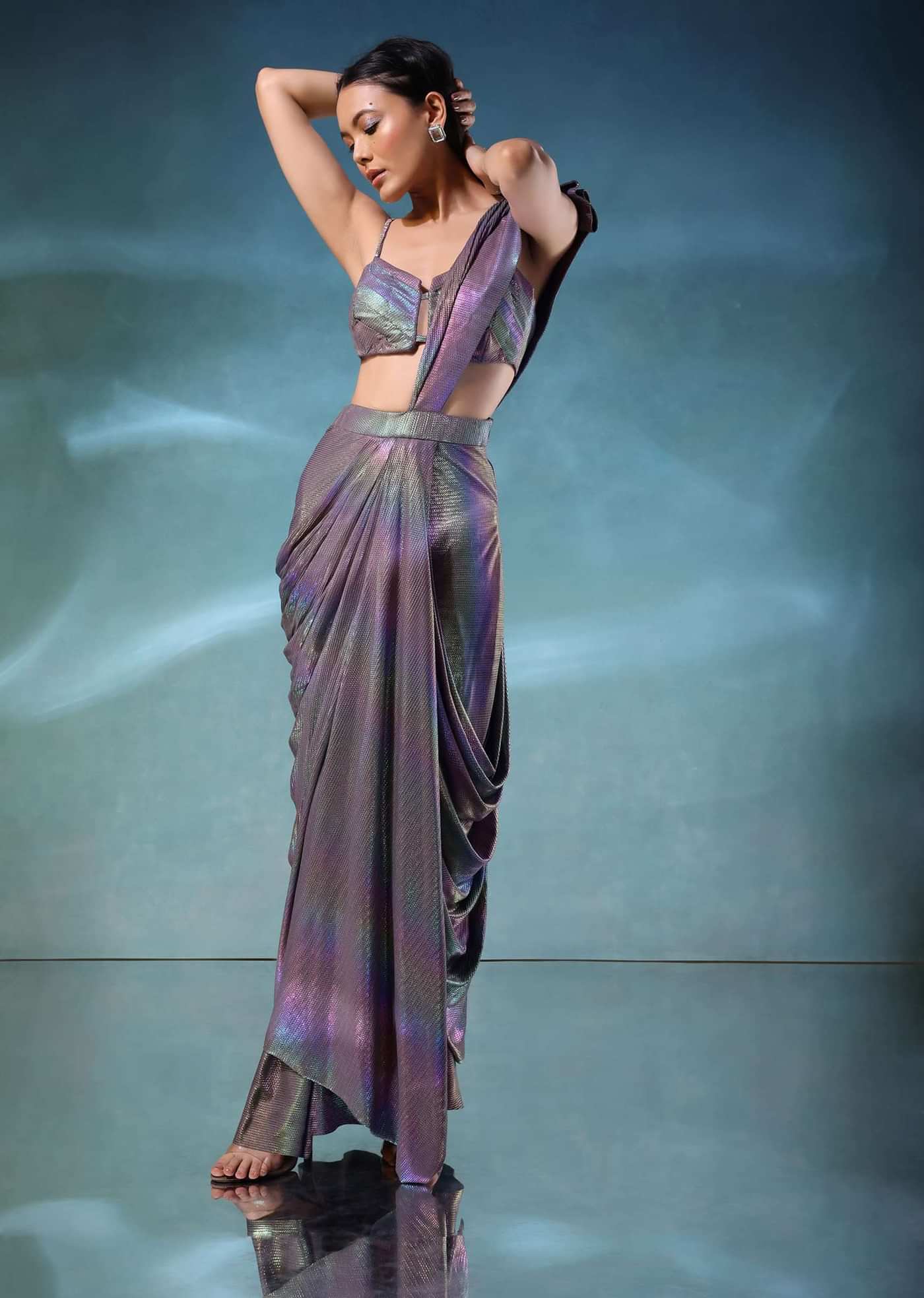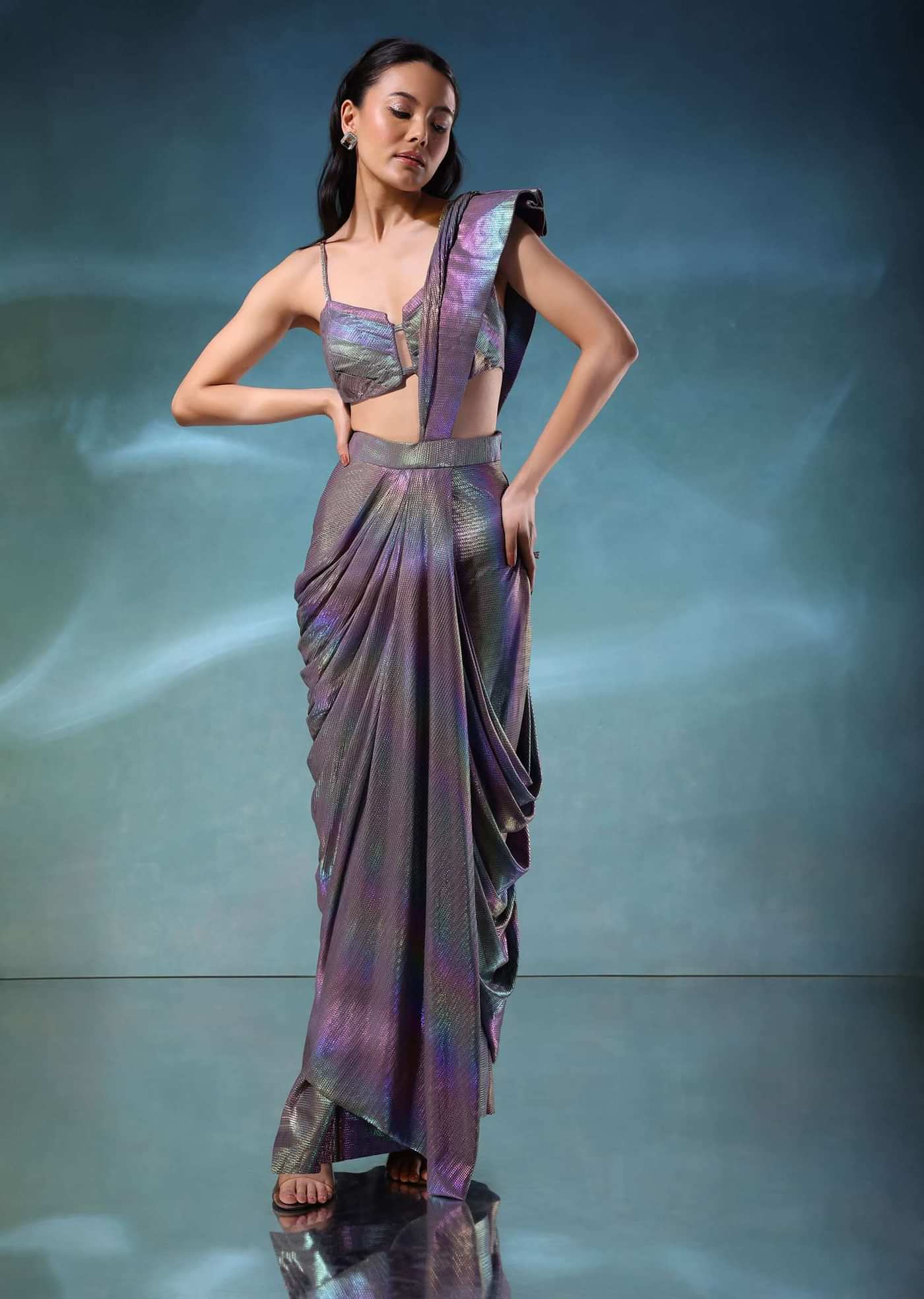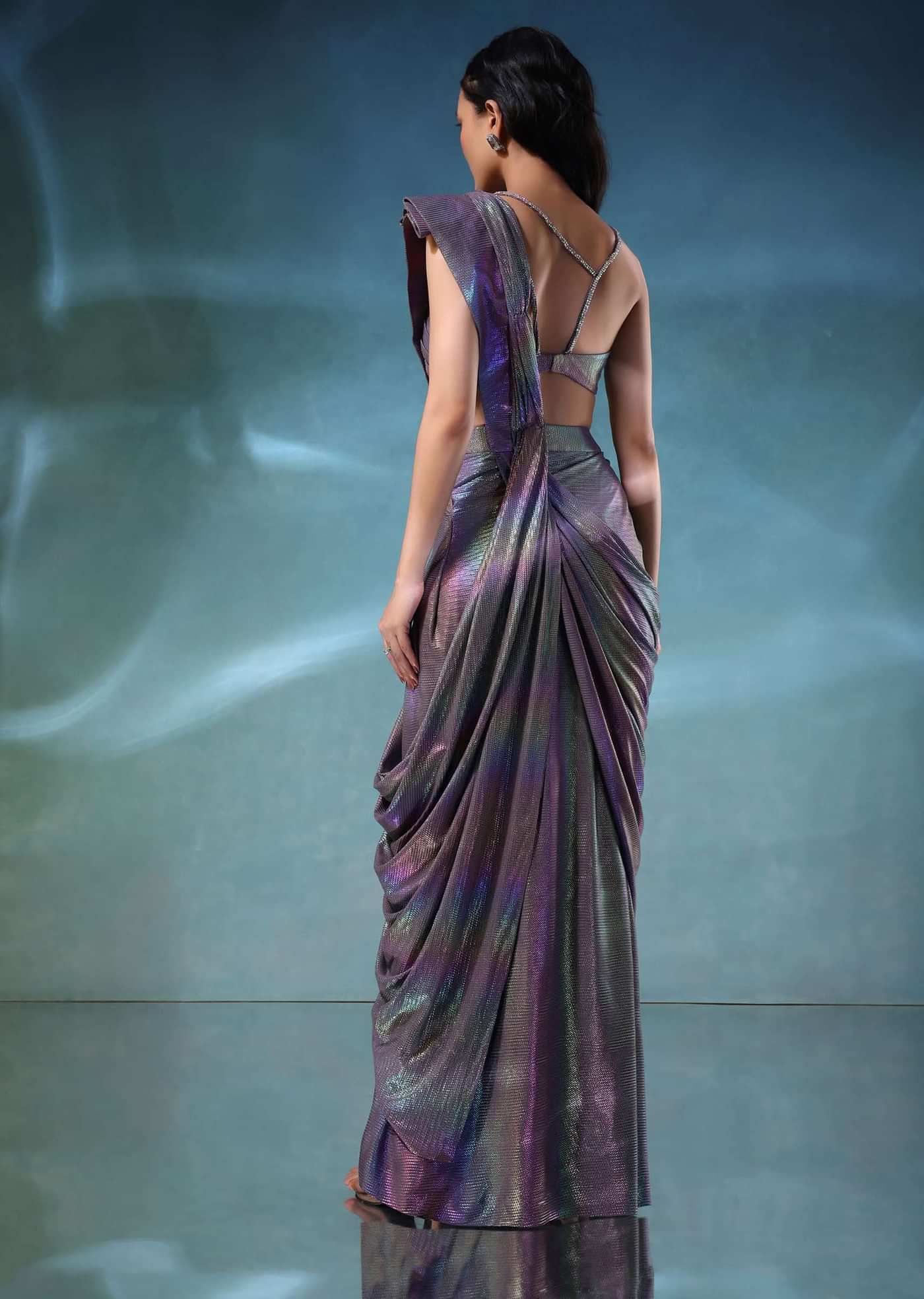 Mermaid Metallic Ready To Wear Saree And Blouse In Knit