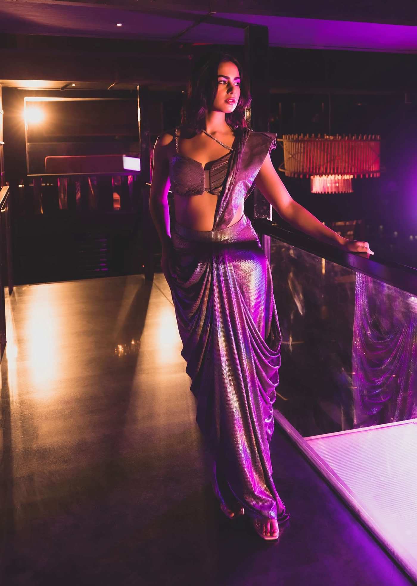 • Introducing our exclusive mermaid metallic drape saree and blouse, designed to exude luxury and sophistication.