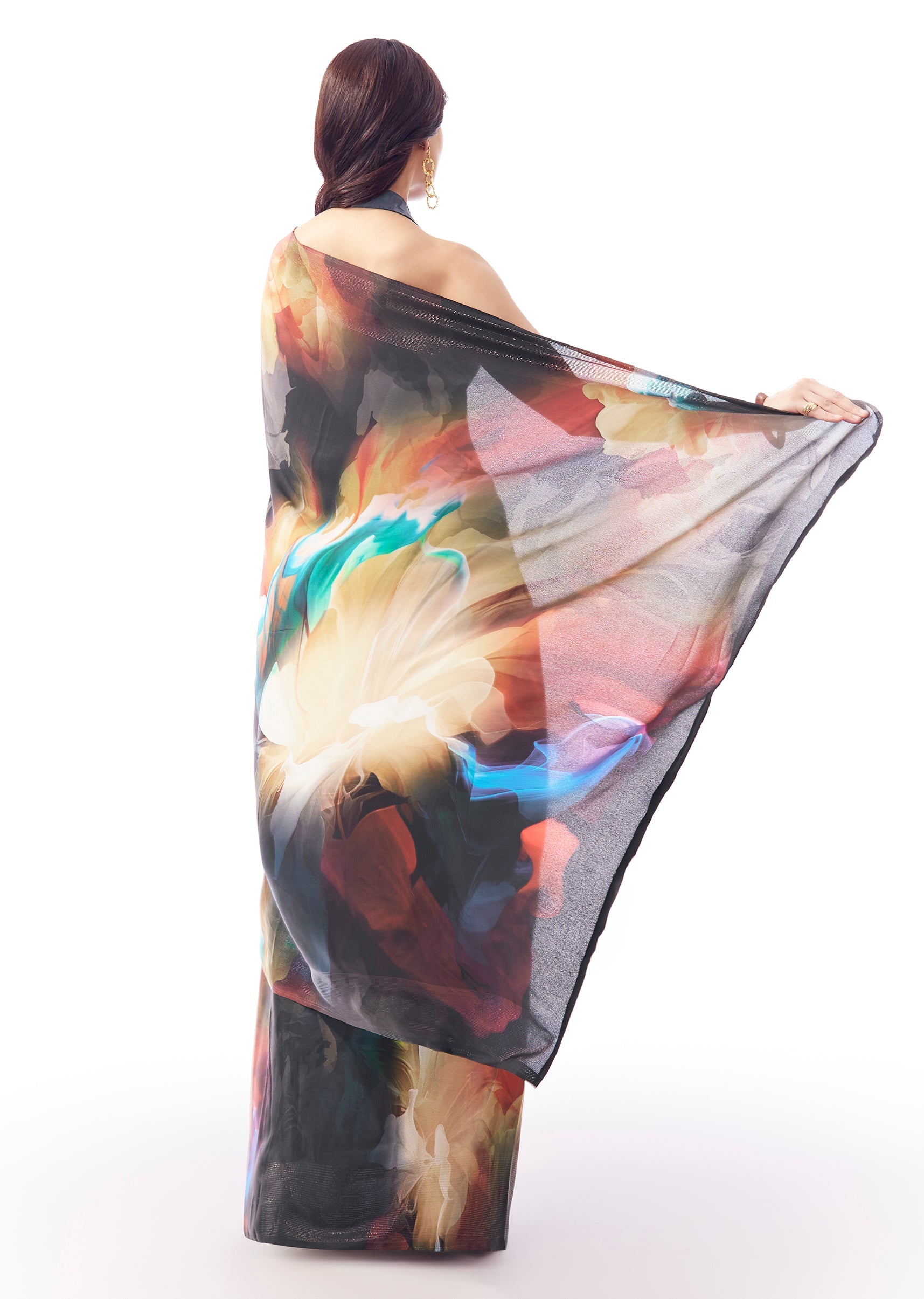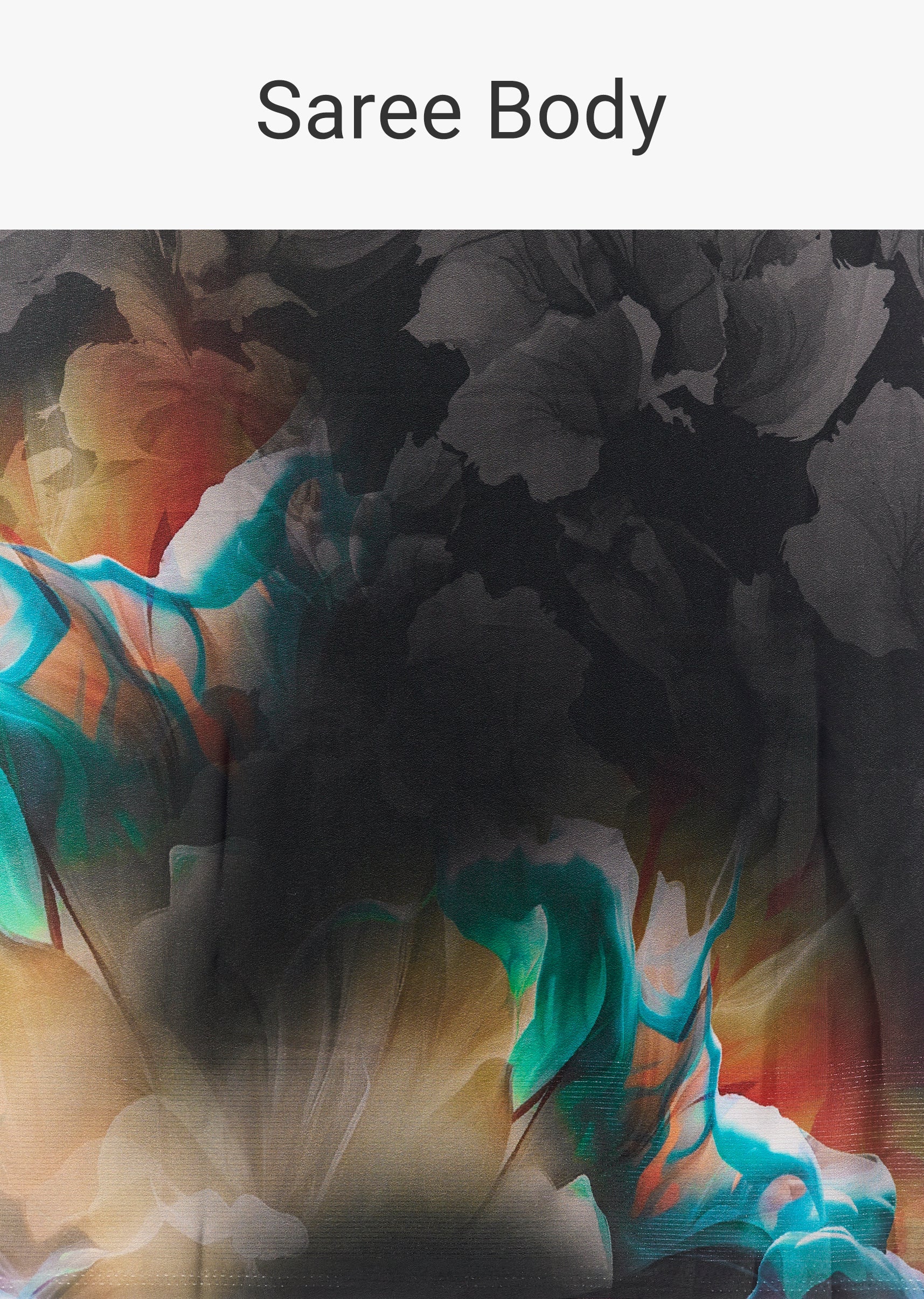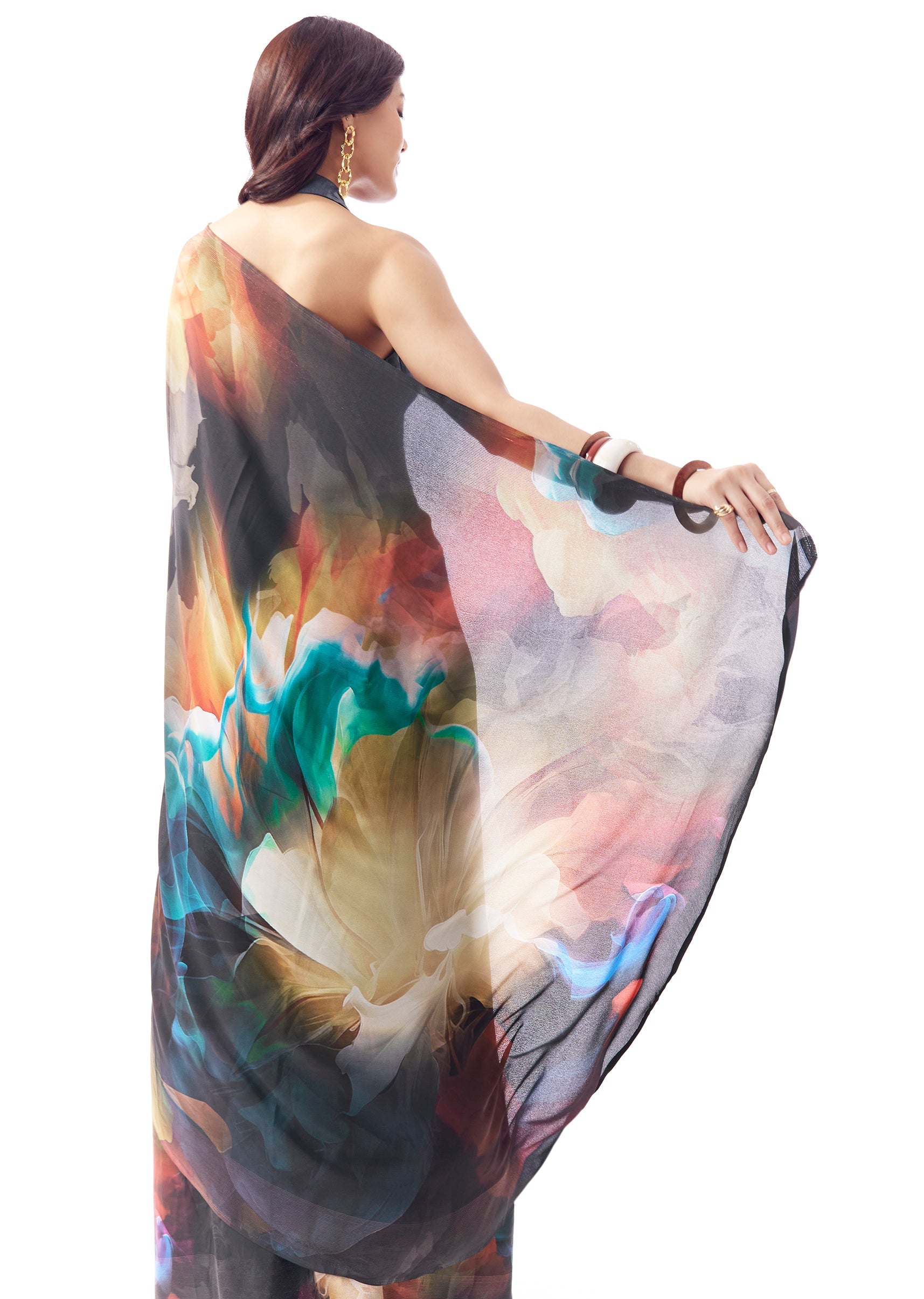 Midnight Blue Georgette Saree With Multicolour Floral Print