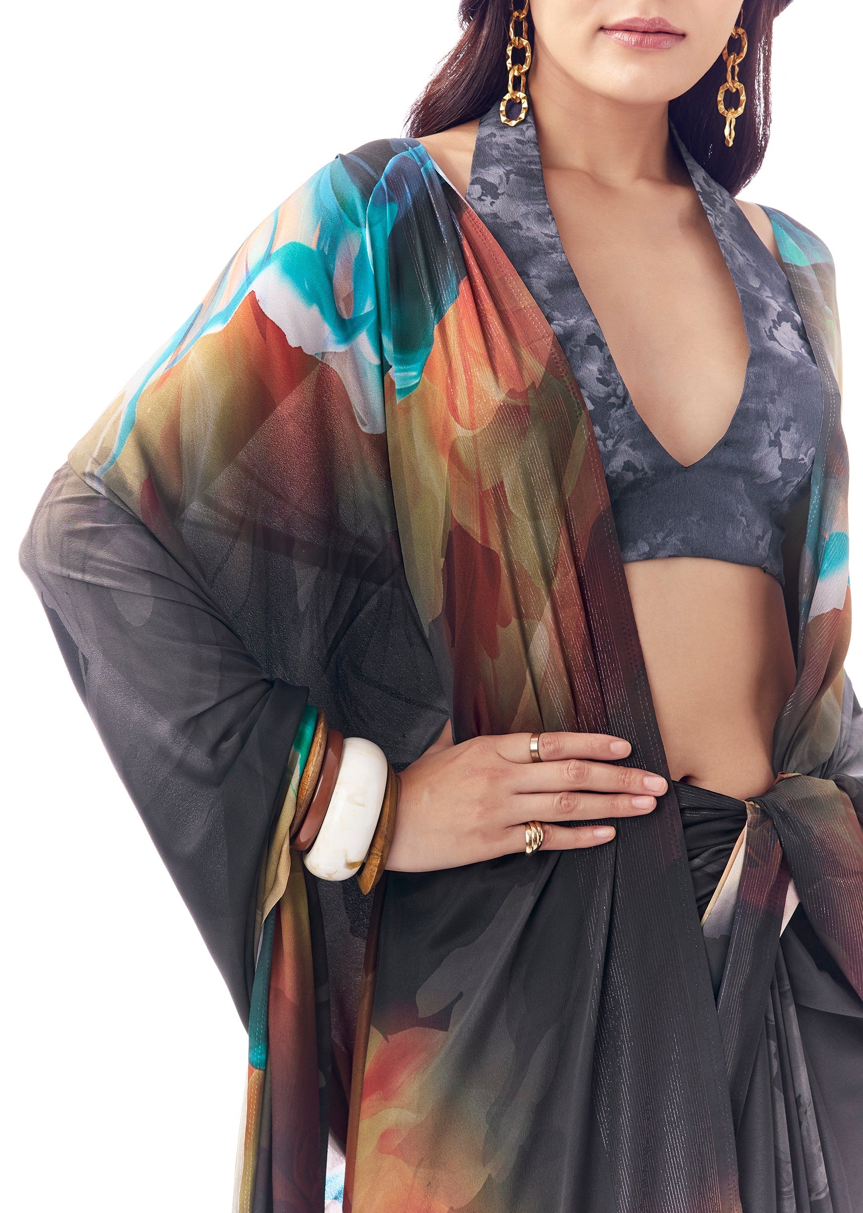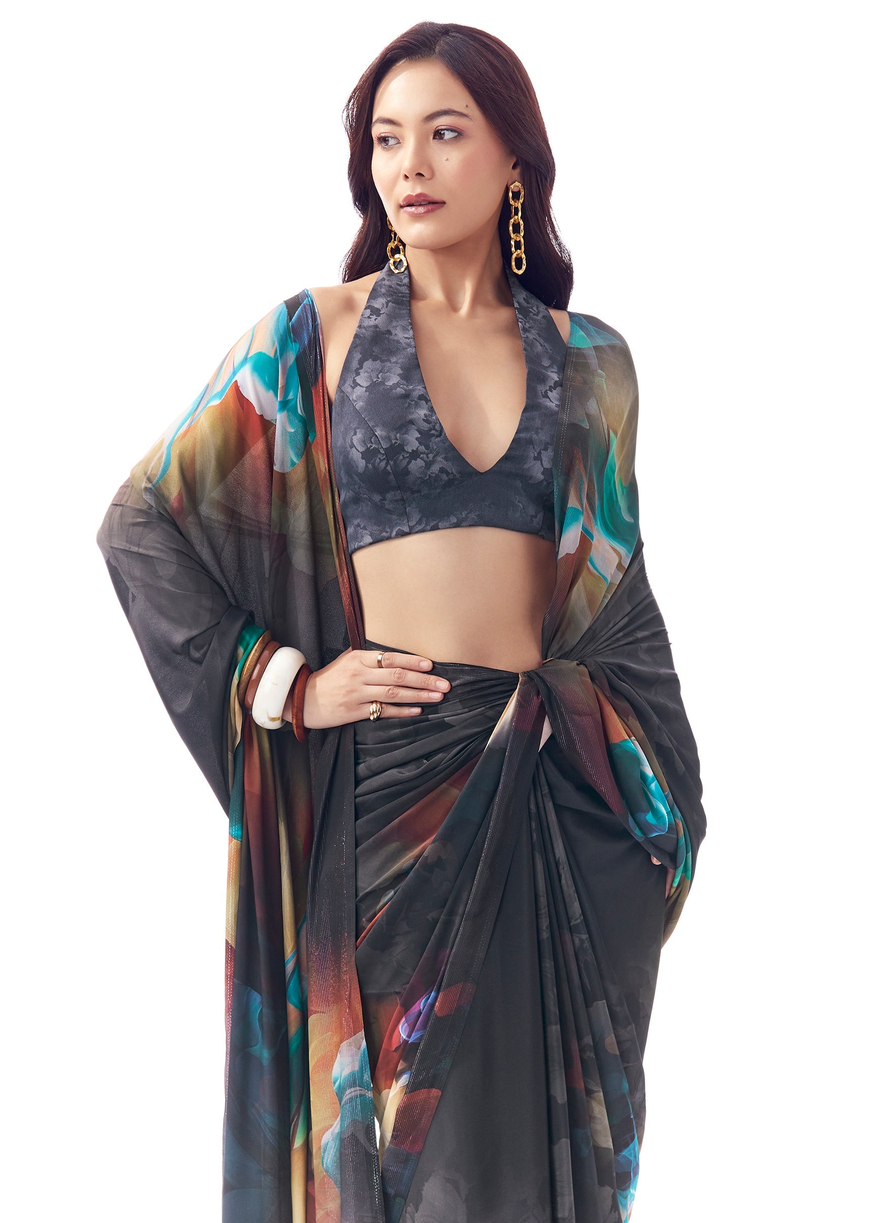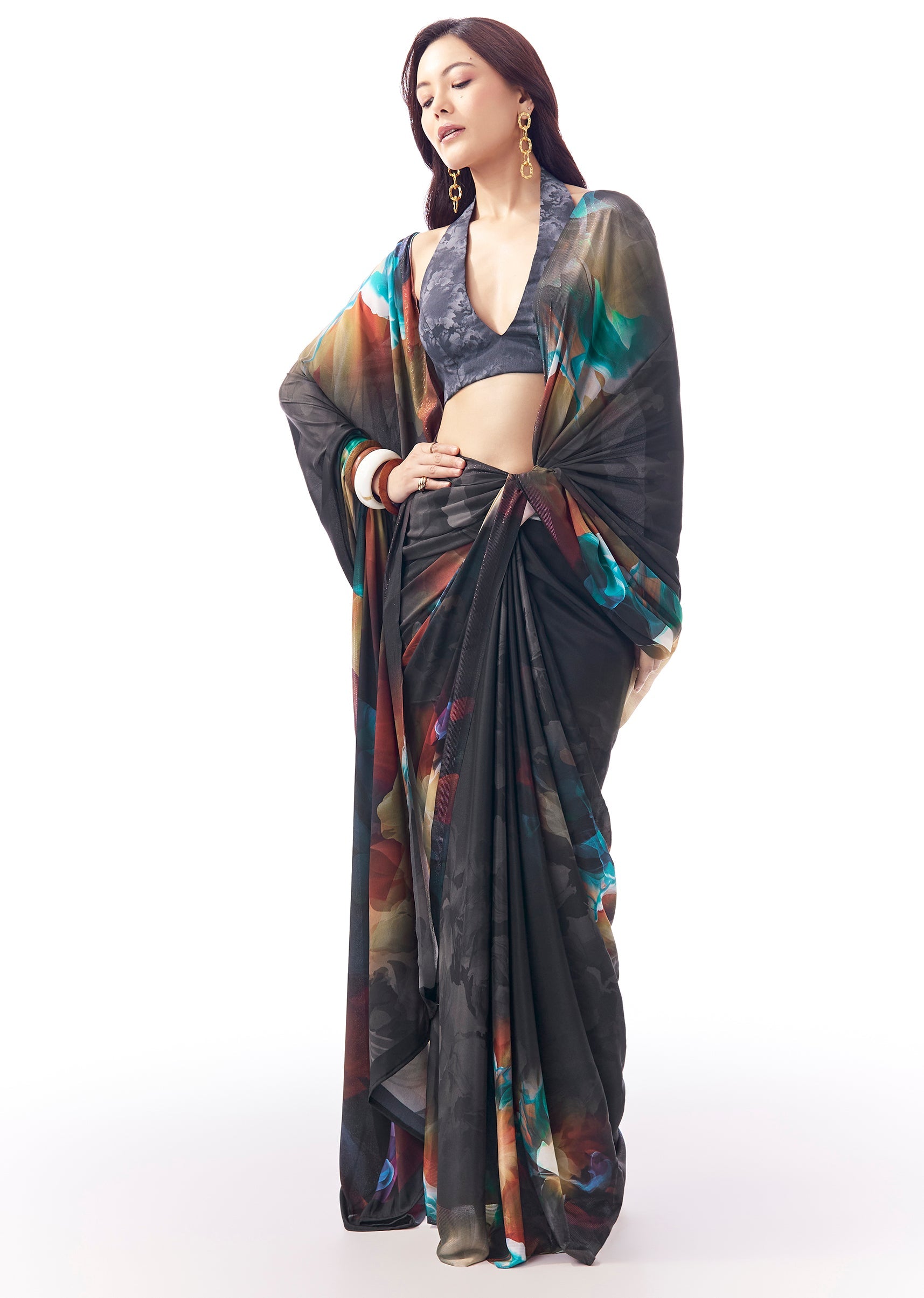 Midnight Blue Georgette Saree With Multicolour Floral Print
