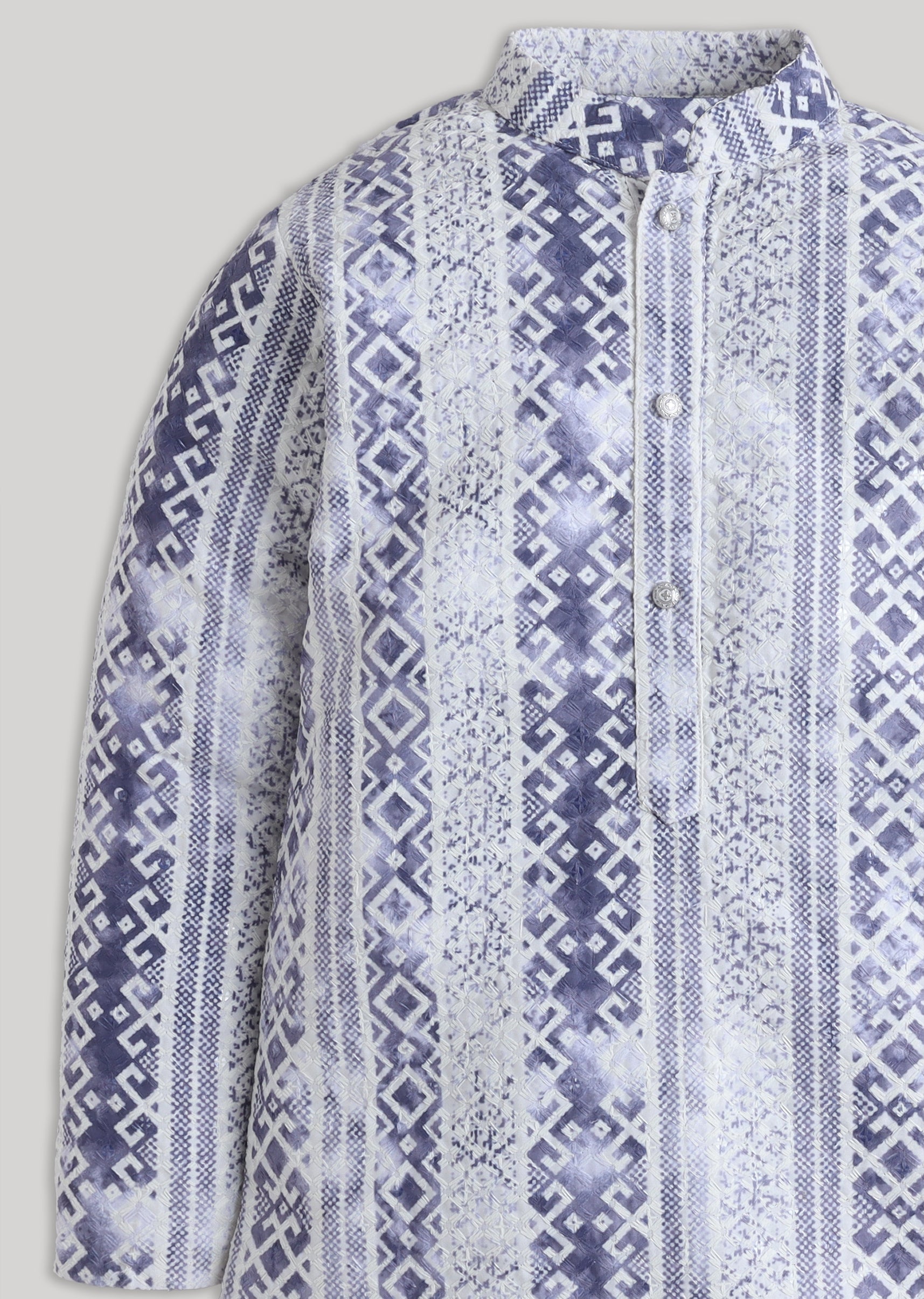 Keep festive dressing classic with this cotton kurta set highlighted with subtle embroidery for a refined finish. Designed with a mandarin collar, full sleeves, and front buttons, it comes with... More Product Details