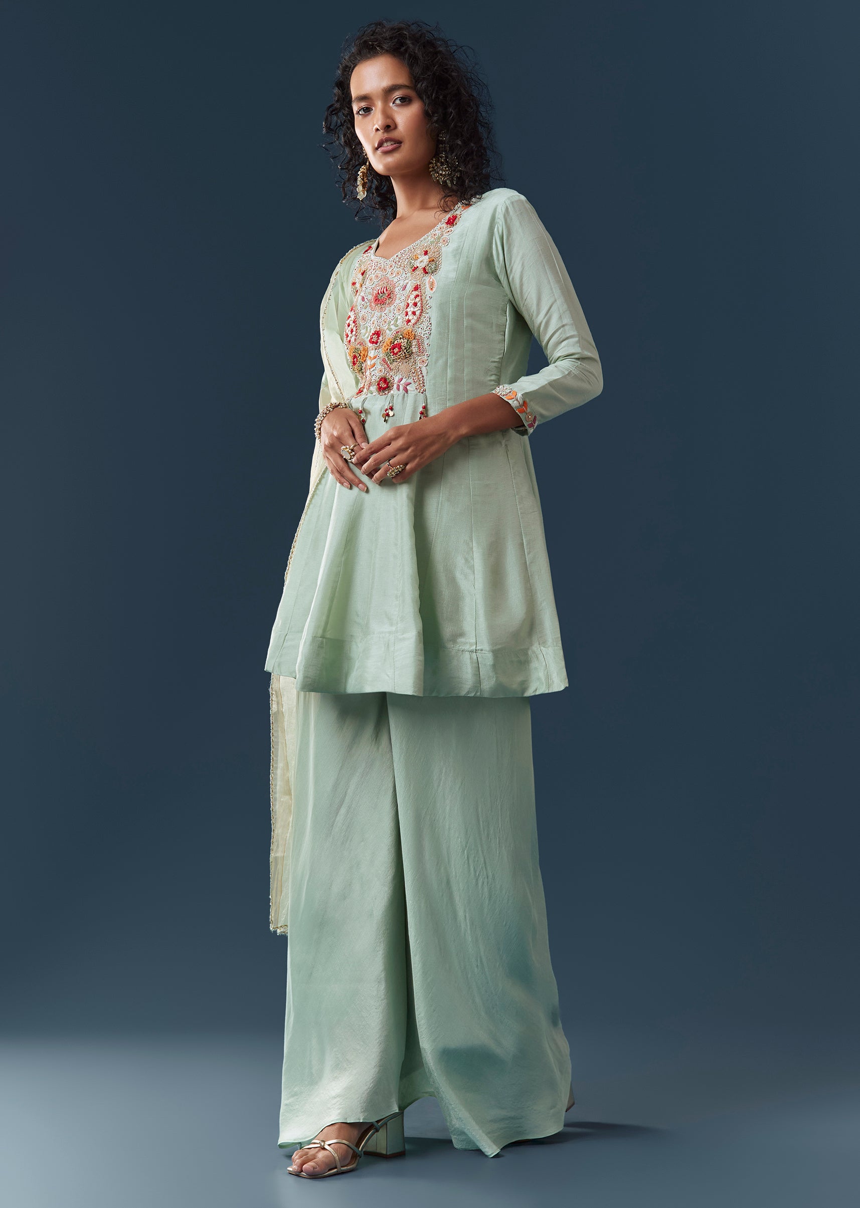 Mint Blue Silk Palazzo Set With Dupatta