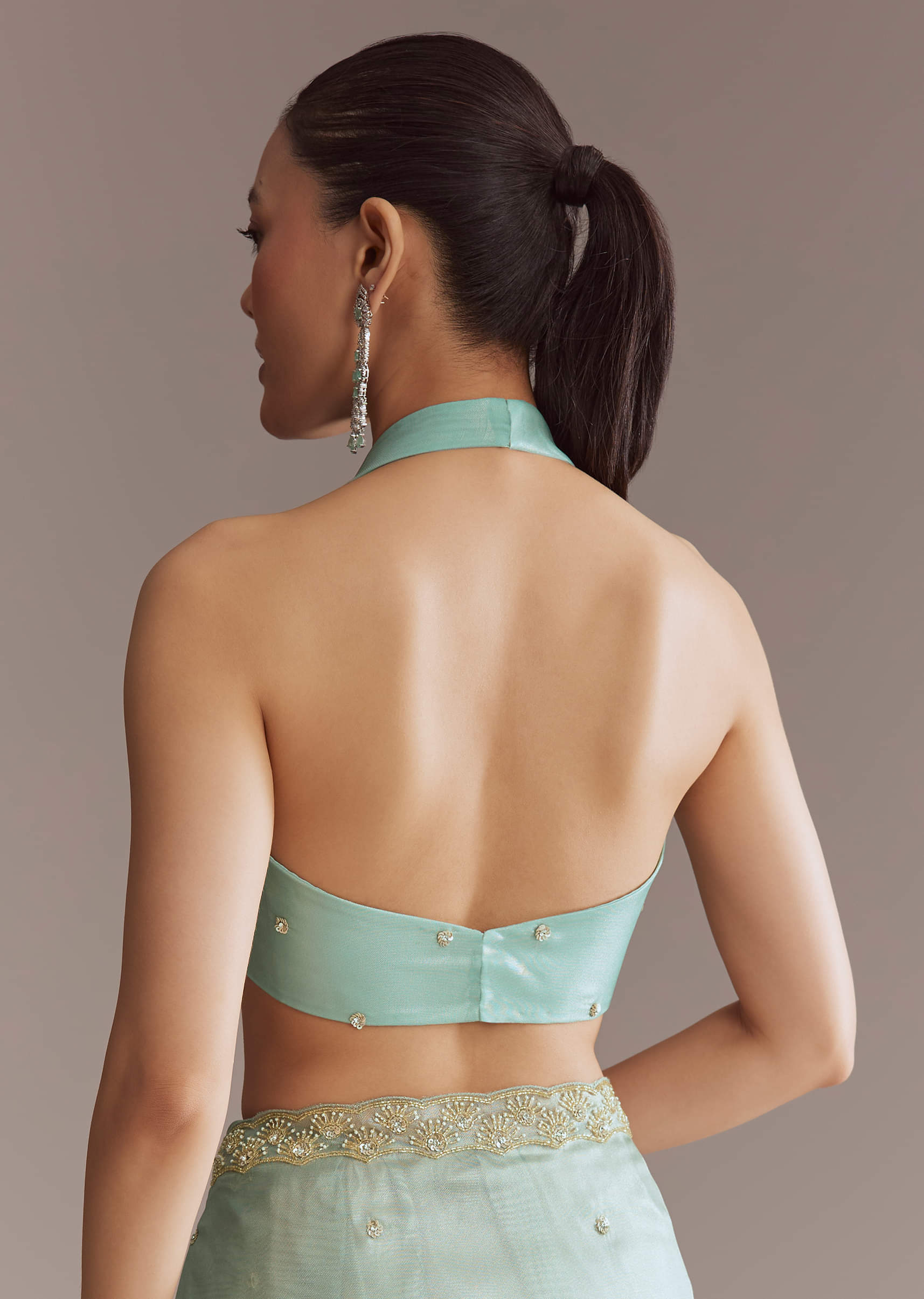 Mint Blue Tissue Saree With Sequin And Bead Embroidery