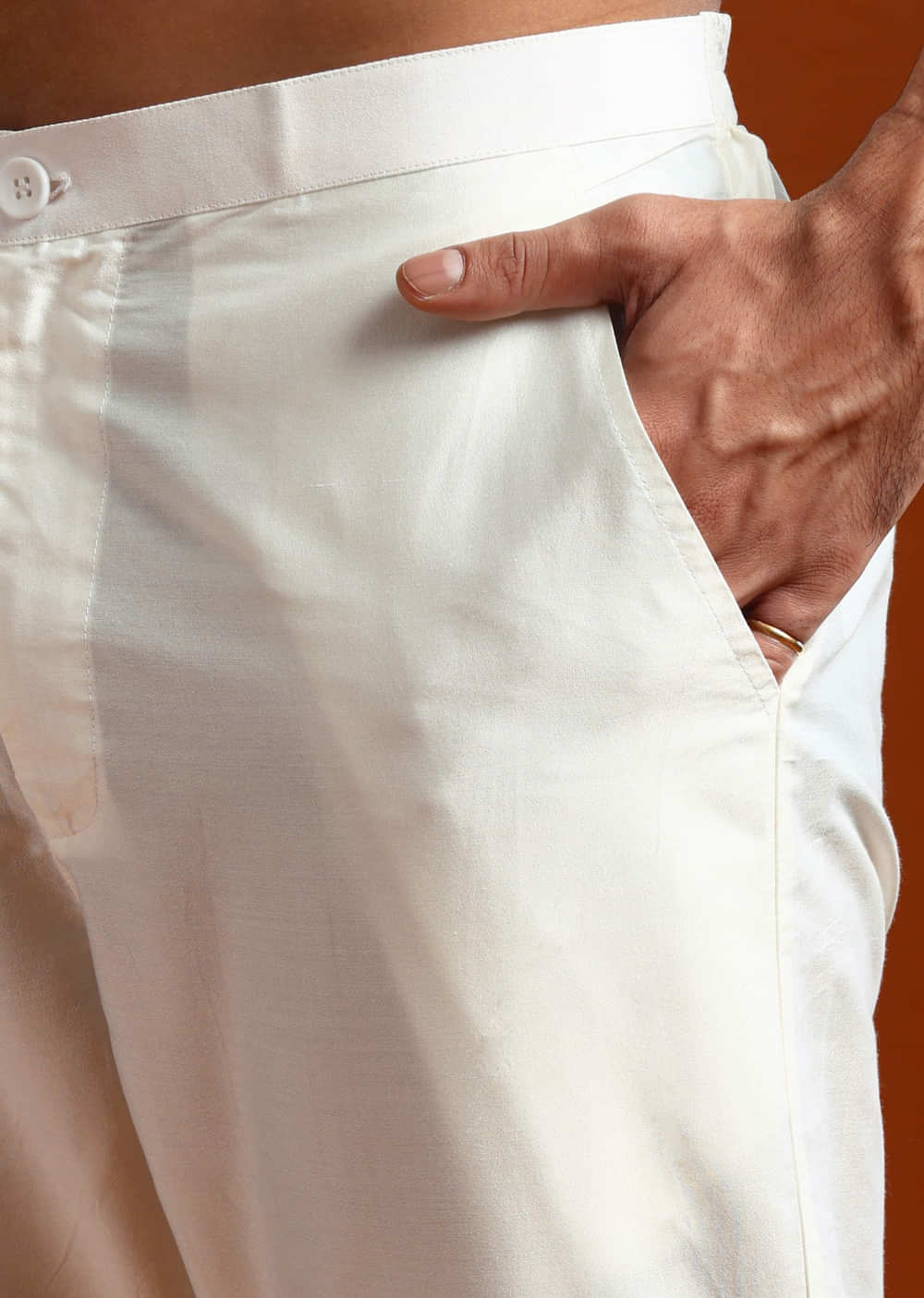 Fit Tips:The men’s kurta sits light on the shoulders with an easy, breathable drape, and the bottoms tie comfortably for long wear.