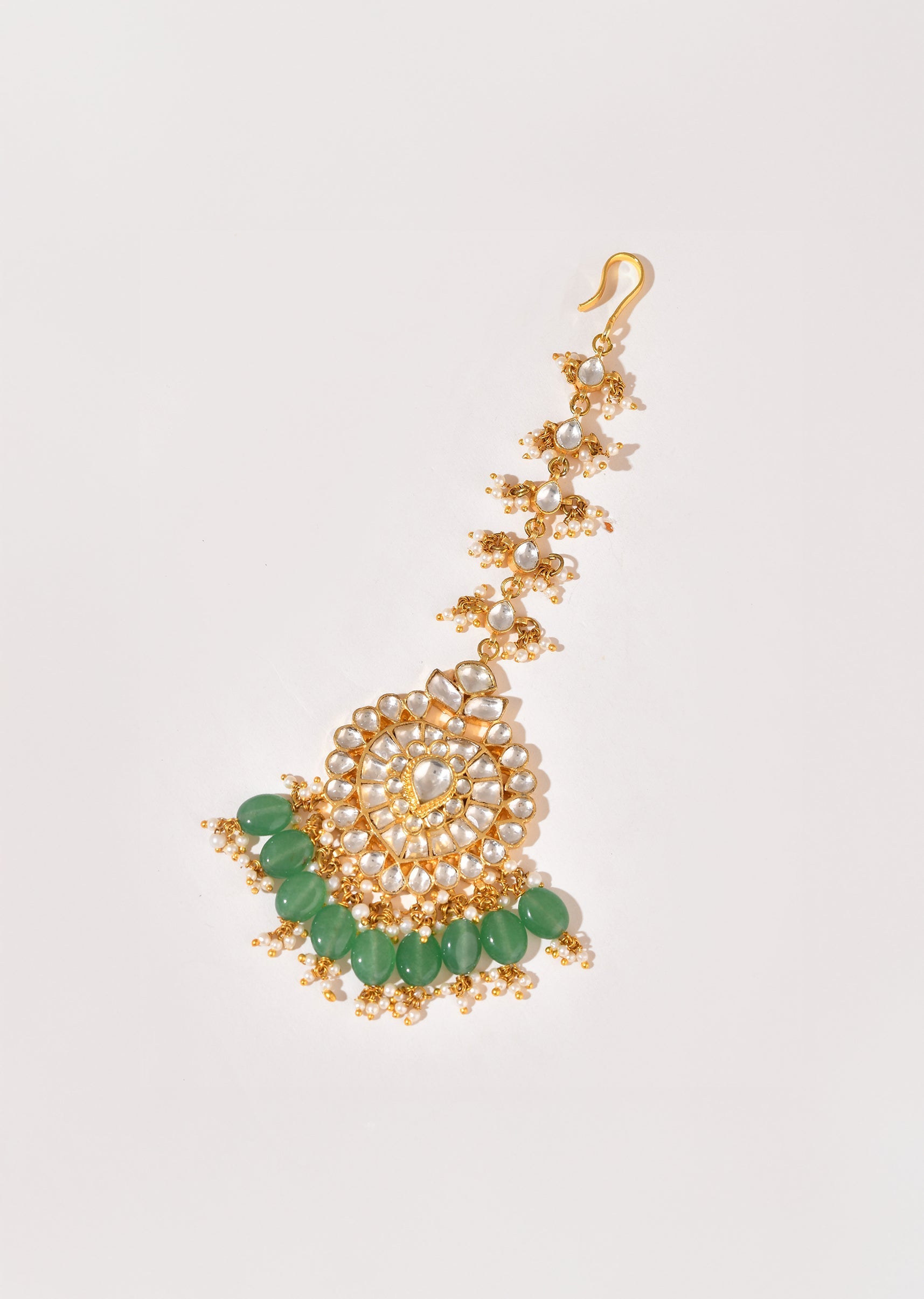 Mint Green Kundan Embellished Maangtikka