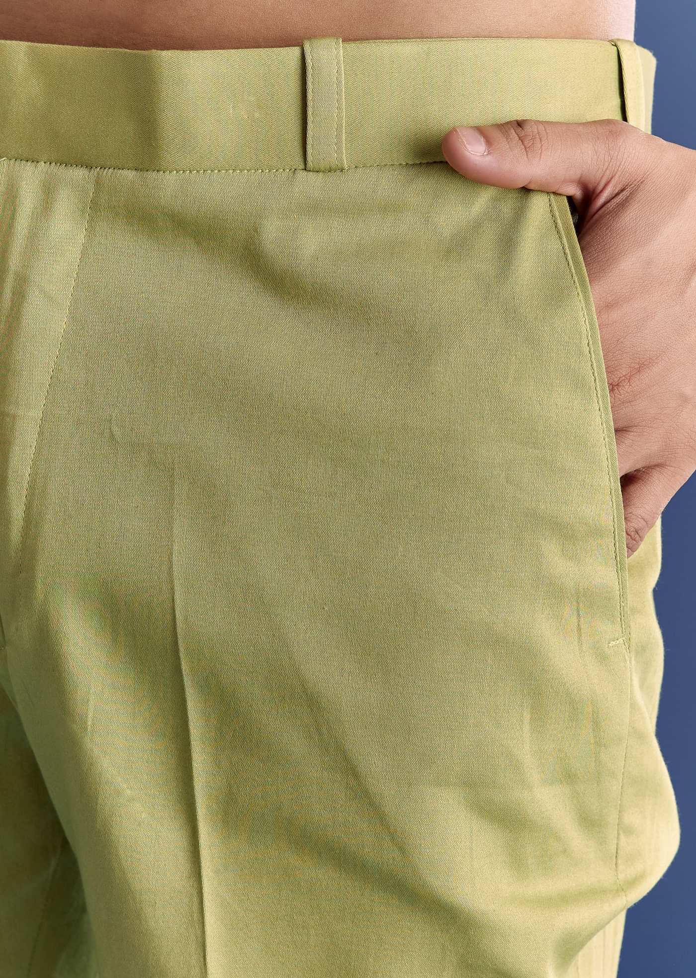 Mint Green Munga Silk Kurta Jacket Set With Hand Embroidery