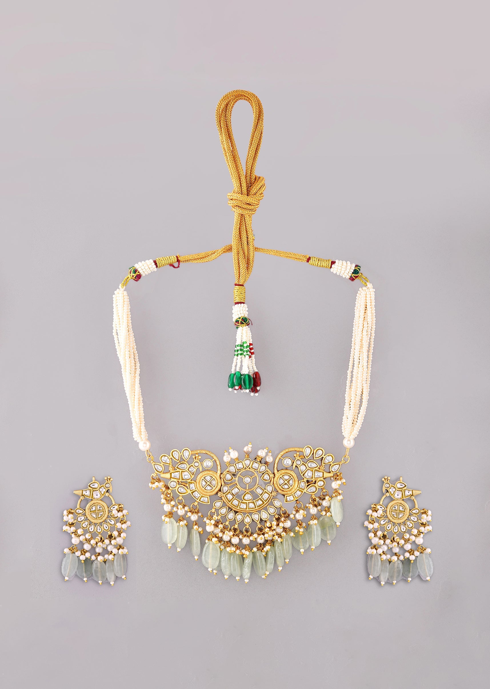 Mint Green White Necklace Set With Pachi Kundan