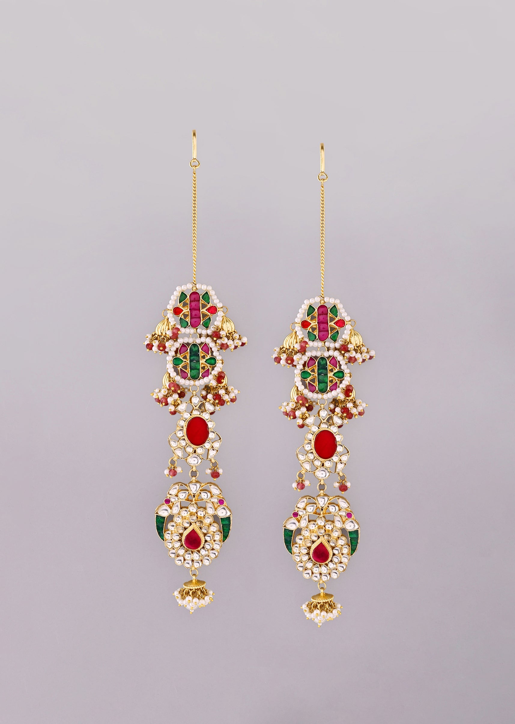 Multi Color Gold Earrings With Pachi Kundan