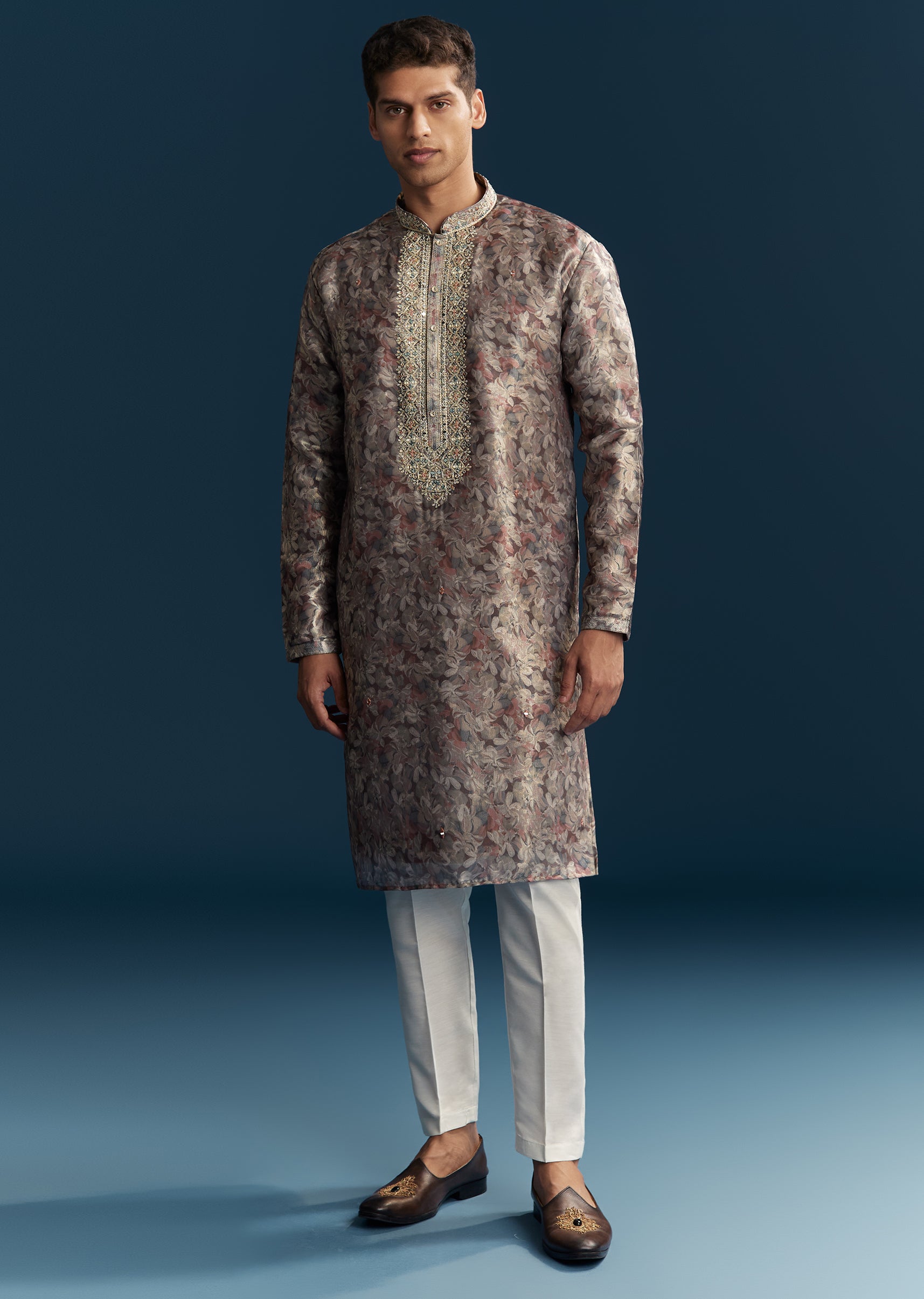 Vibrant and cheerful, this multi colored men’s kurta set in soft pastels is perfect for festive occasions. Crafted in smooth silk fabric, it features detailed thread work that adds texture... More Product Details