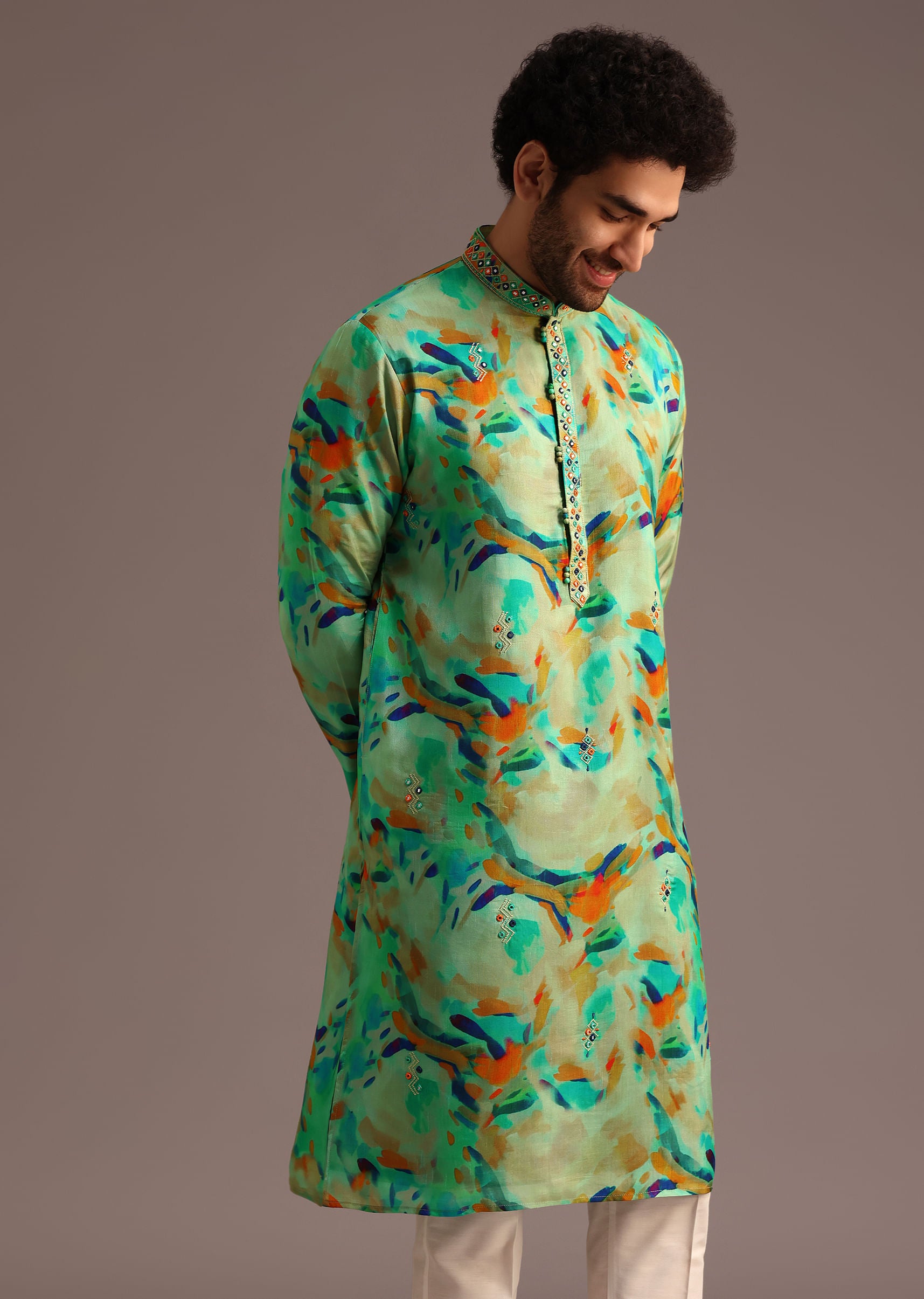 Multi Colour Silk Kurta And Pant With Abstract Print