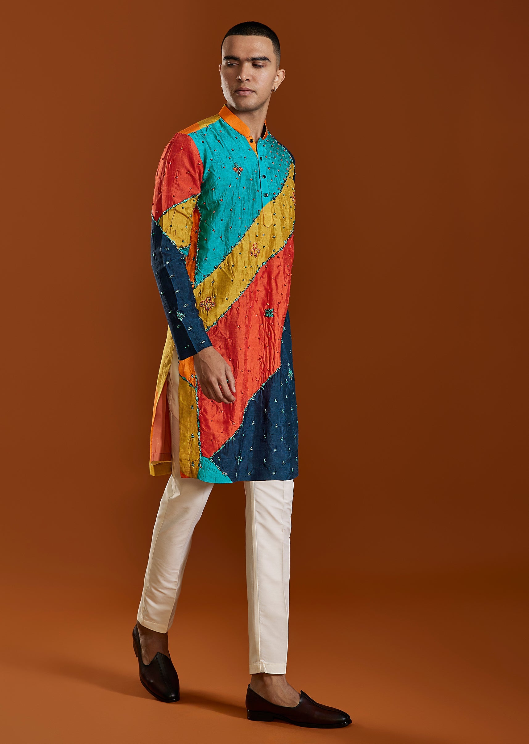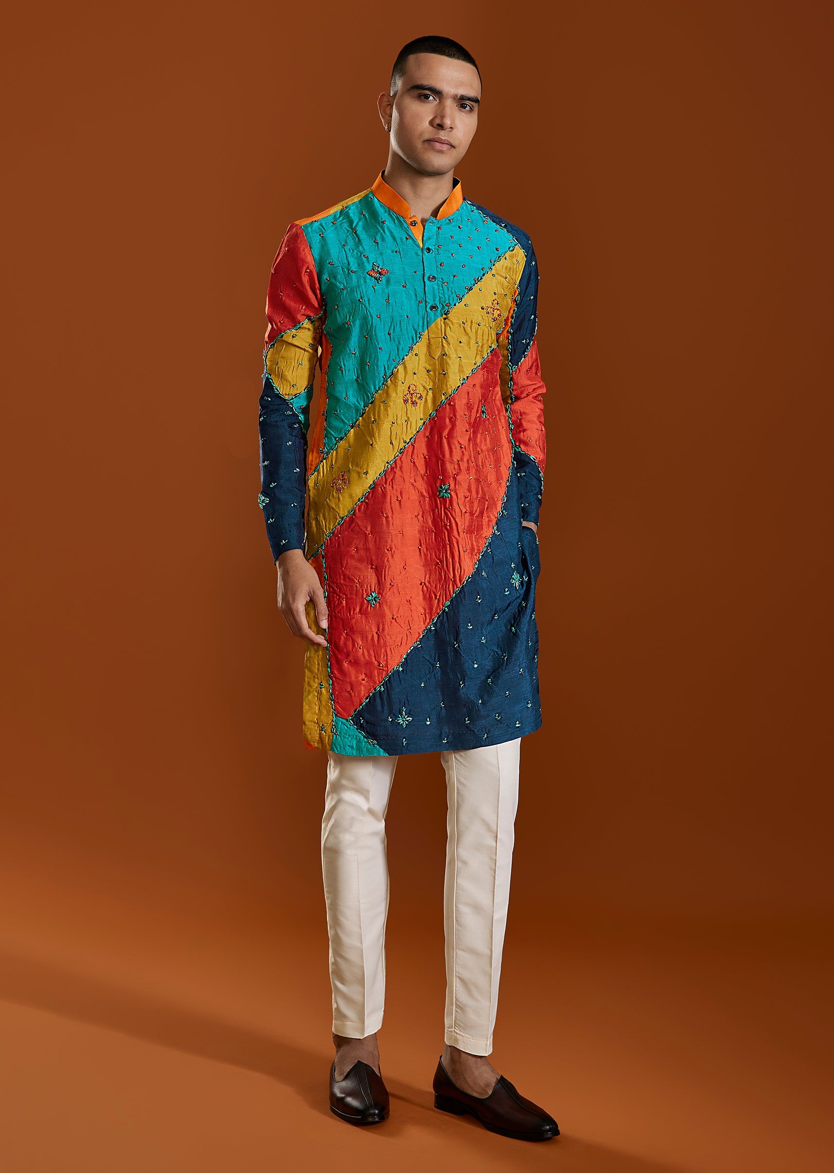 A vibrant art silk kurta set featuring intricate thread and French knot embroidery—perfect for mehendi functions and festive celebrations. The detailed craftsmanship adds depth to the festive silhouette. Awarded as the Most Trusted Brand, we're delivering styles you love, just as promised.