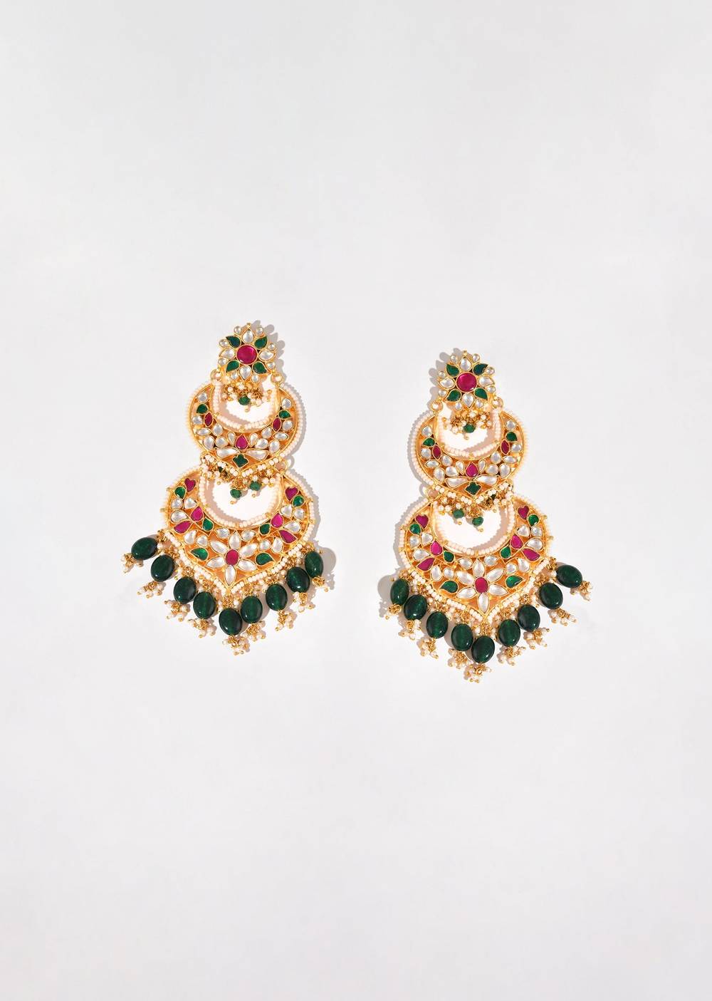 These multi green earrings feature intricate pachi kundan work for a festive and elegant appeal. Perfect for mehendi celebrations, they are ideal for bridesmaids or wedding guests. The vibrant green... More Product Details