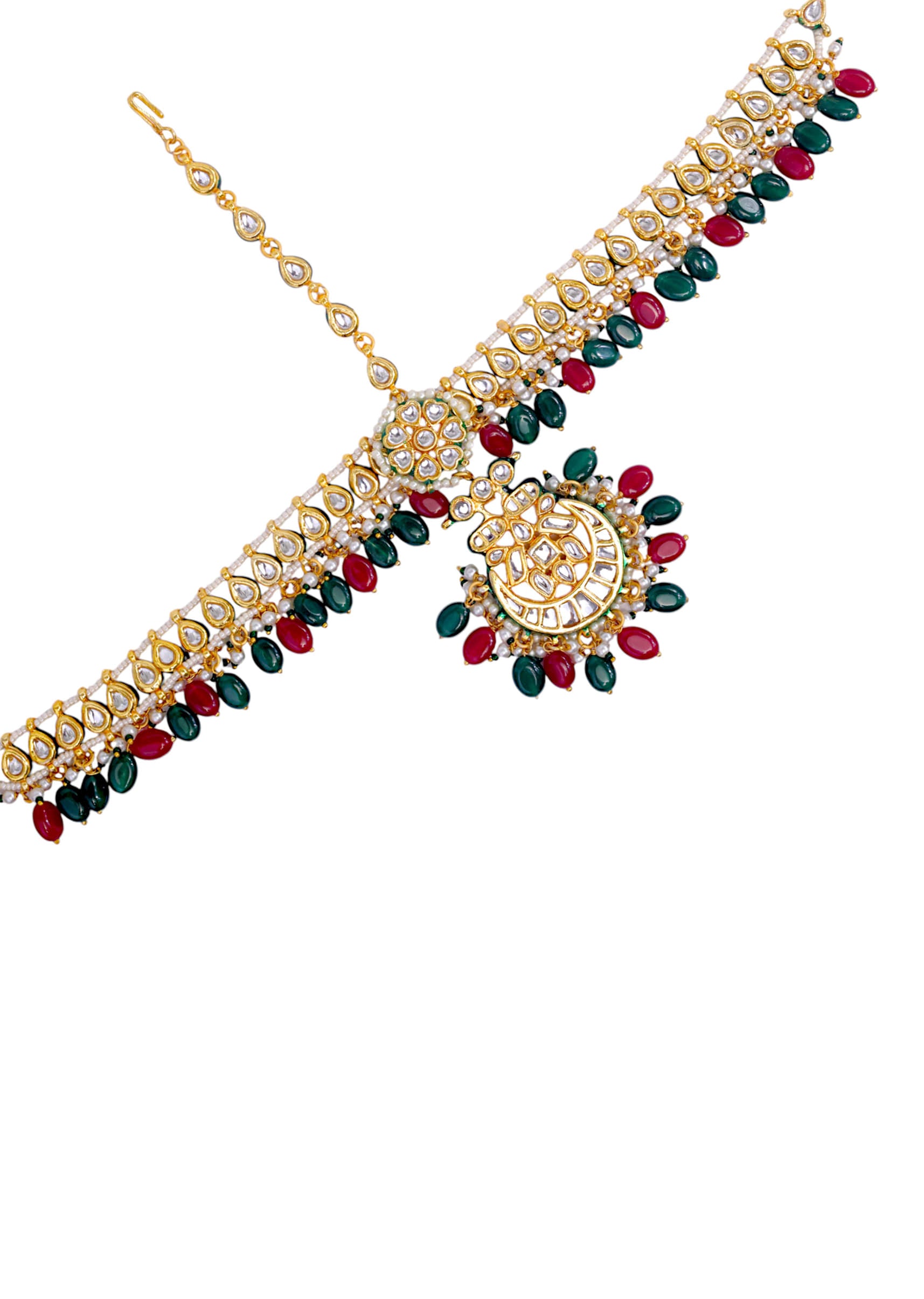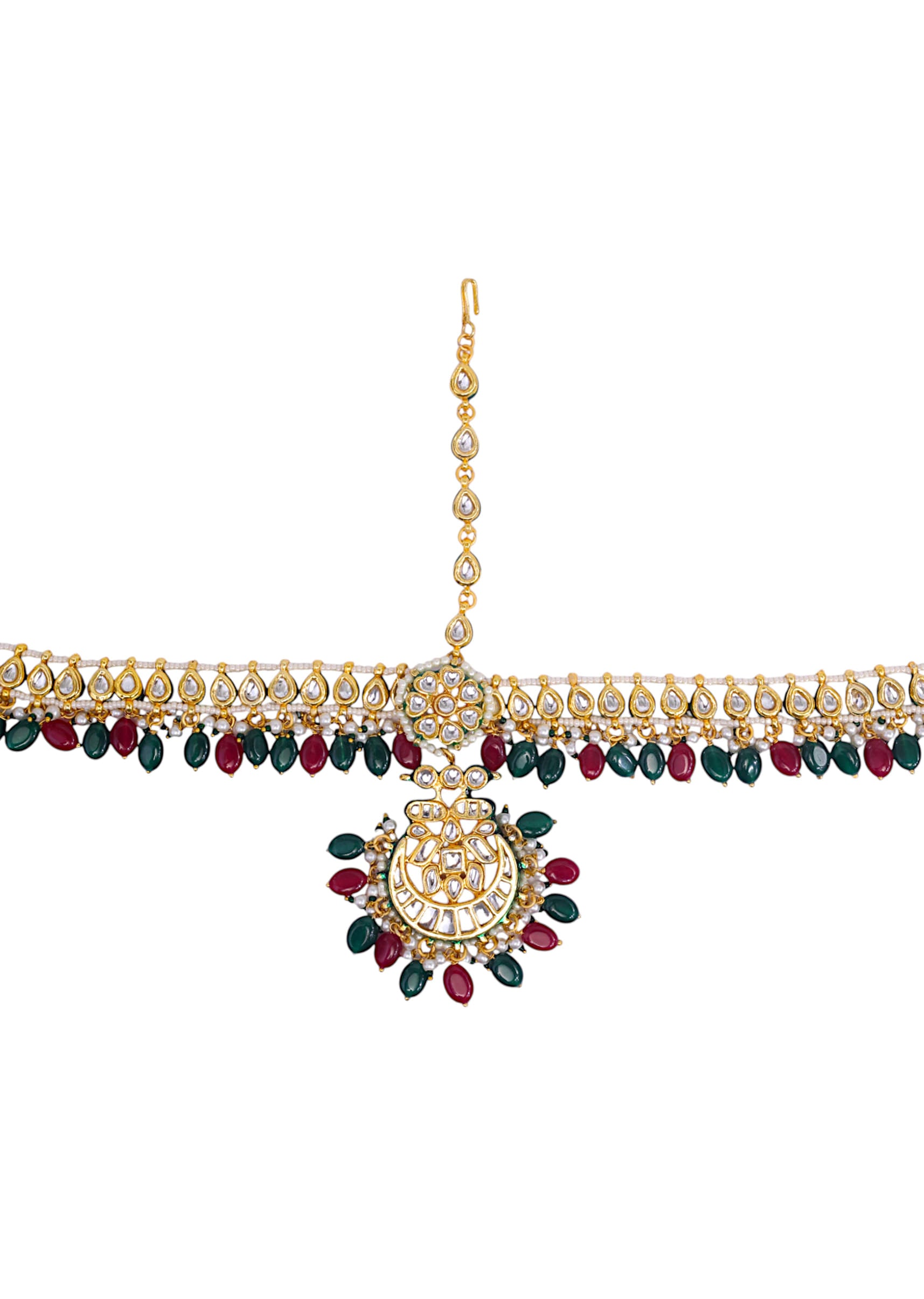 Pairs seamlessly with matching kundan earrings or bangles for a coordinated, eye-catching look.Fit Tips: Adjustable design with secure hooks ensures a comfortable and stable fit on the head.