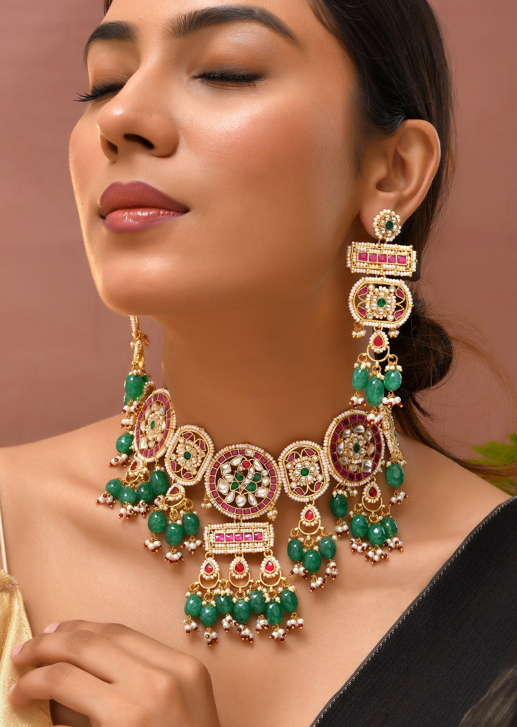 Multi Kundan Bead Drop Necklace and Earrings Set